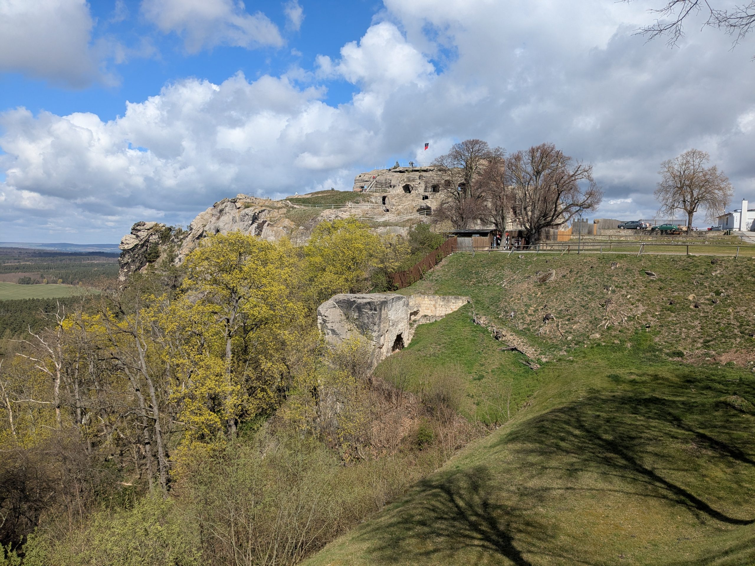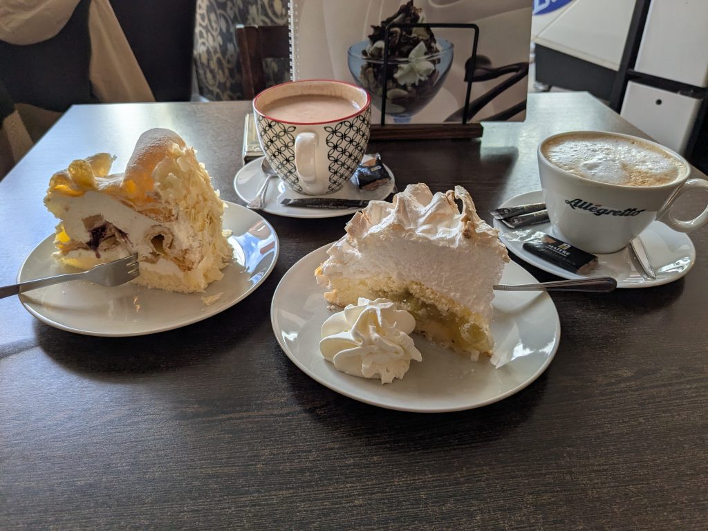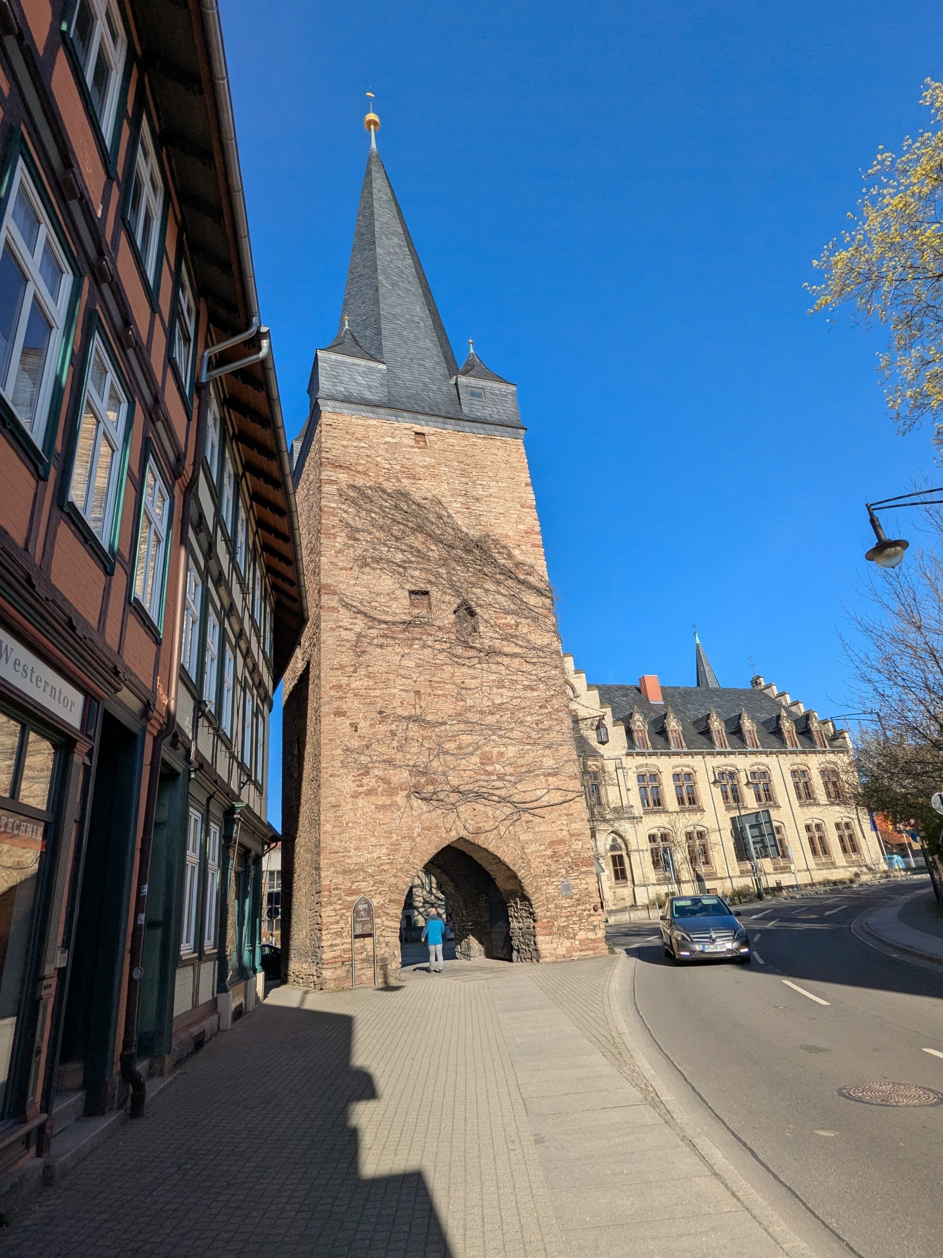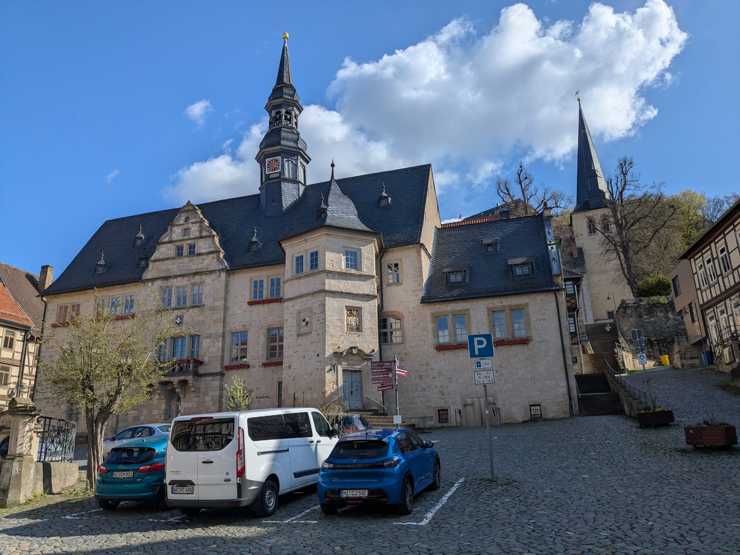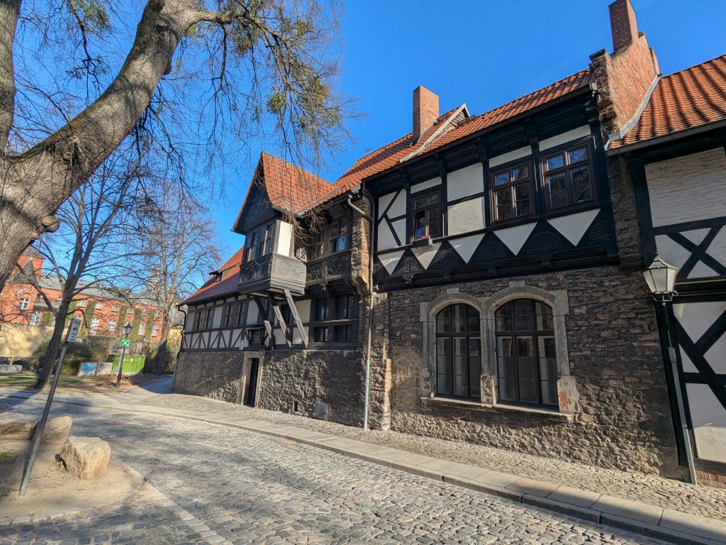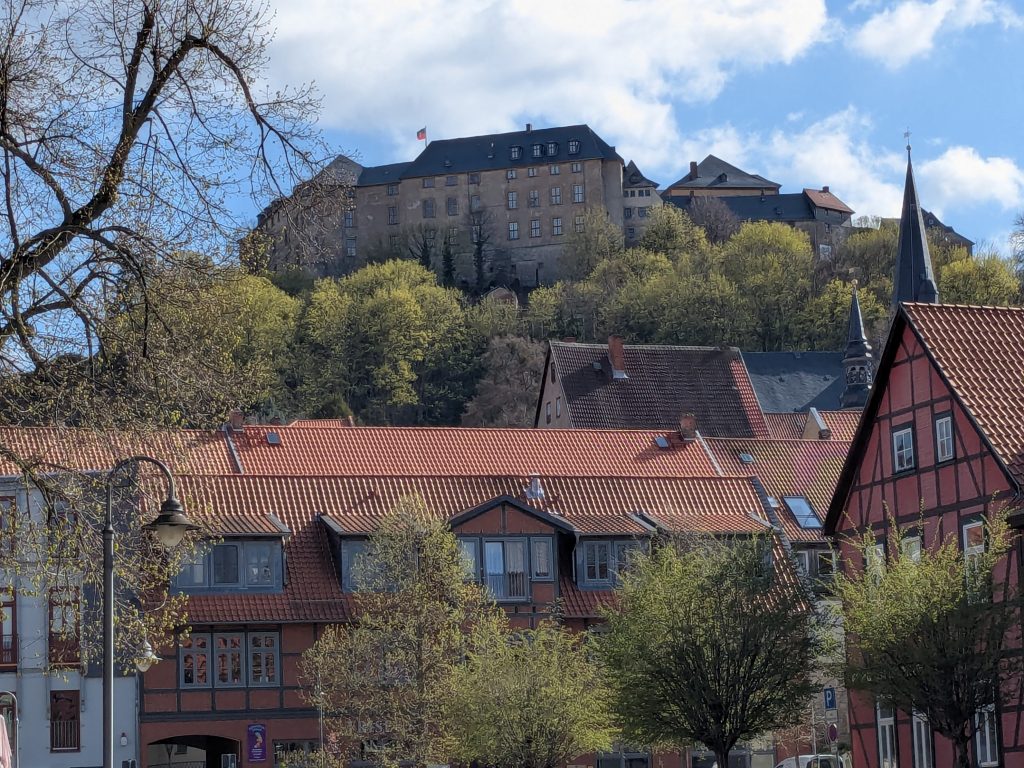 Wir haben etwas verschlafen, also wieder Frühstück zur Mittagszeit. Dann geht es mit dem Kleinen Richtung Blankenburg. Auf dem Wanderparkplatz der Burg Regenstein wird geparkt und wie der Name schon sagt, wird dann gewandert. bergauf zur Ruine der Burg, dann Bergauf und runter, auf „perfekten“ Wanderwegen zu den Sandsteinhöhlen und schließlich zurück zum Auto. Nächster Stopp, Blankenburg und hier das Café Colonial. In Ermangelung des Mittagessens gibt es Torte und Kakao total lecker, aber kein echter Ersatz fürs Mittagessen, findet Ralf, was sich sehr negativ auf seine Laune auswirkt. Trotzdem gibt es noch etwas Blankenburg, das große Schloss ist zum Glück schon geschlossen, sonst wäre seine Laune noch schlechter, aber, das Rathaus und das kleine Schloss mit Barockgarten, schauen wir uns am. Inzwischen ist es 18:00 und wir beschließen zurück zum Stellplatz zu fahren. Klappt aber nicht ganz, es kommt uns noch ein Chinese dazwischen. Was sich aber sehr positiv auf Ralfs Laune auswirkt und extrem lecker ist. 12150 Schritte waren es Heute.