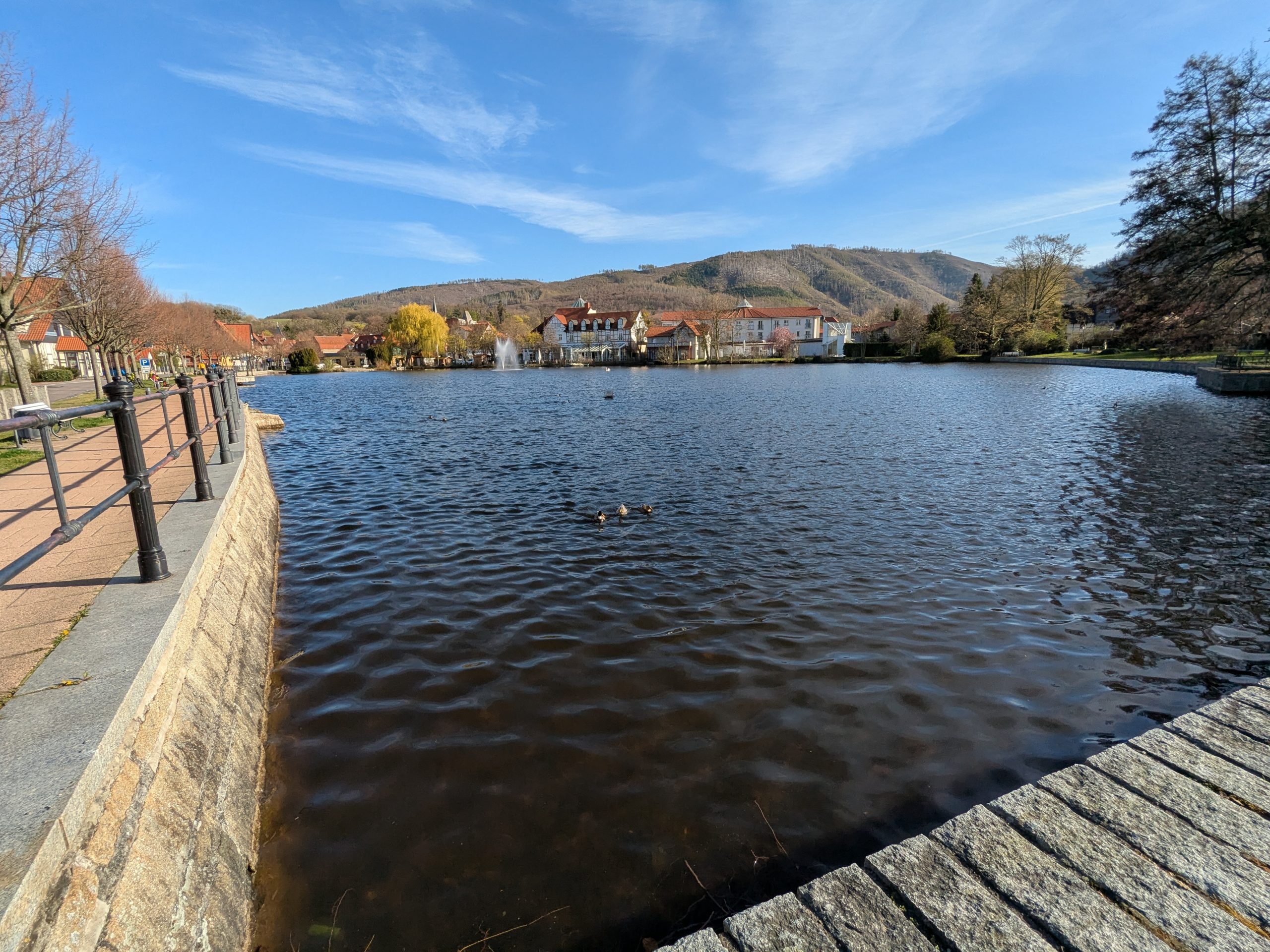 Wieder steht Ausschlafen auf dem Programm, nach einem ausgiebigen Frühstück, beschließen wir doch nicht die Zwergenrunde bei Straßberg zu machen, 1 Stunde Anfahrt bei den Spritpreisen ist zu viel. Also brechen wir zum Marienteich am Radauberg auf, um hier eine kleine 6 km Runde zu laufen. Die ist auch sehr schön, mit toller Aussicht auf den Brocken und ins Umland. Leider hat auch hier wieder jemand „blöde Berge“ in den Weg gelegt, aber wir kämpfen uns tapfer rauf und runter, bis wir schließlich nach gut 3 Stunden inkl. ausgiebigen Picknick, 12 Caches und Schnaufpausen wieder am Kleinen ankommen. Kurz, aber wirklich nur ganz kurz erwägen wir noch einen Spaziergang durch Bad Harzburg, aber in anbetracht der Menschenmassen, die sich da rumschieben, ergreifen wir lieber die Flucht. Statt dessen gibt es noch einen kleinen Besuch am Friedenspark und am Forellenteich in Ilsenburg. Dann bekommt der Kleine noch ein Schaumbad, auch er soll was vom Urlaub haben. (Leider verliert er in der Waschstraße seine Nebelschlussleuchte) Dann ist endgültig Feierabend und nur noch Sofa angesagt.