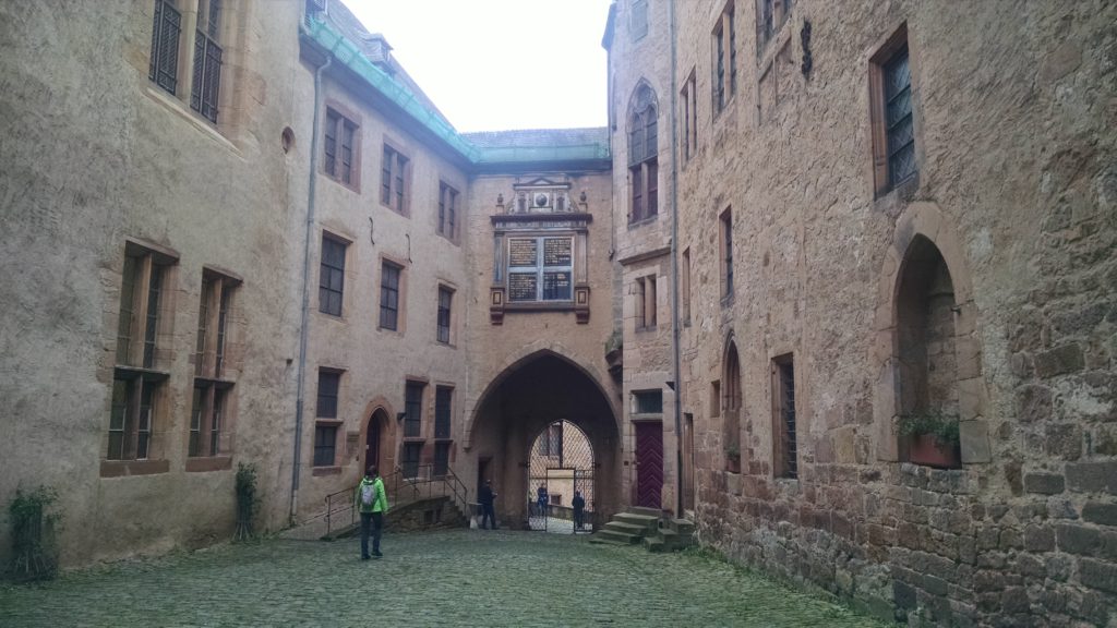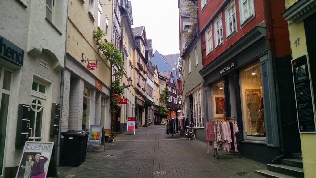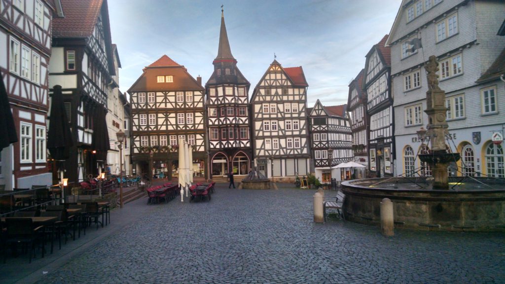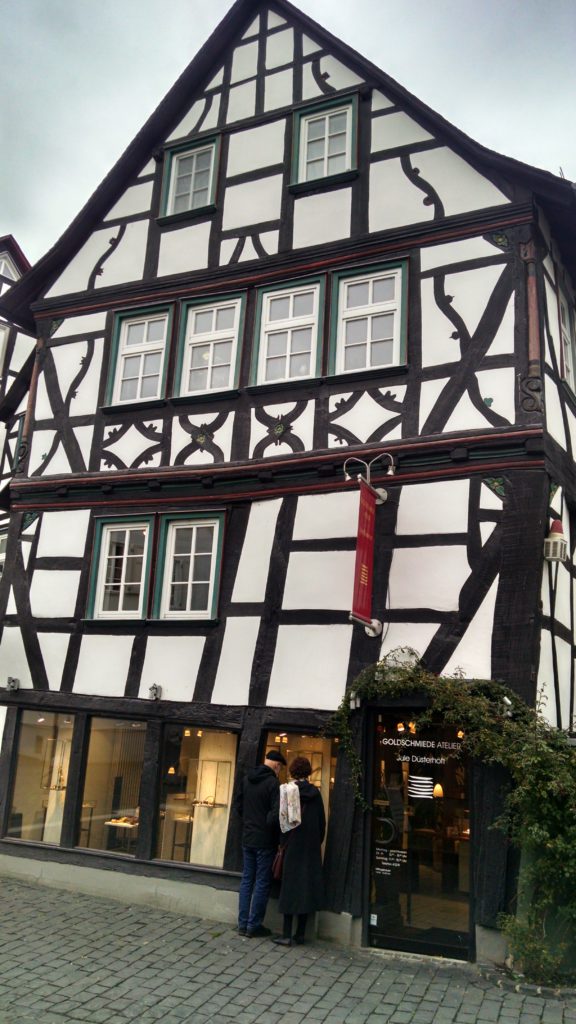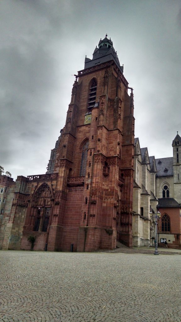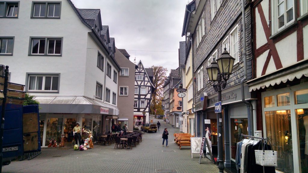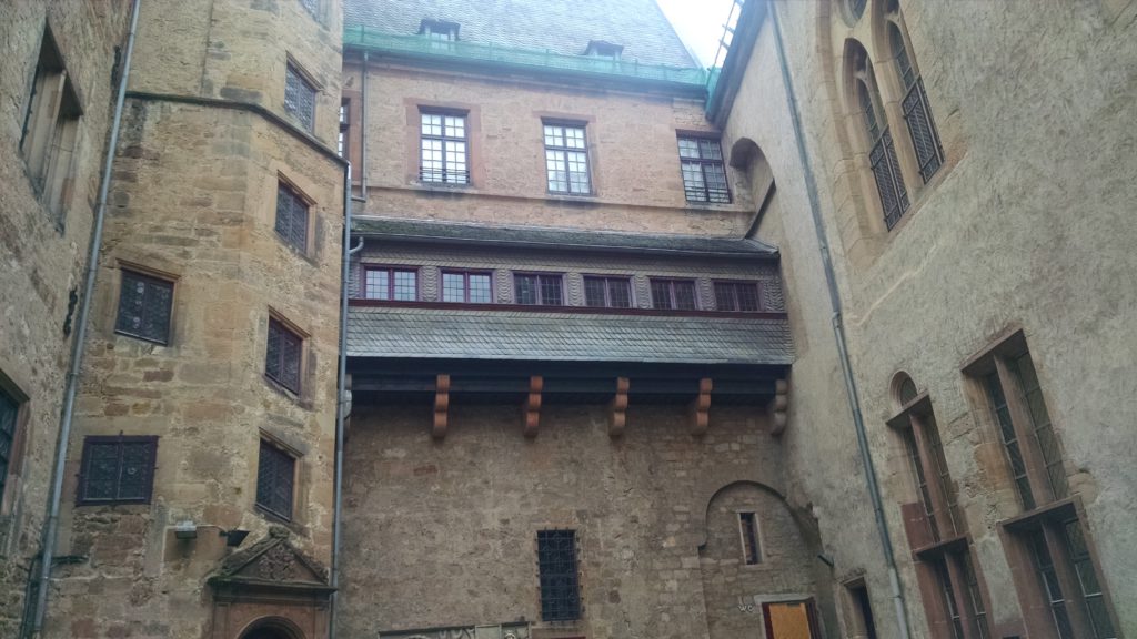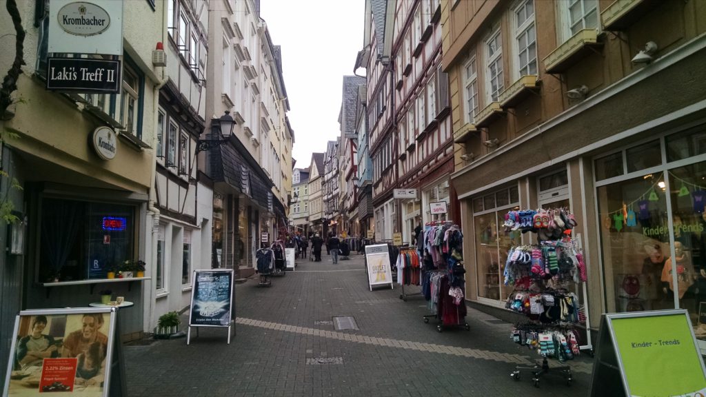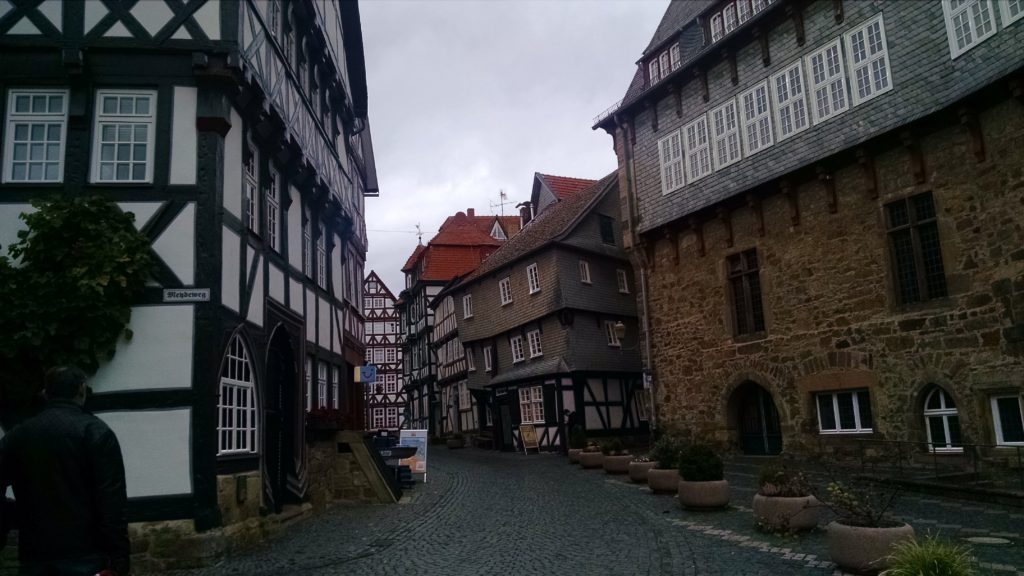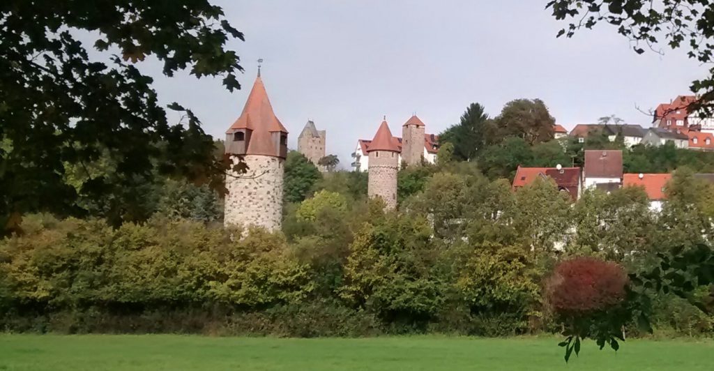 10.10.17 Um 8:30 Uhr ist draussen Randale mit Rasenmähern, Pustern und Freischneider. Trotzdem sind wir erst um 11 auf der B3 Richtung Marburg. In Marburg ist noch viel Platz. Nach dem Mittagessen laufen wir in die Altstadt.