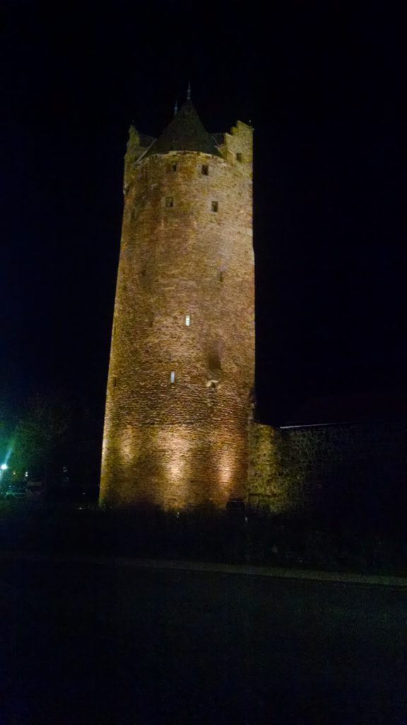Stellplatz in Fritzlar am Grauen Turm für 7 Euro plus Strom einen Euro für 2 kwh. Abends noch lecker beim Griechen gegessen.