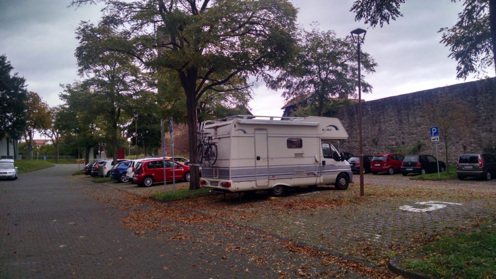 11.10.17 Gegen 13:30 Uhr erreichen wir nach 50 km den Stellplatz Falkenstrasse in Wetzlar. Für 8 Euro ist hier alles inklusive. Ist nur ein langweiliger Schotterplatz. Die Altstadt ist ca. 1 km entfernt. Nach einem Mittagssnack laufen wir los.