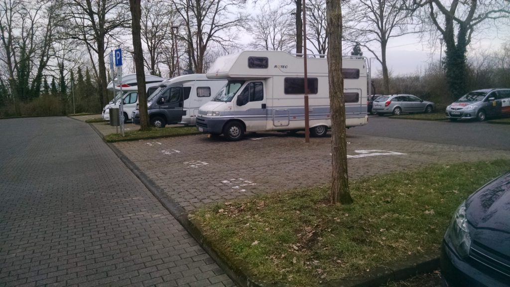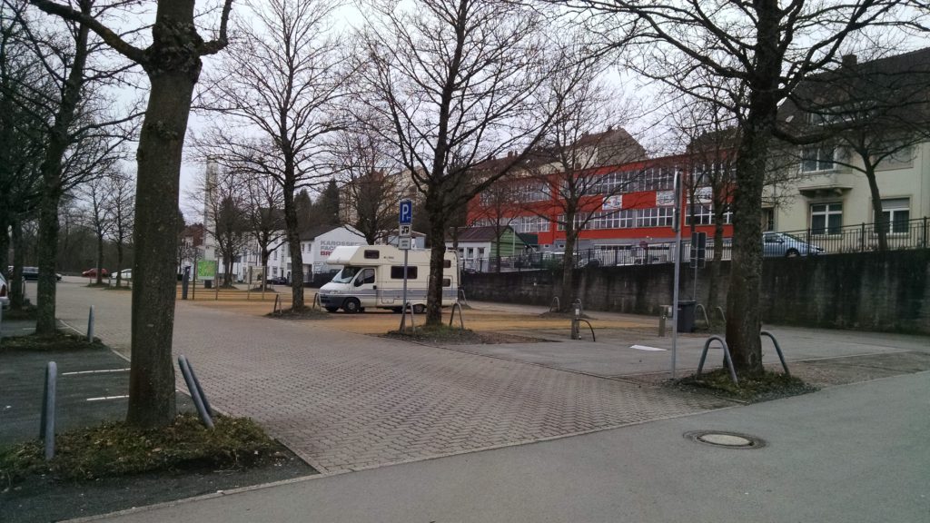 21.3.18 Wieder schön ausgeschlafen, es war gar nicht so laut wie vermutet in der Stadt. Von der Avia 2 Brötchen für das Frühstück geholt. Leider ist Tina beim Frühstück ein Zahn-Provisorium zerbrochen. Macht ja nichts, wir stehen ja direkt am Medicenter in Pirmasens. Kurz angerufen und um 12 Uhr war sie fertig beim Zahnarzt. Ich habe derweil aufgeräumt und dem Ordnungsamt zugeschaut, wie die Knöllchen an die PKWs verteilt wurden, die auf den Womoplätzen parkten.