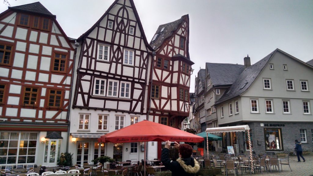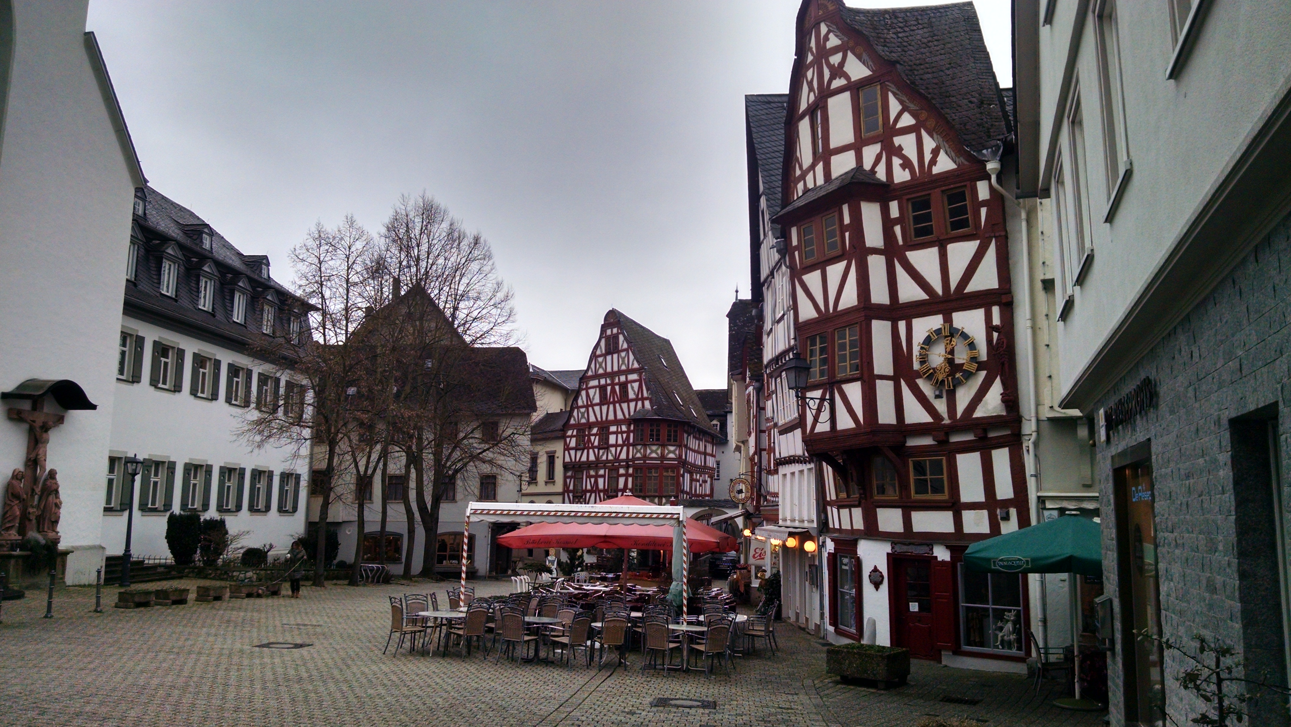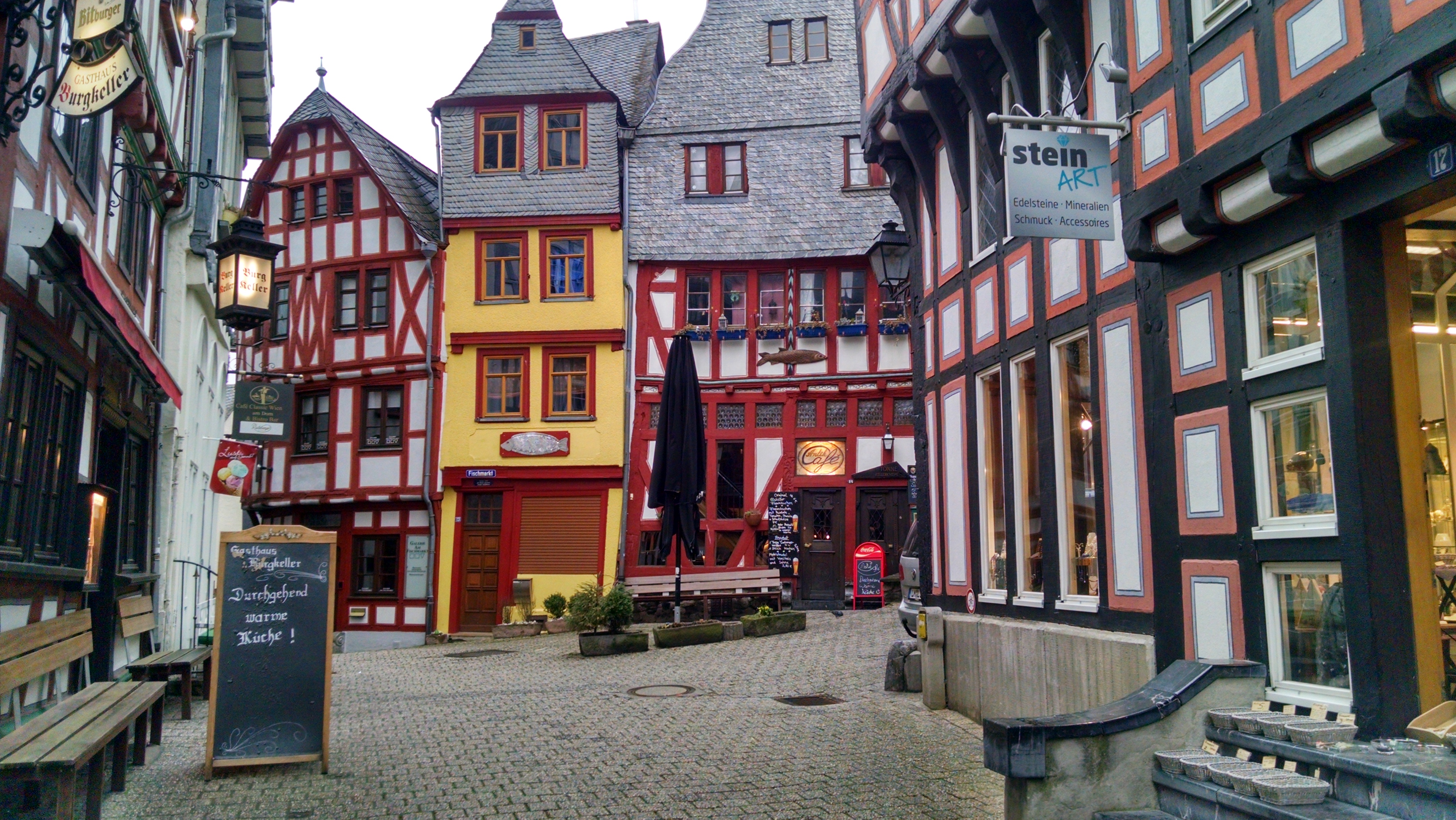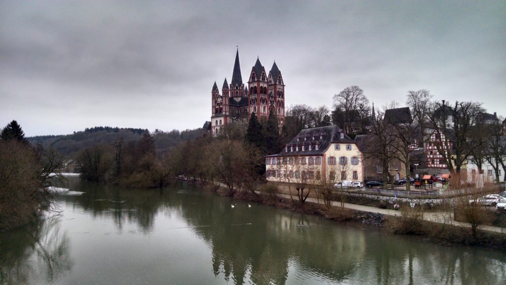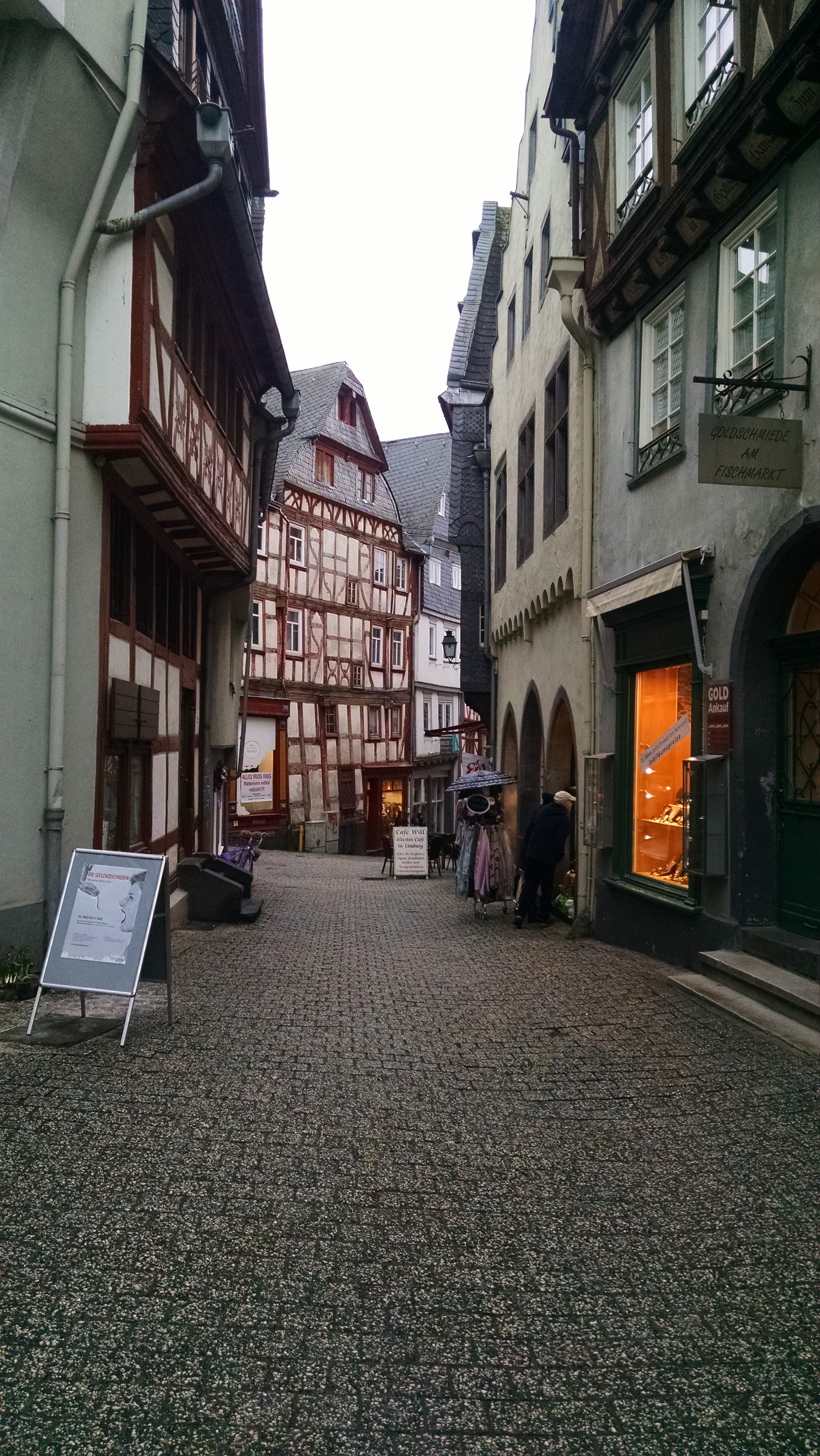 Über die Landststrasse Richtung Limburg, auf der B327 war wirklich viel Schnee, nach uns wurden auch einige Strassen wegen Unfällen gesperrt. Einem Hinweis zu einem römischen Kastell folgend landen wir irgendwann auf der B9 am Rhein in Boppard. Der folgen wir bis Koblenz und fahren über den Rhein und errreichen um 15:30 den Stellplatz. Der Poller fährt auch runter und wir bekommen aus dem Automaten eine Karte, mit der man alles bezahlen kann. Wasser und Strom funktionieren und wir laufen in die Stadt. Auf dem Rückweg finden wir auch noch 2 kleine Döschen.