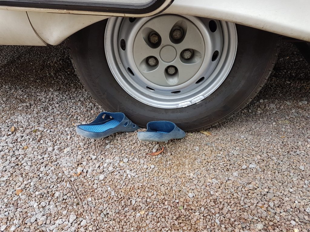Wichtig ist es, die Notebooks wirklich gut zu verstauen: das von Dominik hat leider in einer Kurve den Abflug gemacht, ist aber heile geblieben, nur die Festplatte war nicht fest und ist irgendwann komplett herausgerutscht.