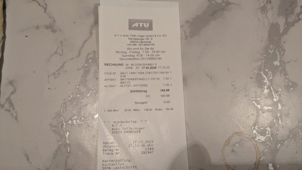Die Alten gelten ab Oktober nicht mehr als Winterreifen, deswegen neu. Mal eben 350 Euro. Termin war kein Problem, nichts los beim Reifendienst.