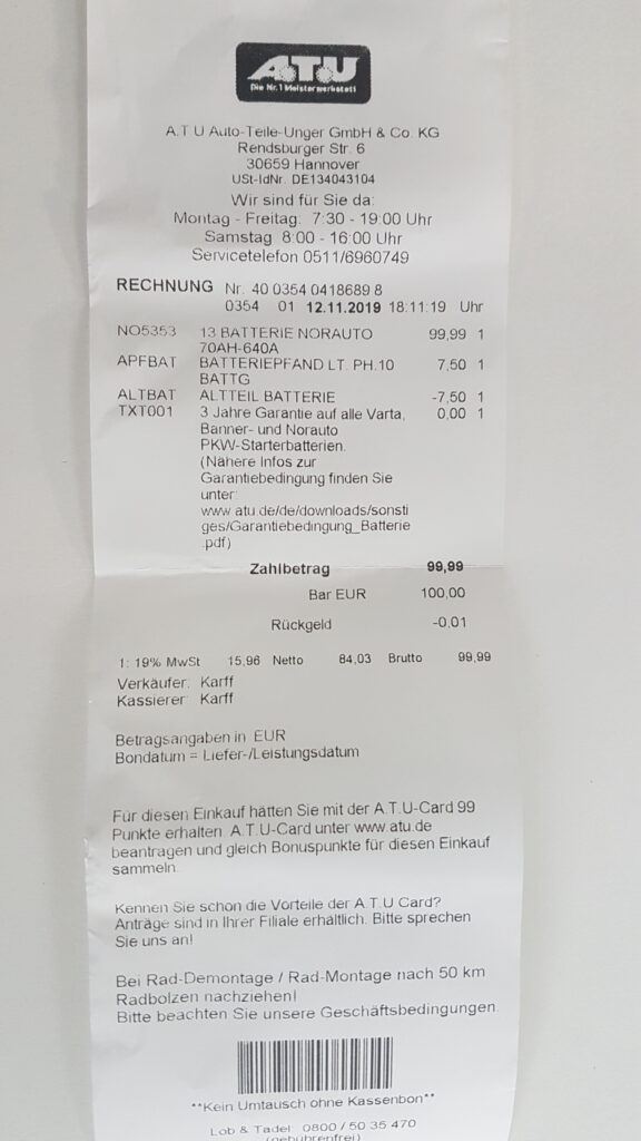 Nach langer Standzeit in der Werkstatt endlich die Plakette. Ein neue Batterie musste auch gekauft werden.