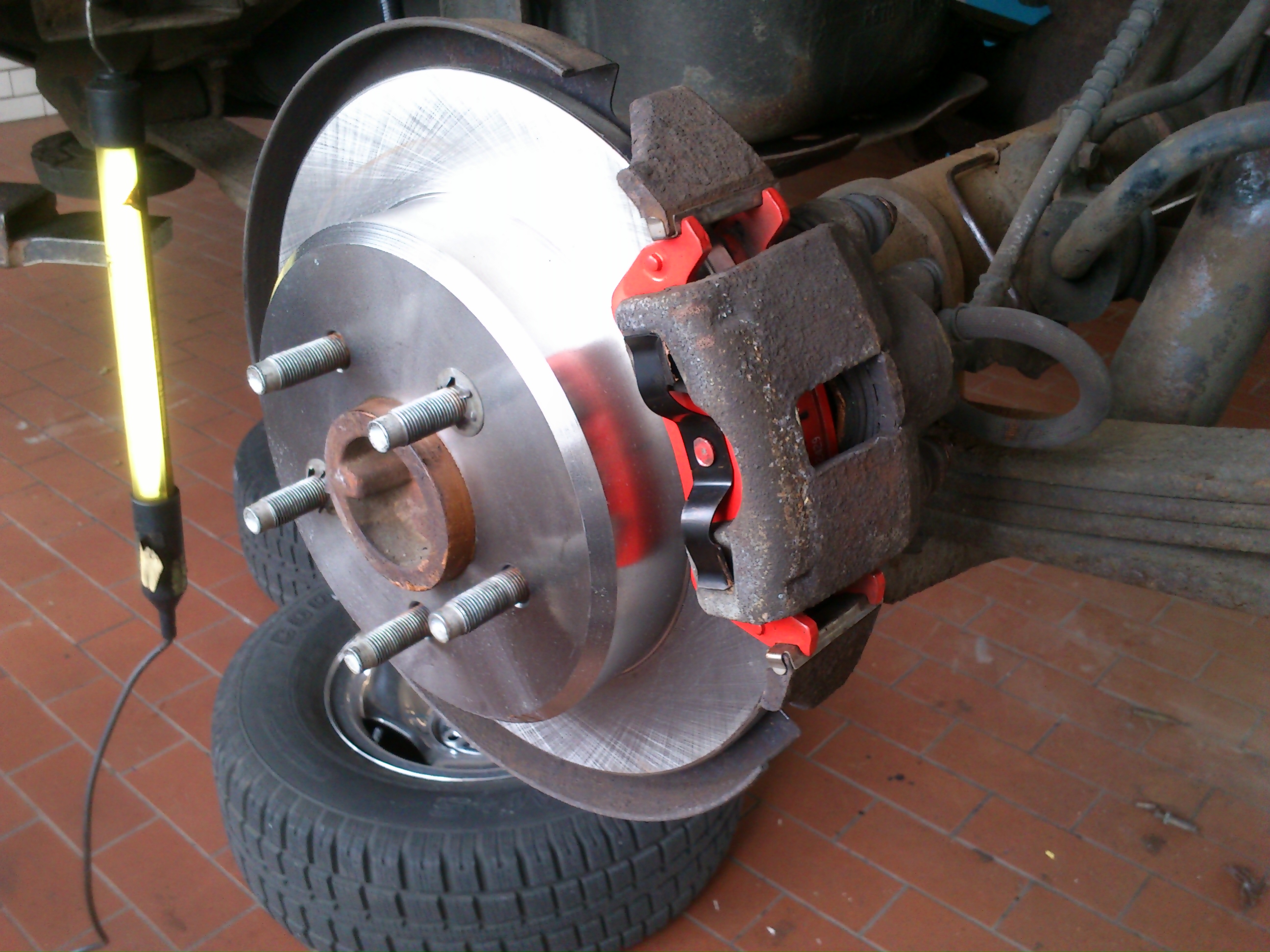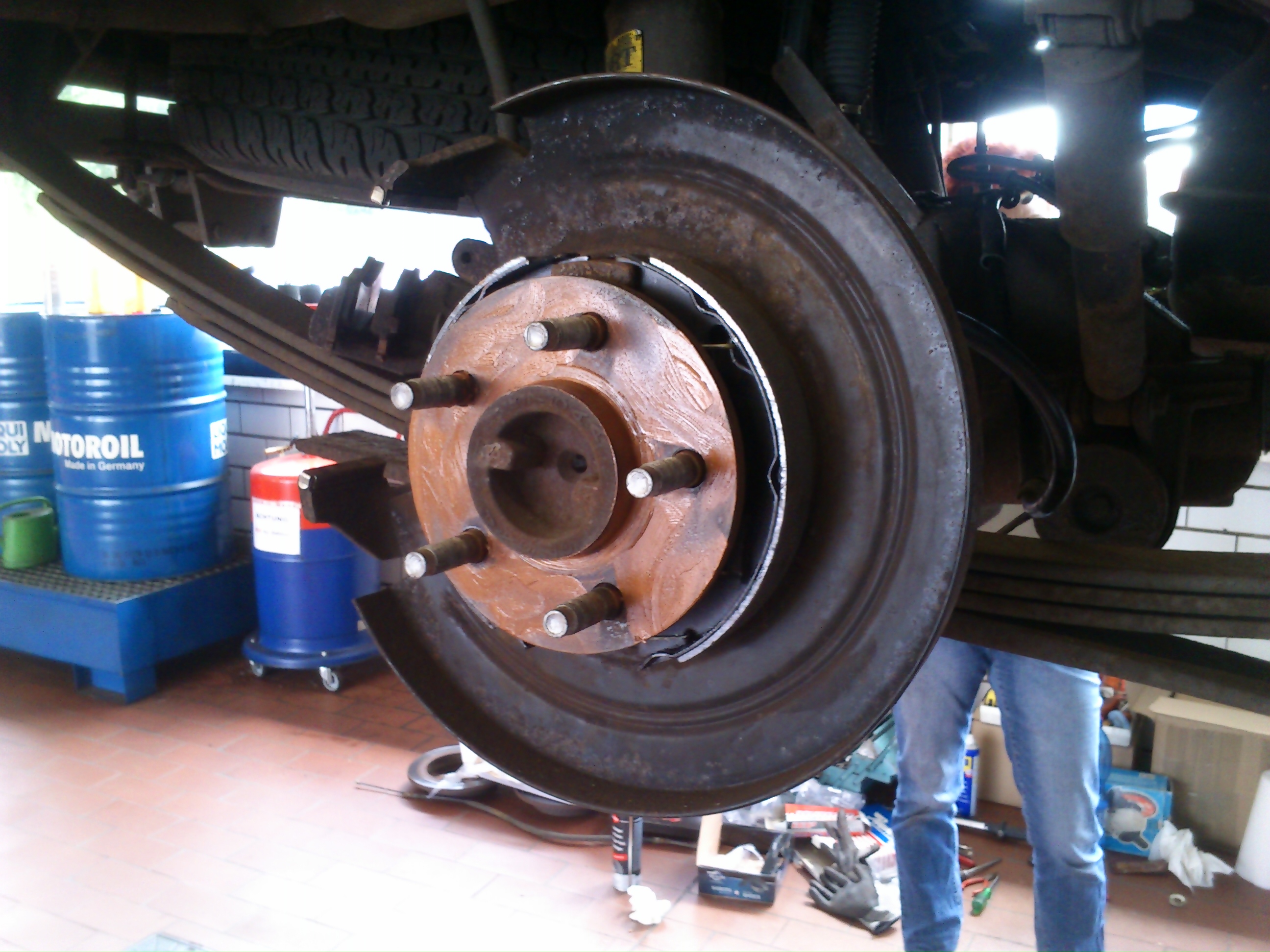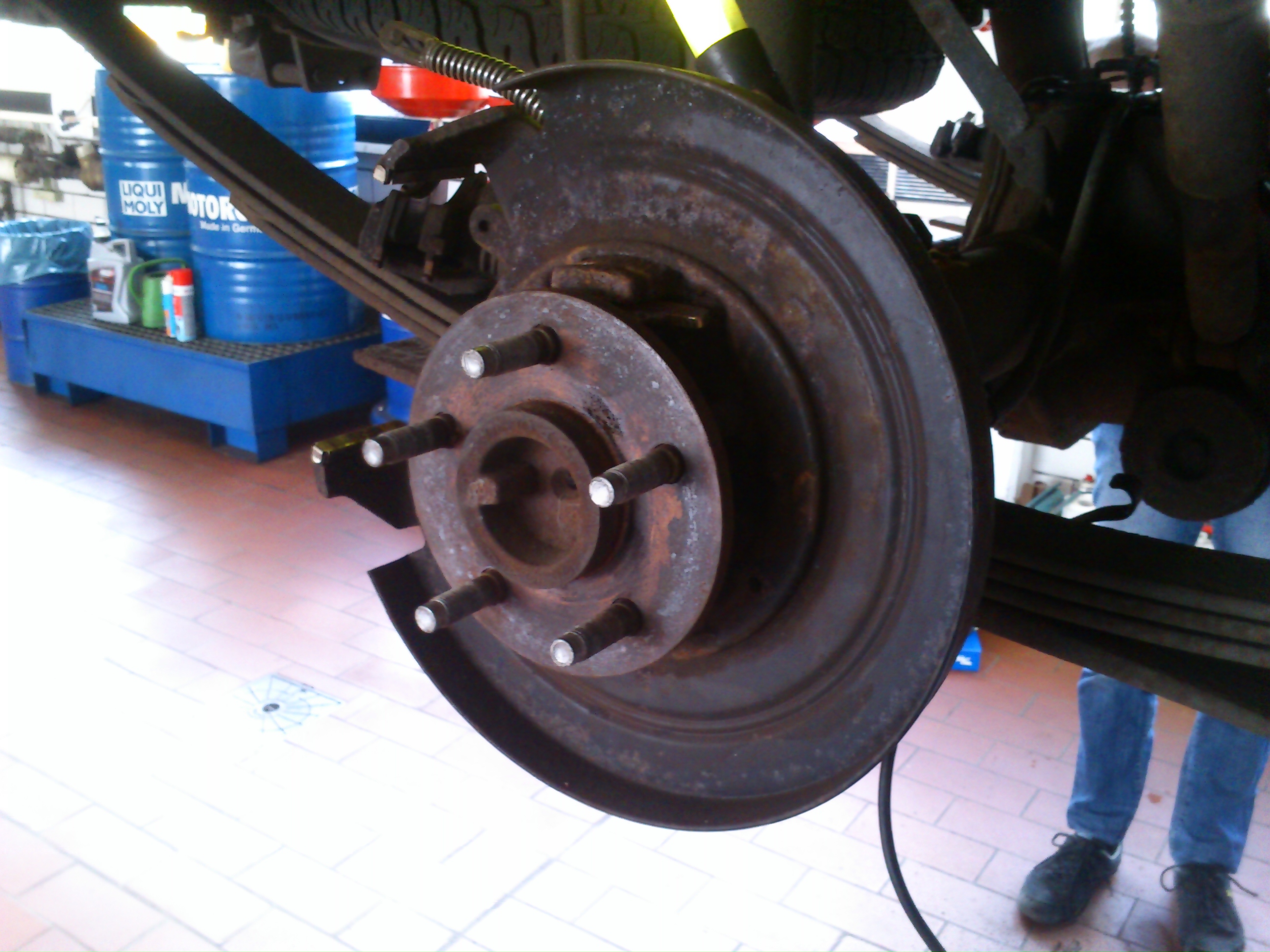 Komplette Bremse hinten neu, diesmal in der Werkstatt machen lassen. Bremsseile müssen auch noch gewechselt werden. Kurios: die Verschlussstopfen von einem 65er Ford Mustang haben gepasst.