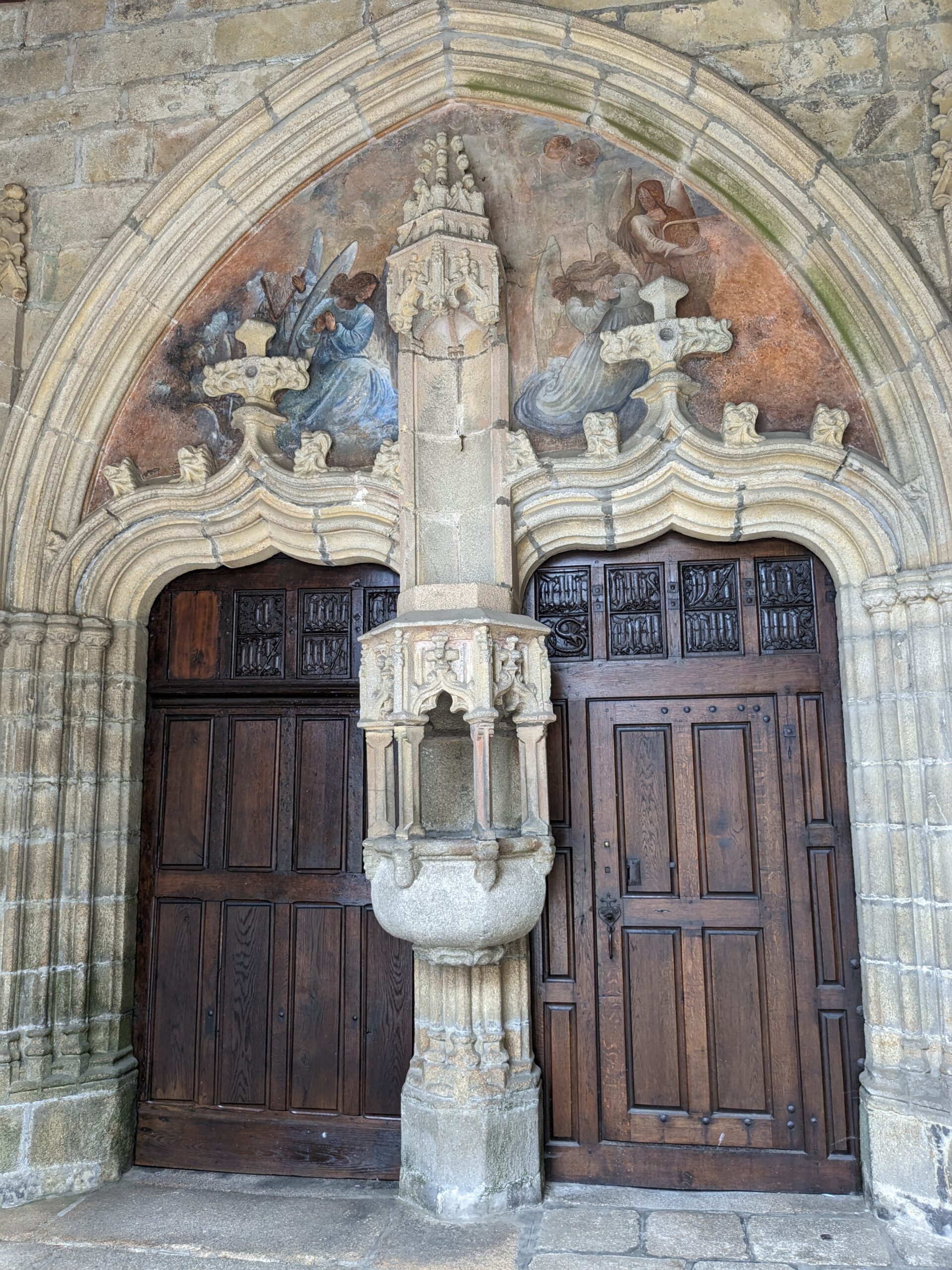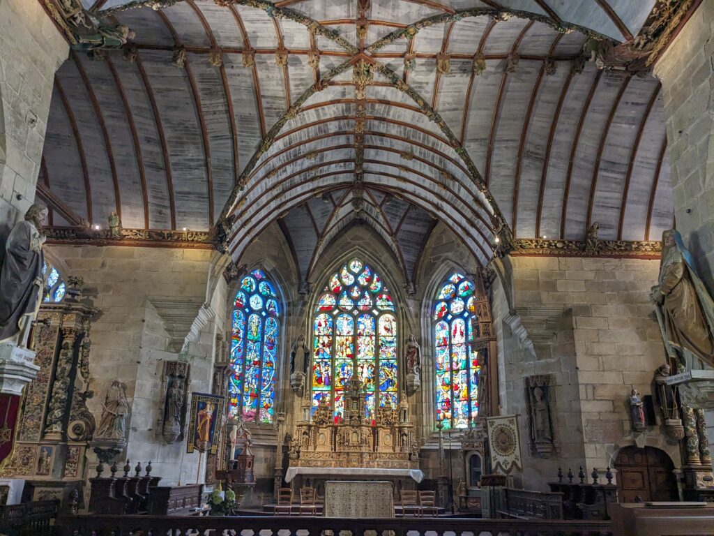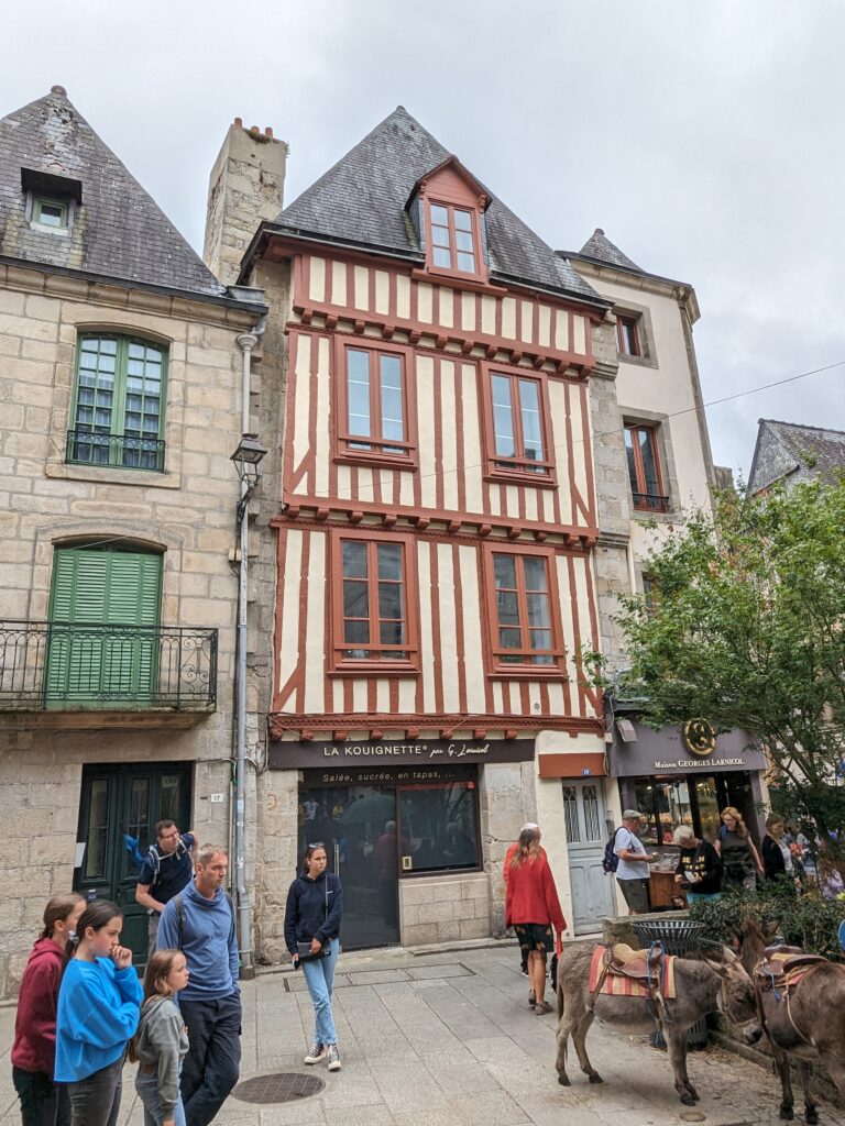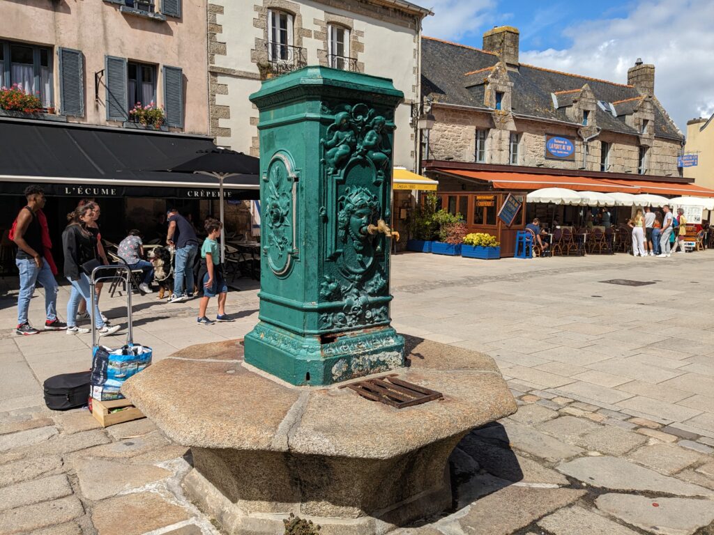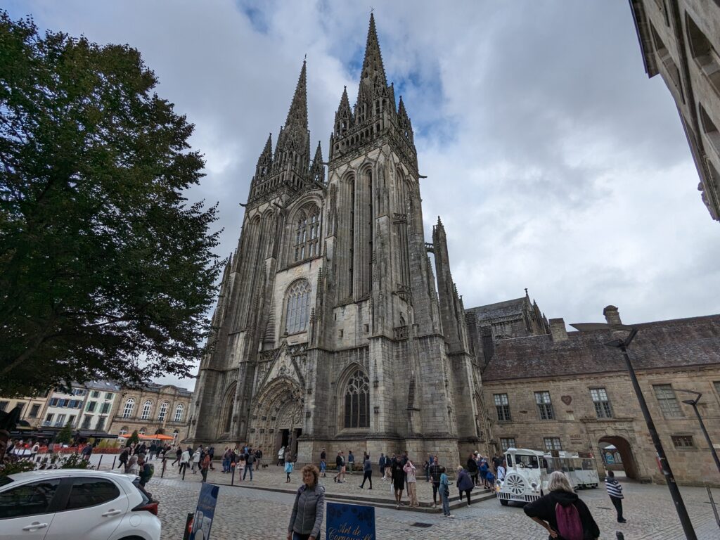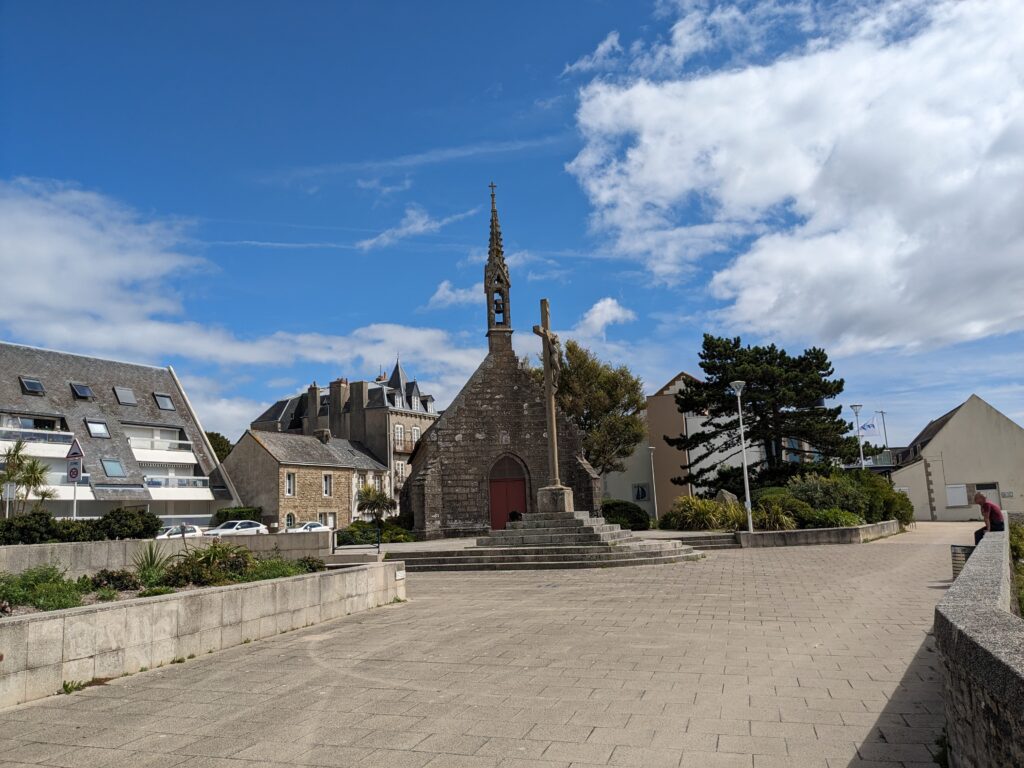 Nach dem Frühstück brechen wir auf nach Morlaix. Unterwegs ein kurzer Stopp in Berrien, um die Kirche zu fotografieren, dann 30 km und 40 Minuten später parken wir knapp 10 Gehminuten vom Zentrum entfernt auf einem für Wohnmobile reservierten Parkplatz – kostenlos: Frankreich! Eine Ver- und Entsorgung gibt es hier auch, mitten in der Stadt! Morlaix ist wirklich nett. Alte Häuser, eine schöne Kirche, (die erste mit Dach im Schiffsrumpfstil) und natürlich das berühmte Viadukt für die Eisenbahn. Nebenher gibt es noch einen Labcache und zum Mittag ein Galette und Breizh Cola – den typisch bretonischen Buchweizenpfannkuchen mit herzhafter Füllung. Lecker! Dann geht es zurück zum Wohnmobil. Unterwegs gibt es schöne Wandmalereien. Wir fahren noch einmal 26 km zum Stellplatz am Pointe de Roscoff. Hier steht noch eine Radtour um die kleine Halbinsel und noch ein Labcache auf dem Programm. Danach radeln wir noch nach Santec, um Baguette zu kaufen! Ist gerade aus. Wir müssen 12 Min warten, dann gibt es ganz frisches, Abends um 19:00.