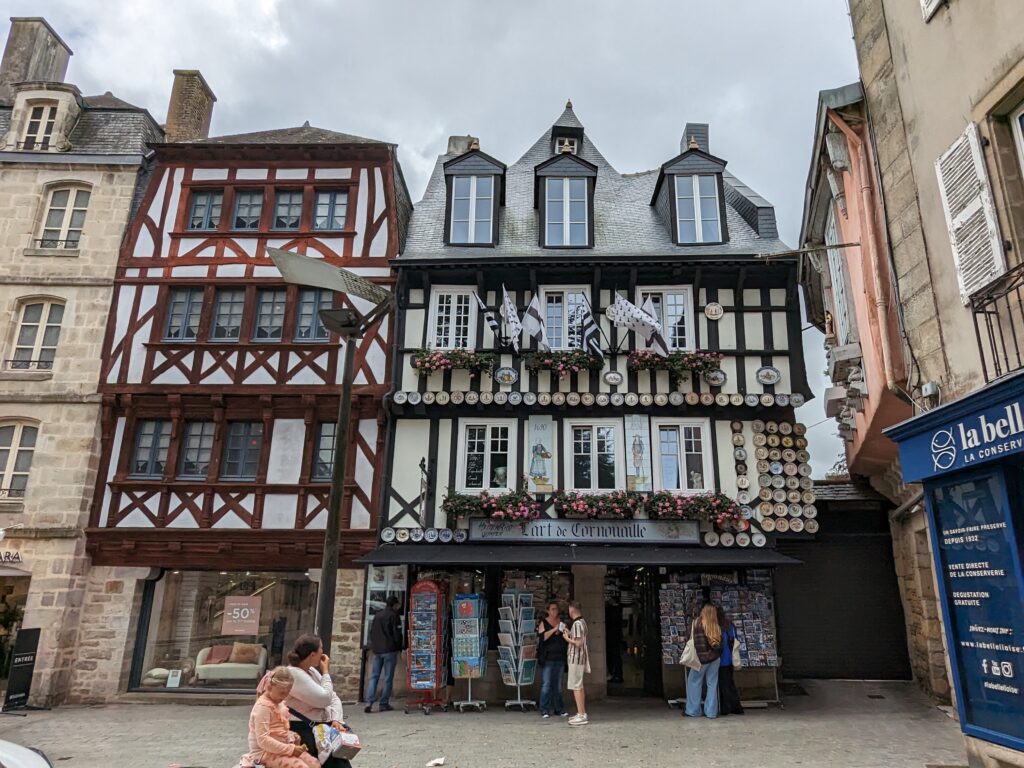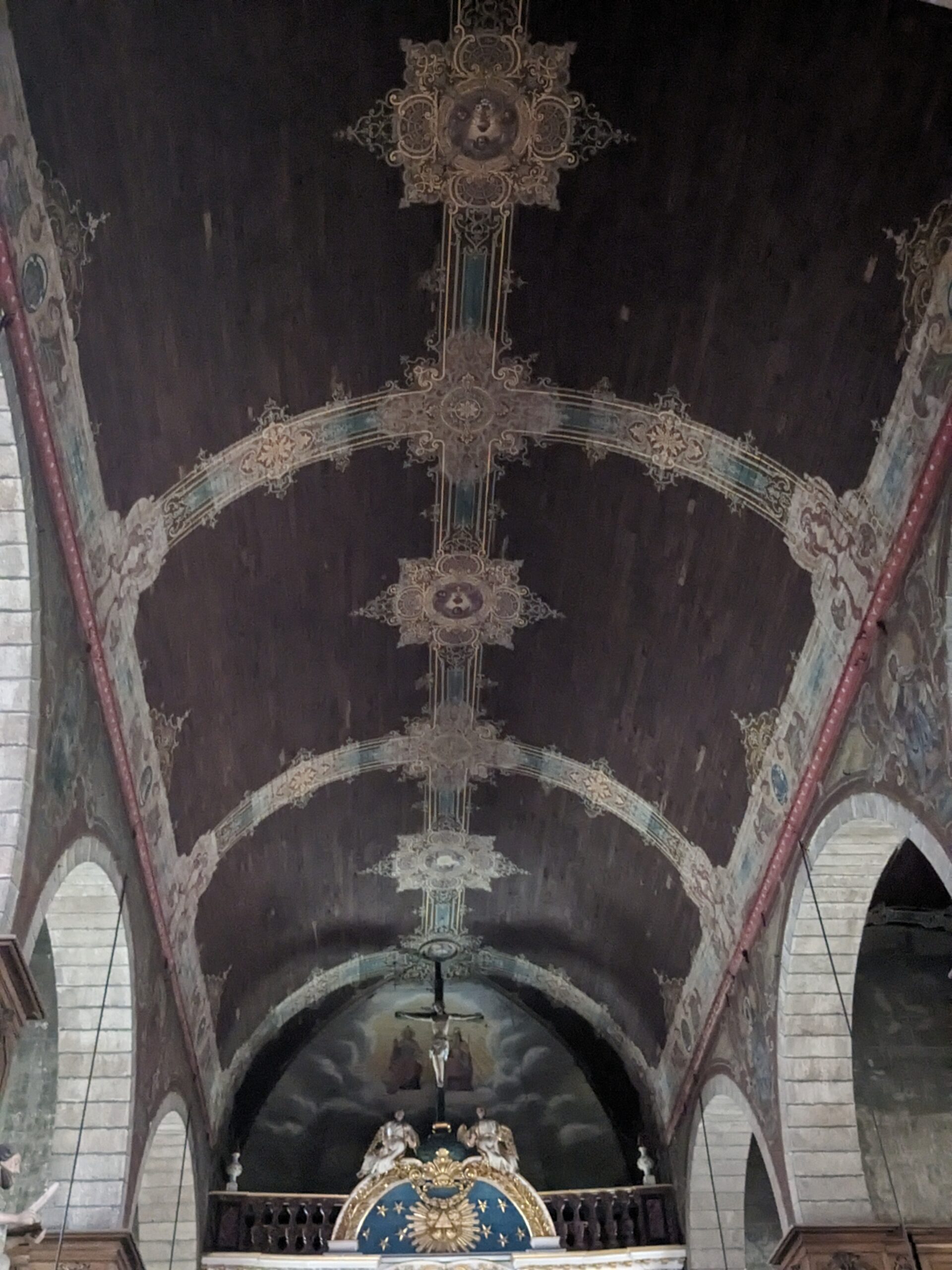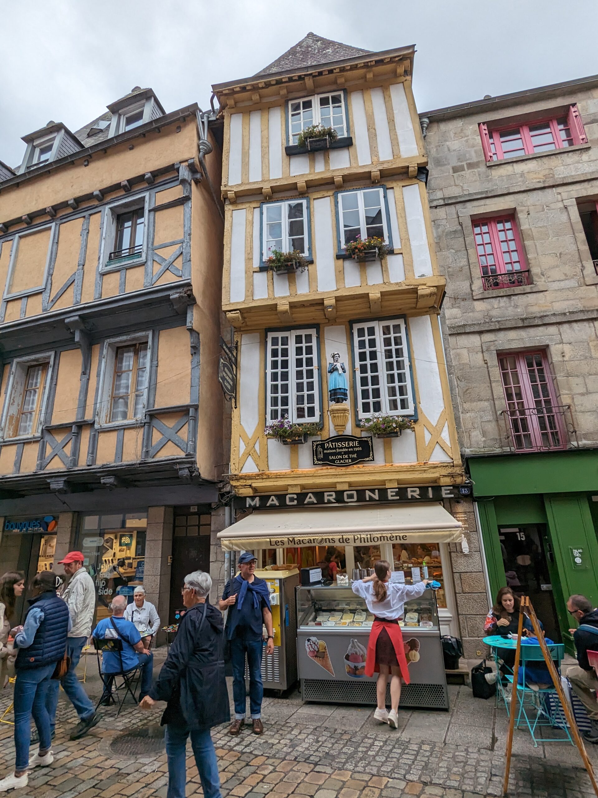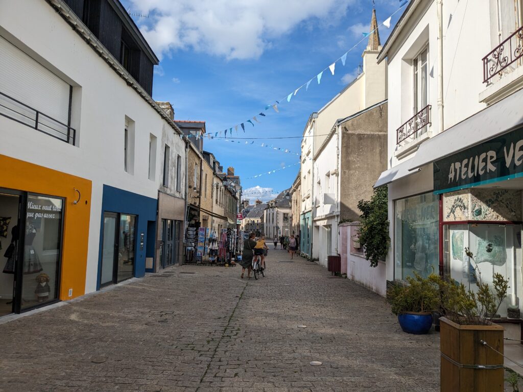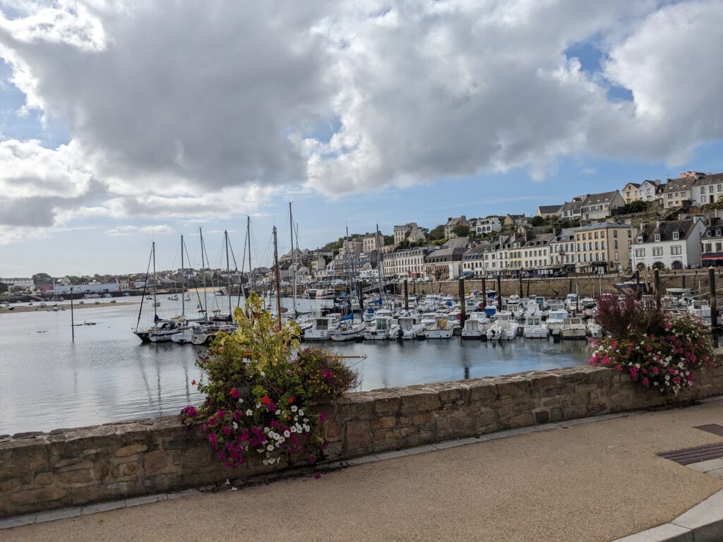 Nach dem Frühstück brechen wir auf nach Morlaix. Unterwegs ein kurzer Stopp in Berrien, um die Kirche zu fotografieren, dann 30 km und 40 Minuten später parken wir knapp 10 Gehminuten vom Zentrum entfernt auf einem für Wohnmobile reservierten Parkplatz – kostenlos: Frankreich! Eine Ver- und Entsorgung gibt es hier auch, mitten in der Stadt! Morlaix ist wirklich nett. Alte Häuser, eine schöne Kirche, (die erste mit Dach im Schiffsrumpfstil) und natürlich das berühmte Viadukt für die Eisenbahn. Nebenher gibt es noch einen Labcache und zum Mittag ein Galette und Breizh Cola – den typisch bretonischen Buchweizenpfannkuchen mit herzhafter Füllung. Lecker! Dann geht es zurück zum Wohnmobil. Unterwegs gibt es schöne Wandmalereien. Wir fahren noch einmal 26 km zum Stellplatz am Pointe de Roscoff. Hier steht noch eine Radtour um die kleine Halbinsel und noch ein Labcache auf dem Programm. Danach radeln wir noch nach Santec, um Baguette zu kaufen! Ist gerade aus. Wir müssen 12 Min warten, dann gibt es ganz frisches, Abends um 19:00.