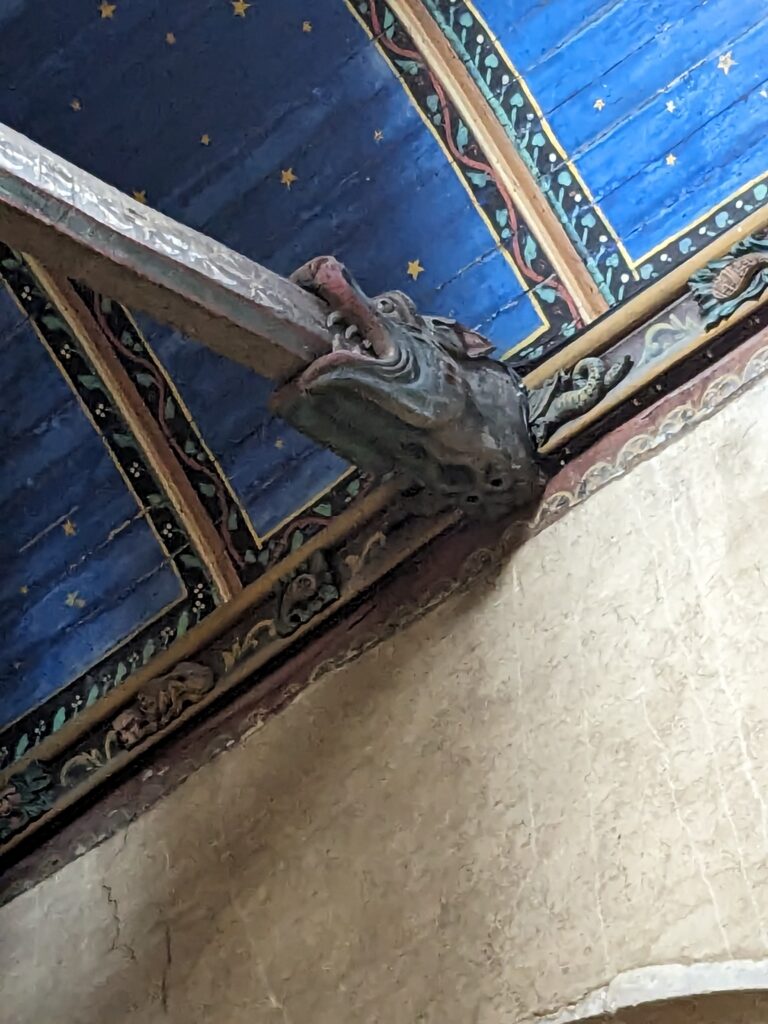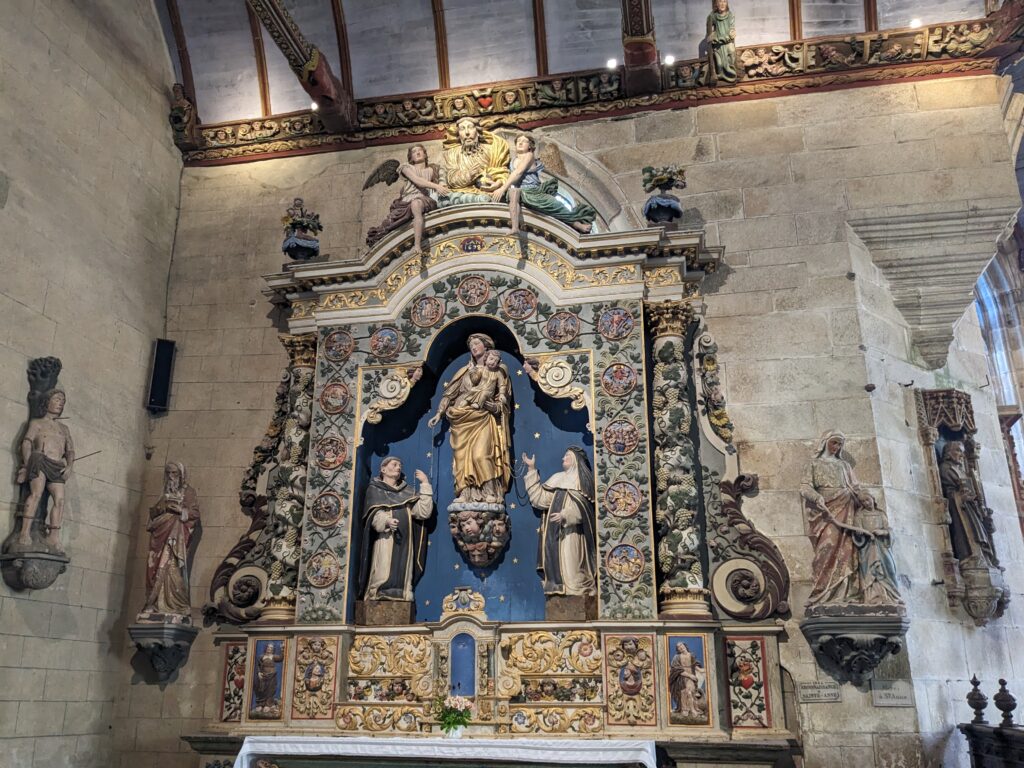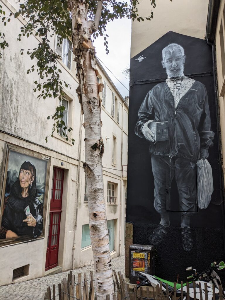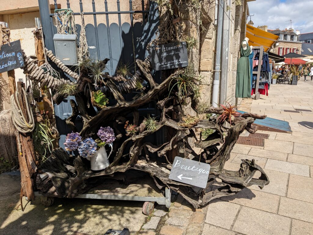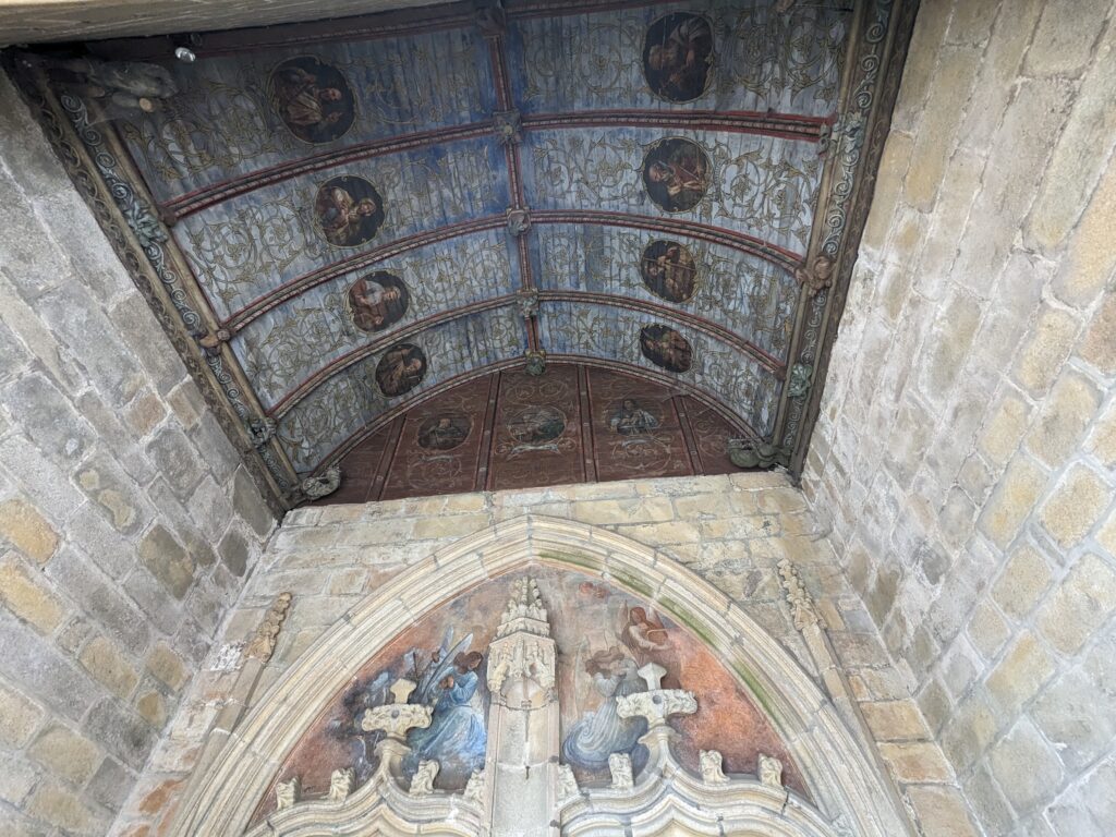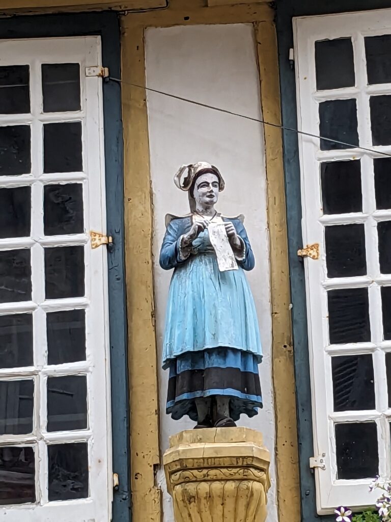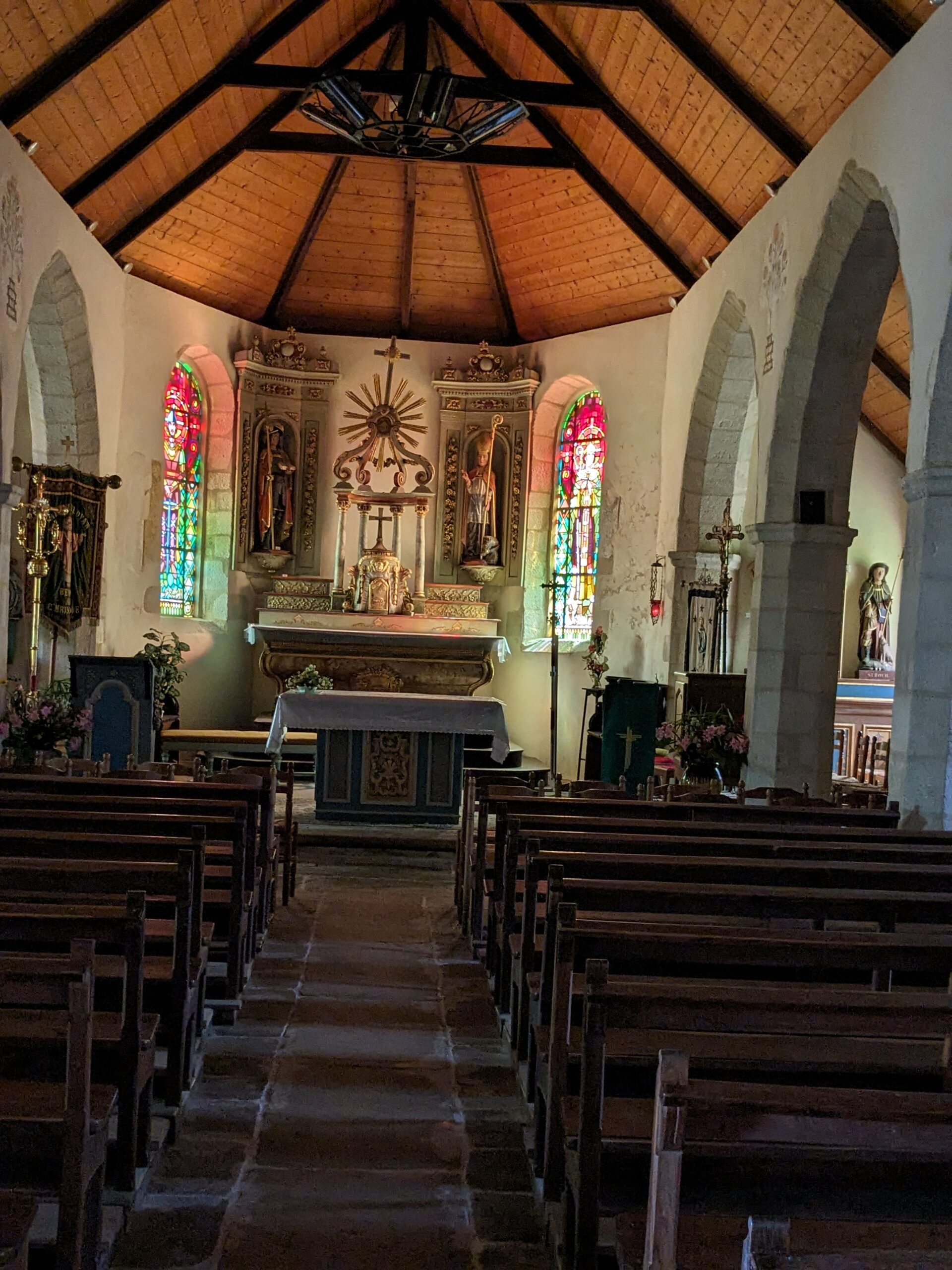 Nach dem Frühstück brechen wir auf nach Morlaix. Unterwegs ein kurzer Stopp in Berrien, um die Kirche zu fotografieren, dann 30 km und 40 Minuten später parken wir knapp 10 Gehminuten vom Zentrum entfernt auf einem für Wohnmobile reservierten Parkplatz – kostenlos: Frankreich! Eine Ver- und Entsorgung gibt es hier auch, mitten in der Stadt! Morlaix ist wirklich nett. Alte Häuser, eine schöne Kirche, (die erste mit Dach im Schiffsrumpfstil) und natürlich das berühmte Viadukt für die Eisenbahn. Nebenher gibt es noch einen Labcache und zum Mittag ein Galette und Breizh Cola – den typisch bretonischen Buchweizenpfannkuchen mit herzhafter Füllung. Lecker! Dann geht es zurück zum Wohnmobil. Unterwegs gibt es schöne Wandmalereien. Wir fahren noch einmal 26 km zum Stellplatz am Pointe de Roscoff. Hier steht noch eine Radtour um die kleine Halbinsel und noch ein Labcache auf dem Programm. Danach radeln wir noch nach Santec, um Baguette zu kaufen! Ist gerade aus. Wir müssen 12 Min warten, dann gibt es ganz frisches, Abends um 19:00.