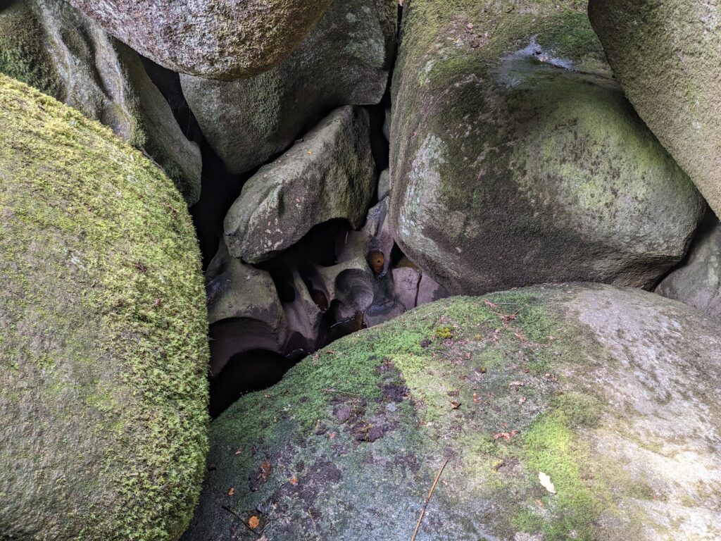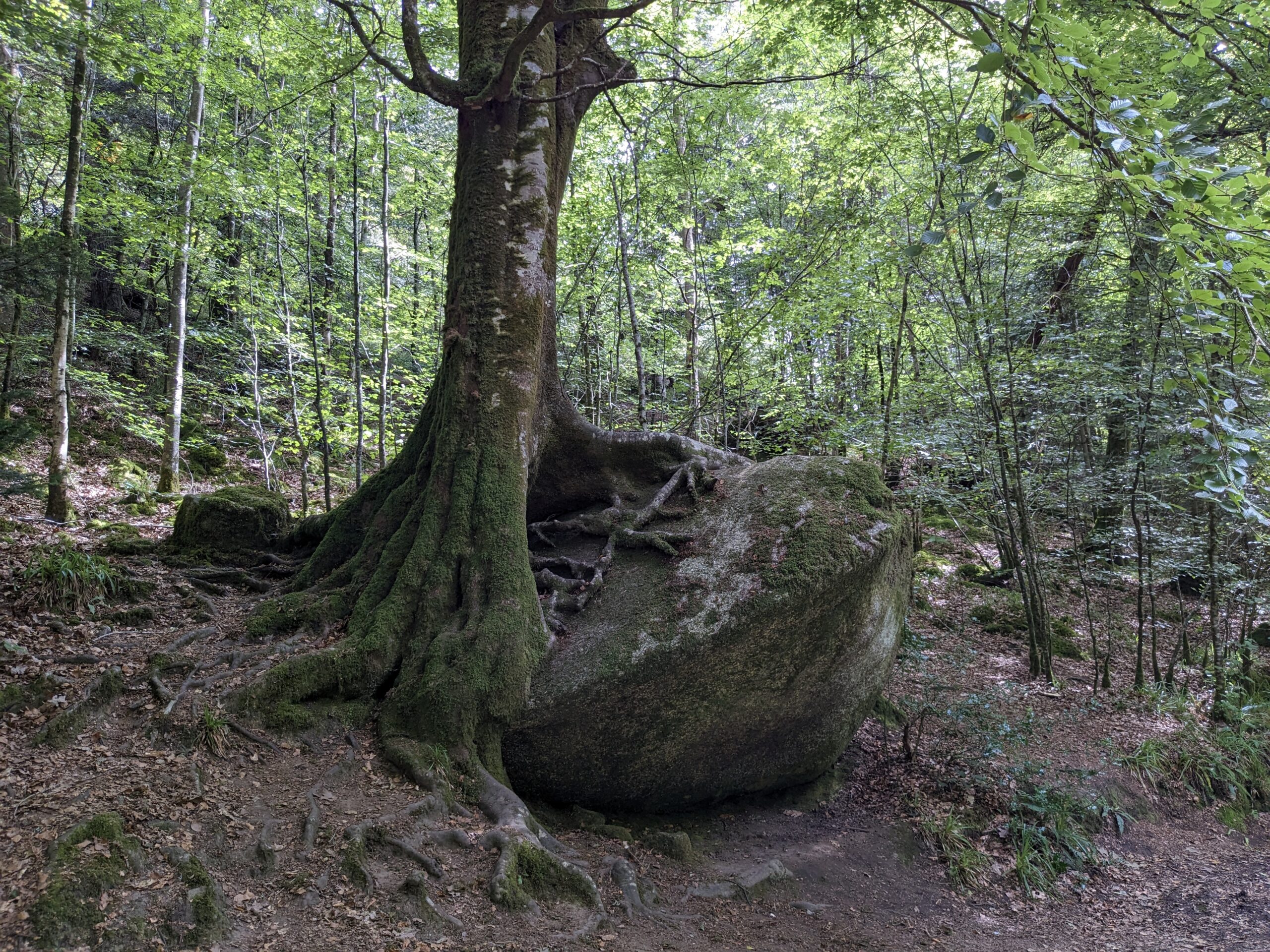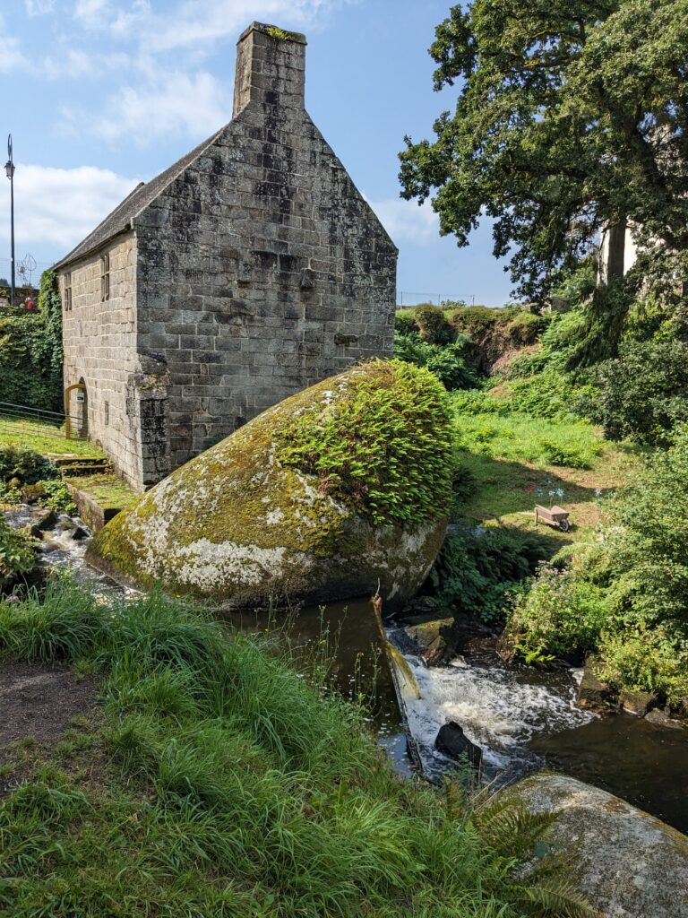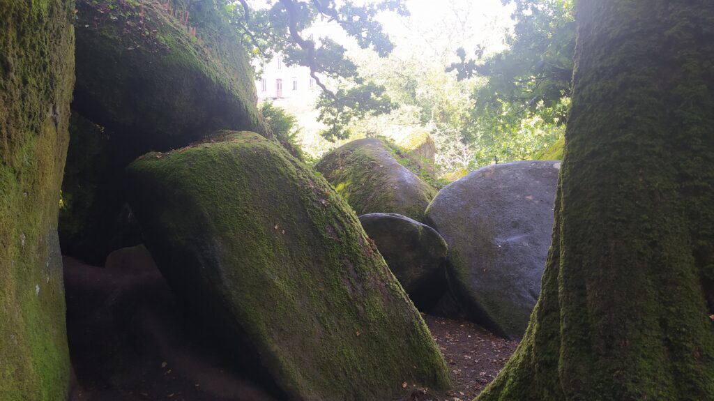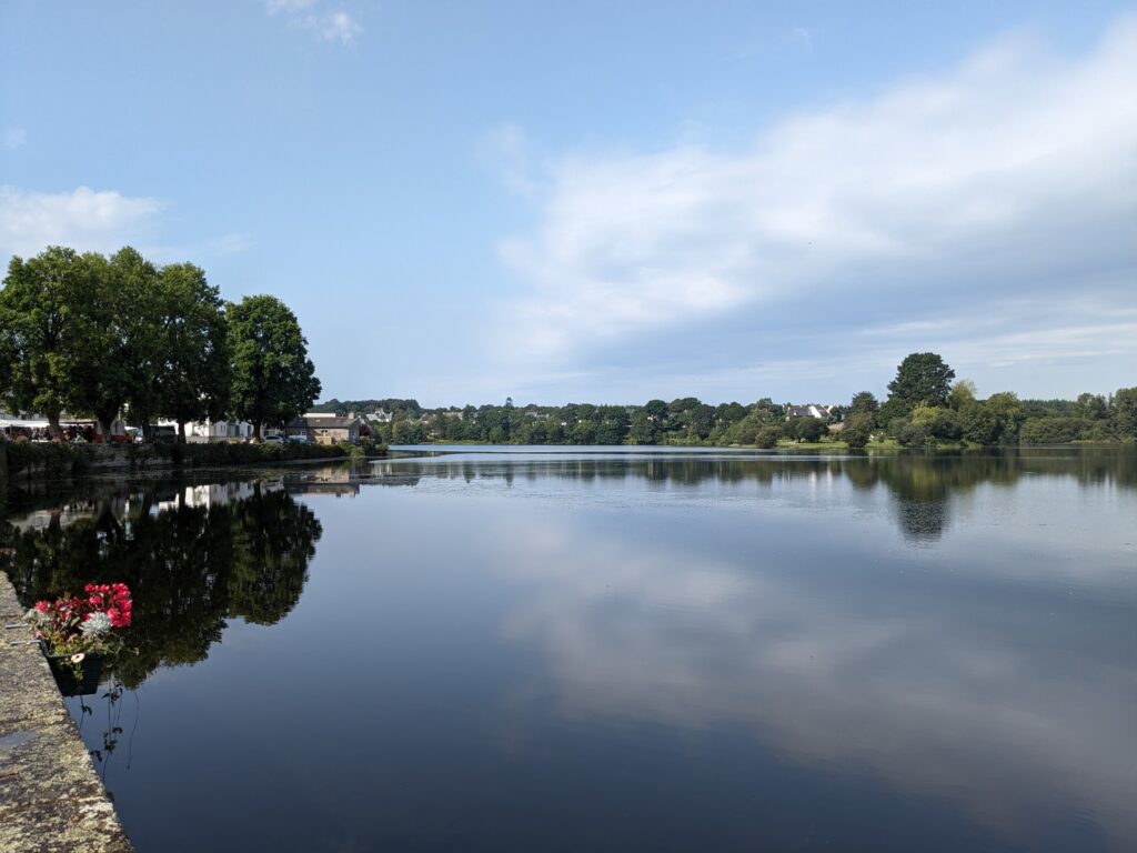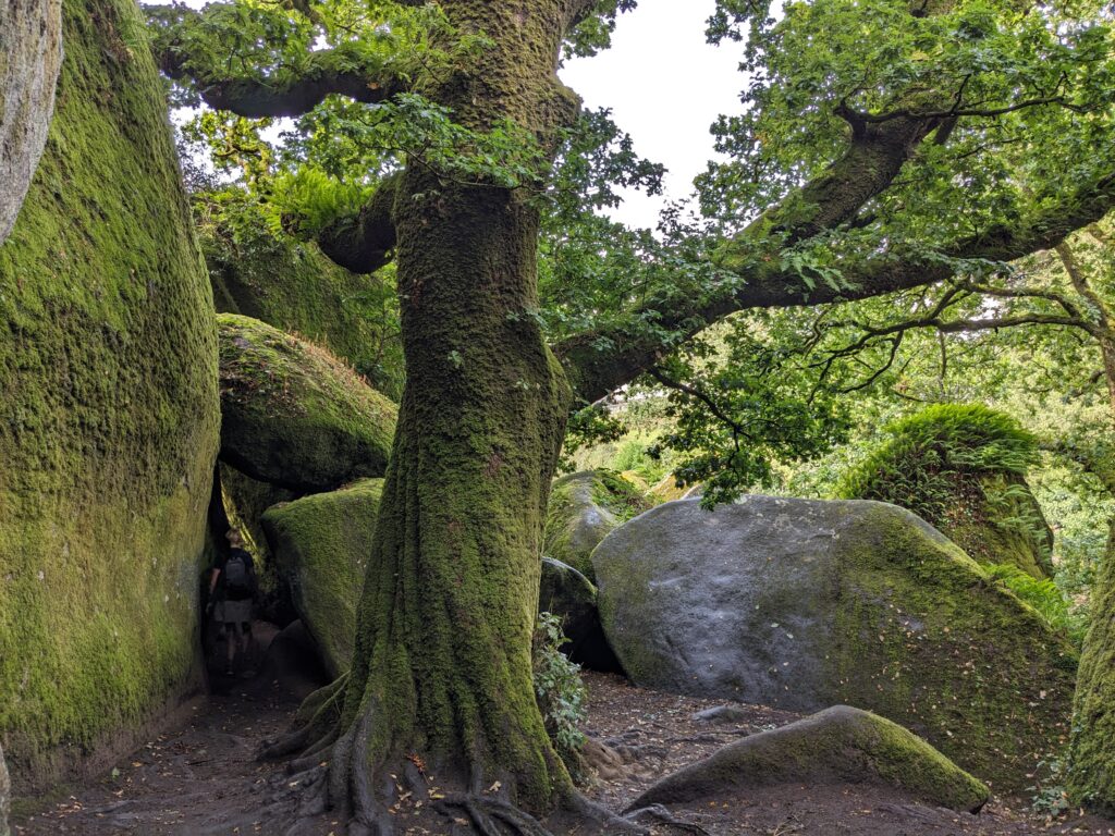 Nach nur 5 km quartieren wir uns früh auf dem Camping Municipal in Huelgoat ein. Auf festem Beton kann nichts passieren. 22,34 Euro bezahlen wir hier für einen Riesenplatz. Das Wetter ist gerade gut, wer weiß wie lange, also schnell Baguettes geschmiert und auf geht’s, zum „Le Chaos der Huelgoat“. Erstmal entlang des Sees. Dann ins Chaos, in die Grotte des Diable, zur Ménage la Vierge. Zum „La Roche Tremblante“ wenn man hier an der richtigen Stelle drückt, bewegt er sich tatsächlich ein klein wenig. Zu guter Letzt werfen wir noch einen Blick auf den „Champignon“, ist aber wohl eher ein Steinpilz. Nebenher haben wir einen Labcach abgeschlossen. Mit den üblichen Problemen in Frankreich schreibt man die Antworten mit oder ohne Tüdelchen? Da braucht es manchmal mehrere Anläufe. Wir laufen jedenfalls erst einmal eine Eisdiele an und dann geht es zurück zum Campingplatz. Nach einem Päuschen schwingen wir uns noch einmal auf die Räder und erledigen im Intermaché die nötigsten Einkäufe, bevor wir den Abend auf dem „Sofa“ beenden.