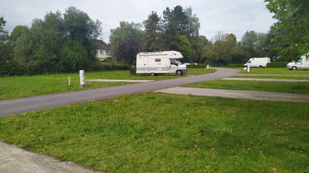 Nach der Ver- und Entsorgung geht es an der Küste nach St. Malo. Dort decken wir uns in einem Supermarkt mit Lebensmitteln ein. Es dauert an der Kasse ewig. Wir steuern einen Stellplatz an der Küste an. Proppenvoll und sehr eng. Der nächste Campingplatz ist auch voll. Also nach Süden ins Landesinnere. In ST GUINOUX soll lt. App noch was frei sein. Hier ist zwar nichts los, dafür leer und ruhig auf Wiese. Einfach mal relaxen. 13,3 Euro soll es kosten. Nach dem Essen sind wir nochmal zu einer schönen Runde mit 5 Caches aus dem 3D-Drucker geradelt. 13,30 Euro sind berechnet worden. Nur 52 km sind wir heute gefahren.