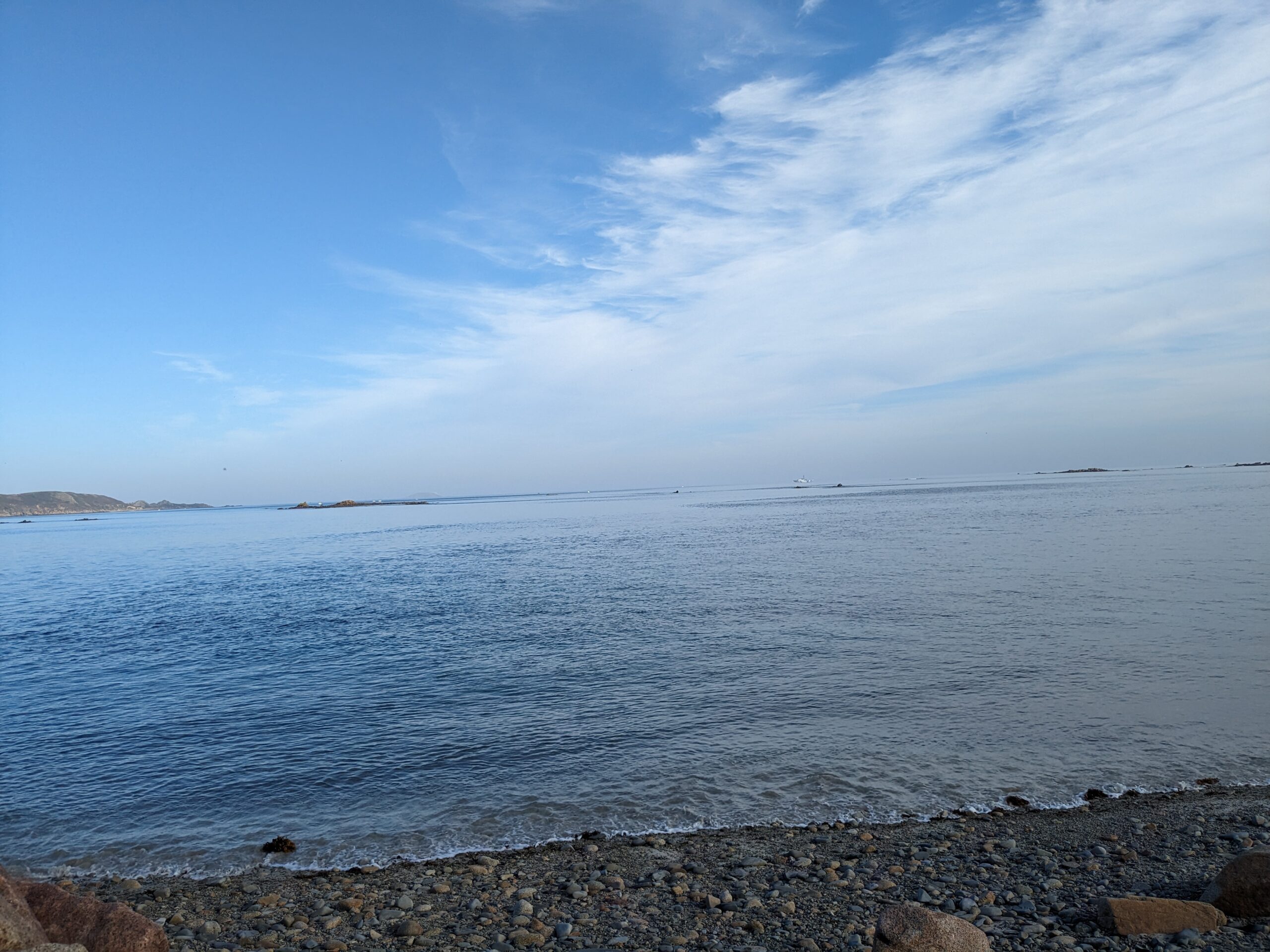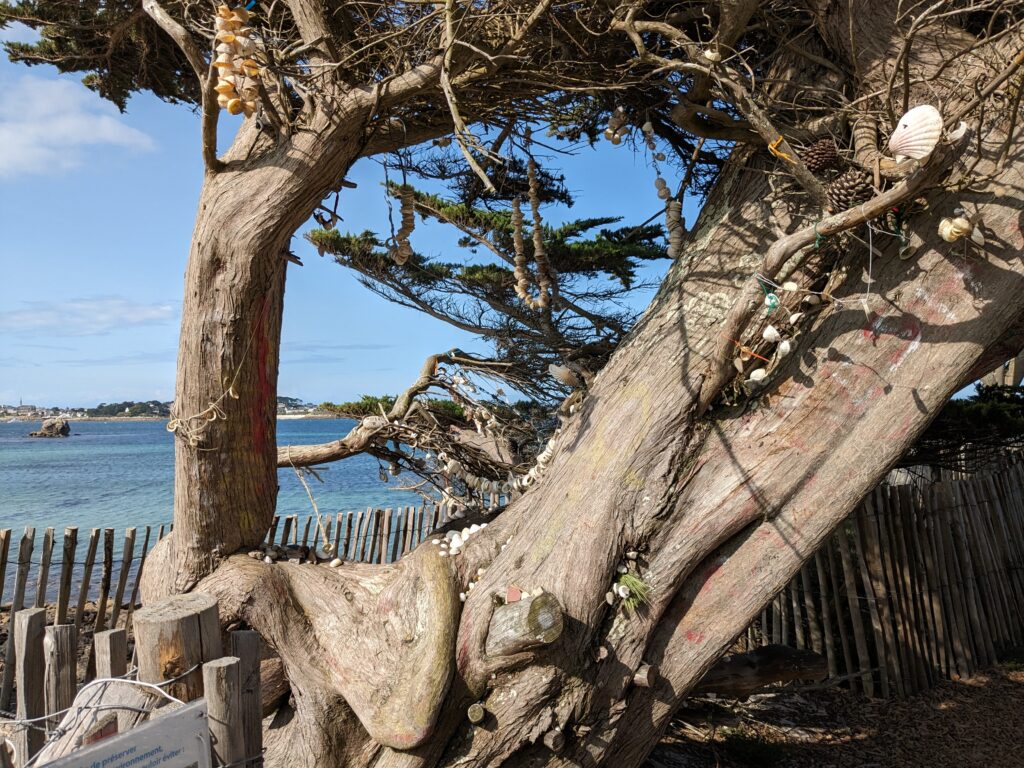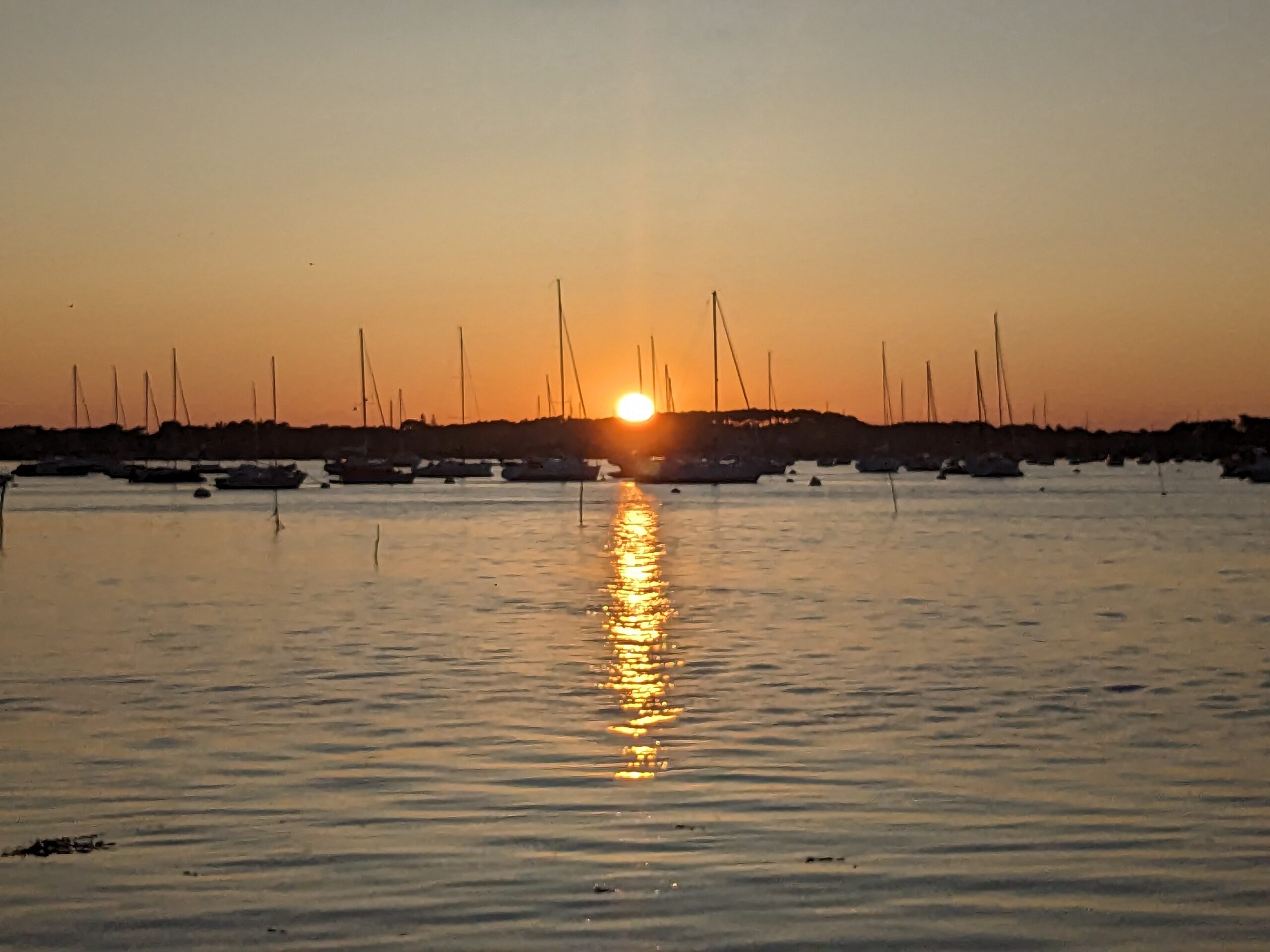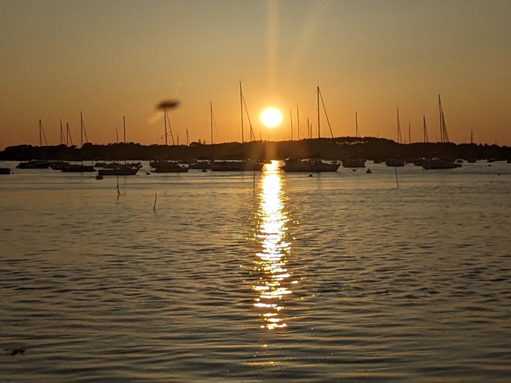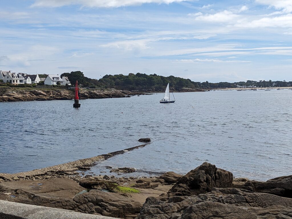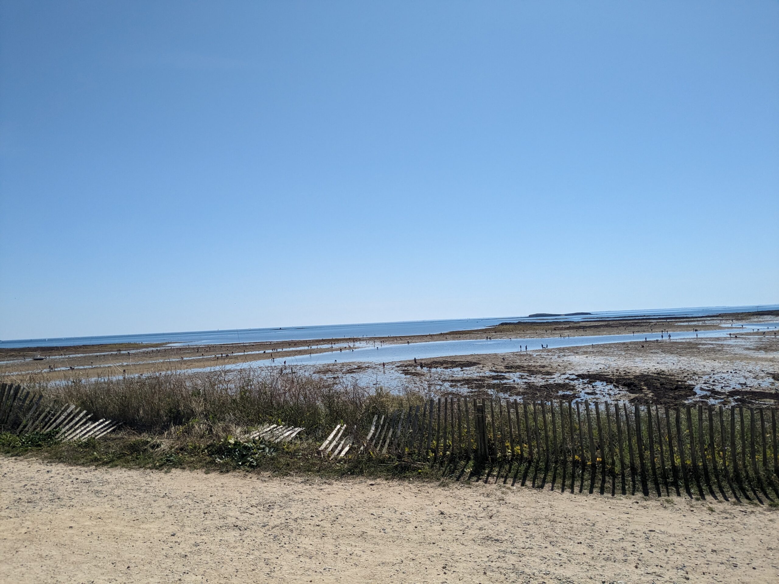 Schon beim Frühstück, mit Baguette vom Bächer mit Geldzählmaschine, scheint die Sonne, der Wetterbericht droht uns mit 30°. Wir starten an der Küste entlang, das ist aber nicht wirklich zielführend, es gibt einfach nicht genug Straßen. Also doch auf der D781 Richtung Carnac, kurz hinter Erdeven stossen wir bei Kerzerho auf die ersten Steinreihen, bei Crucuno steht ein Dolmen im Dorf und ein kleines Stückchen weiter einer im Wald. Dann nähern wir uns Carnac. Hier sieht Maps nur rot! Wir entschließen uns, das Chaos weiträumig zu umgehen und fahren am Strand entlang. Unser nächstes Ziel ist Locmariaquer, wir haben jetzt 30° und eigentlich ist es zu warm für irgendwas, aber wir gehen los, hier gibt es Tumuli und einen kaputten Riesenmenhir, der war mal über 20 m hoch (für 6,-€/Per). Nachdem alles ausgiebig fotografiert ist, versuchen wir unser Glück auf einem Stellplatz am Meer beim Point de Kerpenhir. Es sind noch 4 Plätze frei ganz hinten in der Ecke bei der Entsorgung. Nein danke! Also alles wieder zurück und über Auray nach Arradon. Hier gibt es laut App noch 22 freie Plätze. Um 15:00 erreichen wir den Stellplatz, ach nein, den Camping Municipal, nach kurzer Irritation ist klar, der Stellplatz ist nebenan, nur durch ein Holzzäunchen getrennt. Also flux um die Ecke gefahren, Wobi geparkt und faul sein. Nach dem obligatorischen SonnenuntergangsbeobachtungswartenmitvielrauchenundFliegenverscheuchen 😉 (mit dem Fahrrad) haben wir nochmal auf dem Platz umgeparkt, Jugendliche trugen ihre Zelte ziemlich knapp neben uns um und klimpern mit Flaschen.
