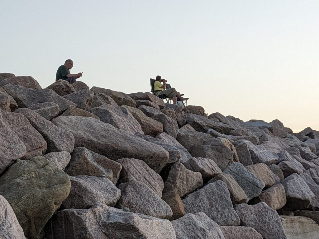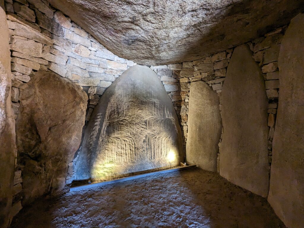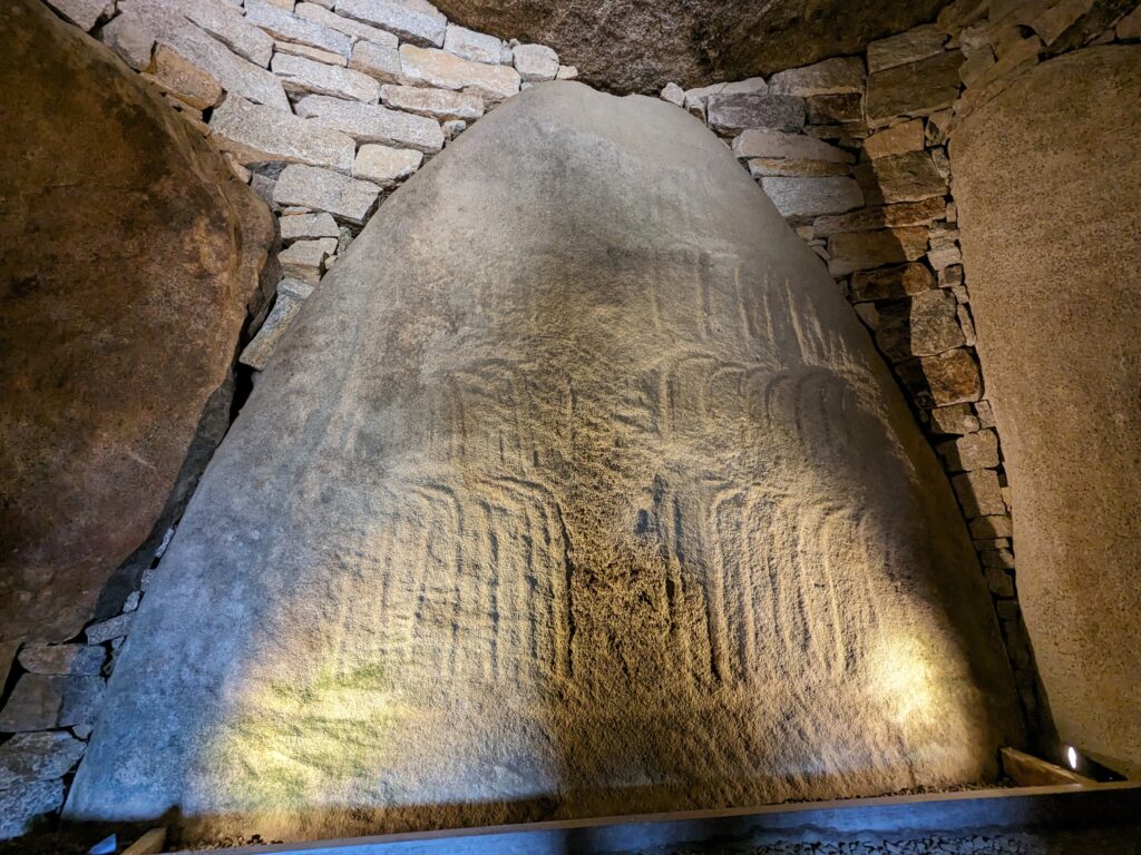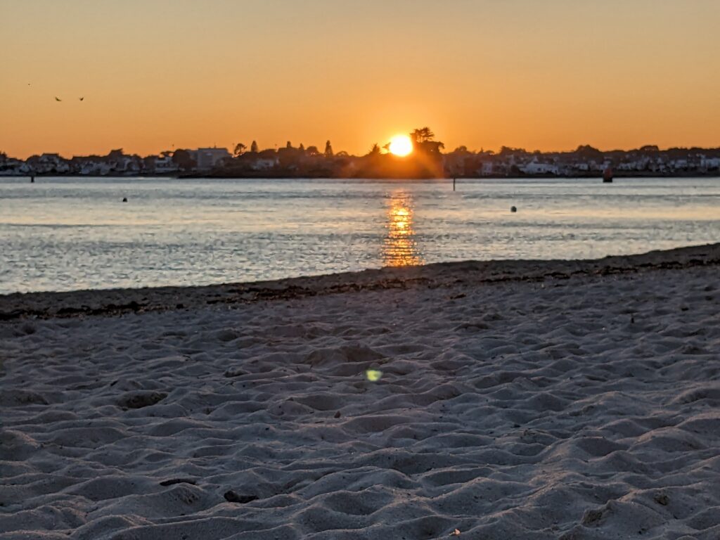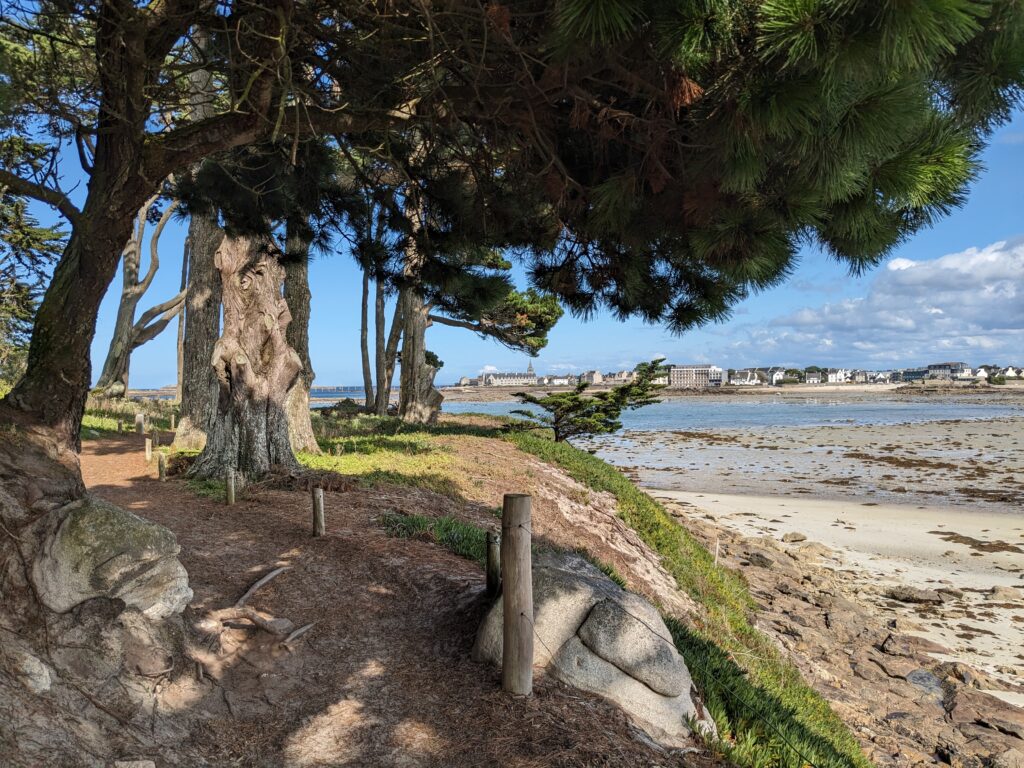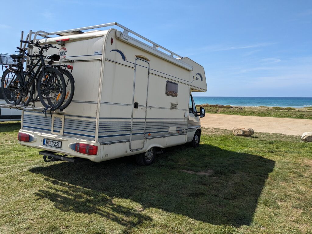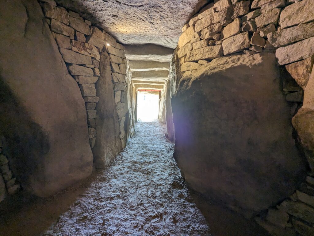 Schon beim Frühstück, mit Baguette vom Bächer mit Geldzählmaschine, scheint die Sonne, der Wetterbericht droht uns mit 30°. Wir starten an der Küste entlang, das ist aber nicht wirklich zielführend, es gibt einfach nicht genug Straßen. Also doch auf der D781 Richtung Carnac, kurz hinter Erdeven stossen wir bei Kerzerho auf die ersten Steinreihen, bei Crucuno steht ein Dolmen im Dorf und ein kleines Stückchen weiter einer im Wald. Dann nähern wir uns Carnac. Hier sieht Maps nur rot! Wir entschließen uns, das Chaos weiträumig zu umgehen und fahren am Strand entlang. Unser nächstes Ziel ist Locmariaquer, wir haben jetzt 30° und eigentlich ist es zu warm für irgendwas, aber wir gehen los, hier gibt es Tumuli und einen kaputten Riesenmenhir, der war mal über 20 m hoch (für 6,-€/Per). Nachdem alles ausgiebig fotografiert ist, versuchen wir unser Glück auf einem Stellplatz am Meer beim Point de Kerpenhir. Es sind noch 4 Plätze frei ganz hinten in der Ecke bei der Entsorgung. Nein danke! Also alles wieder zurück und über Auray nach Arradon. Hier gibt es laut App noch 22 freie Plätze. Um 15:00 erreichen wir den Stellplatz, ach nein, den Camping Municipal, nach kurzer Irritation ist klar, der Stellplatz ist nebenan, nur durch ein Holzzäunchen getrennt. Also flux um die Ecke gefahren, Wobi geparkt und faul sein. Nach dem obligatorischen SonnenuntergangsbeobachtungswartenmitvielrauchenundFliegenverscheuchen 😉 (mit dem Fahrrad) haben wir nochmal auf dem Platz umgeparkt, Jugendliche trugen ihre Zelte ziemlich knapp neben uns um und klimpern mit Flaschen.