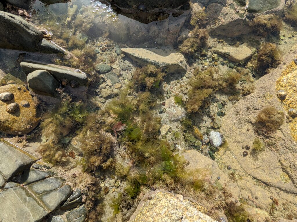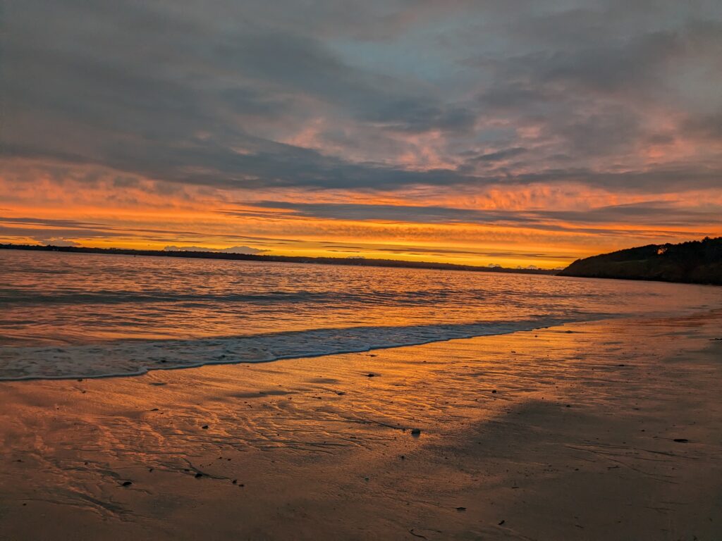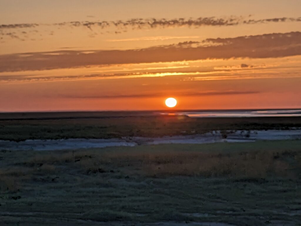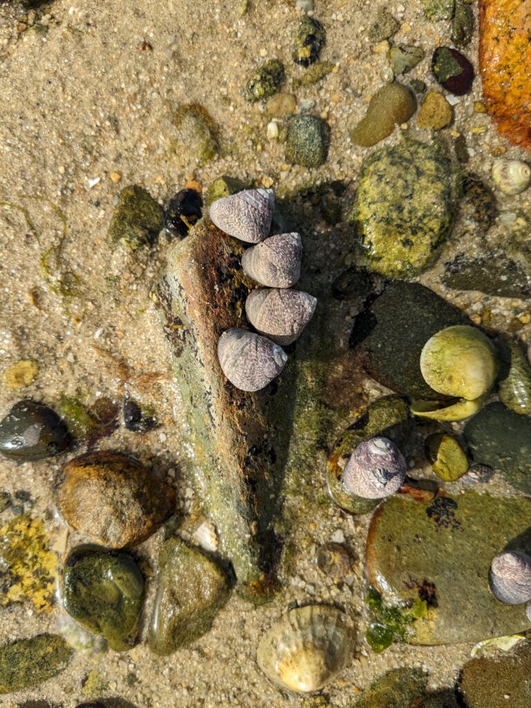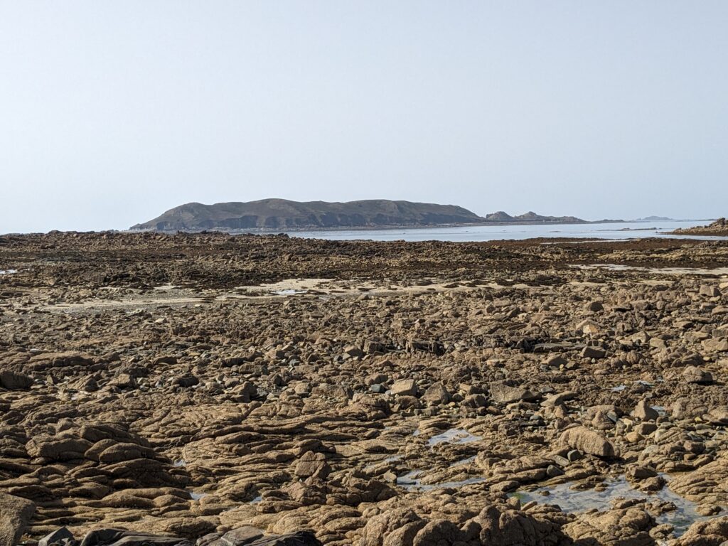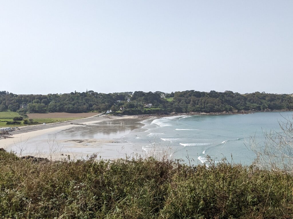 Die Sonne scheint, das Wasser ist da, der Tag fängt gut an. Nach einem Frühstück mit Traumaussicht brechen wir schweren Herzens auf. Aber das nächste Ziel ist ein alt bekanntes und verspricht ähnlich schön zu werden. Zunächst einmal geht es wieder durch Morlaix von hier wollen wir an der Küste entlang Richtung Osten, klappt nicht immer mangels Straßen, aber die eine oder andere schöne Aussicht können wir mitnehmen. Bei Plougasnou ist die Durchfahrt gesperrt (Marché) weiß Google nicht, also suchen wir eine Alternative und landen in St.-Jean du Diogt. Hier gibt es eine schöne Kirche. Danach fahren wir auf der D64A und werden mit Traumausichen und einigen Parkmöglichkeiten für Womos belohnt. Die Côte de Granit Rose lassen wir ganz bewusst wieder aus. Den Touristenrummel müssen wir uns nicht antun. Zwischendurch gibt es noch ein wenig Gas für die Gasflasche, ist nicht so oft hier zu bekommen. Um 15:30 erreichen wir nach unzähligen Kreiseln den Campingplatz „Les 7 Iles“ in Trélévern. Der ist zumindest in der ersten Reihe auch jetzt noch gut gefüllt. Wir bekommen aber noch ein Plätzchen (23,00€) und da gerade Ebbe ist machen wir erst einmal einen Spaziergang, wir finden Meeresschnecken, Seepocken, Seetang und sogar Austern, aber Ralf will davon partout nichts zum Abendessen. Später kommt das Wasser zurück und alle warten auf den Sonnenuntergang.