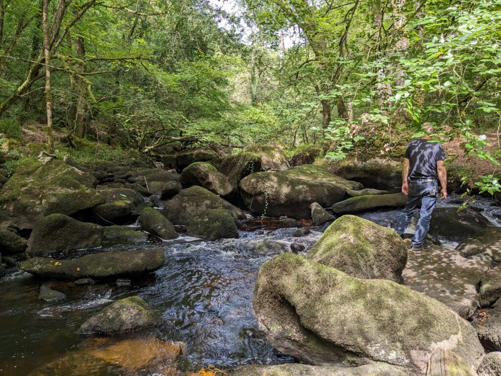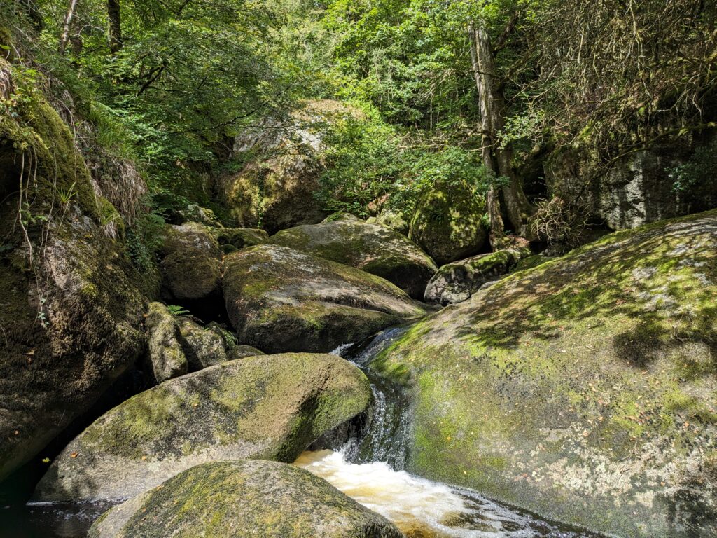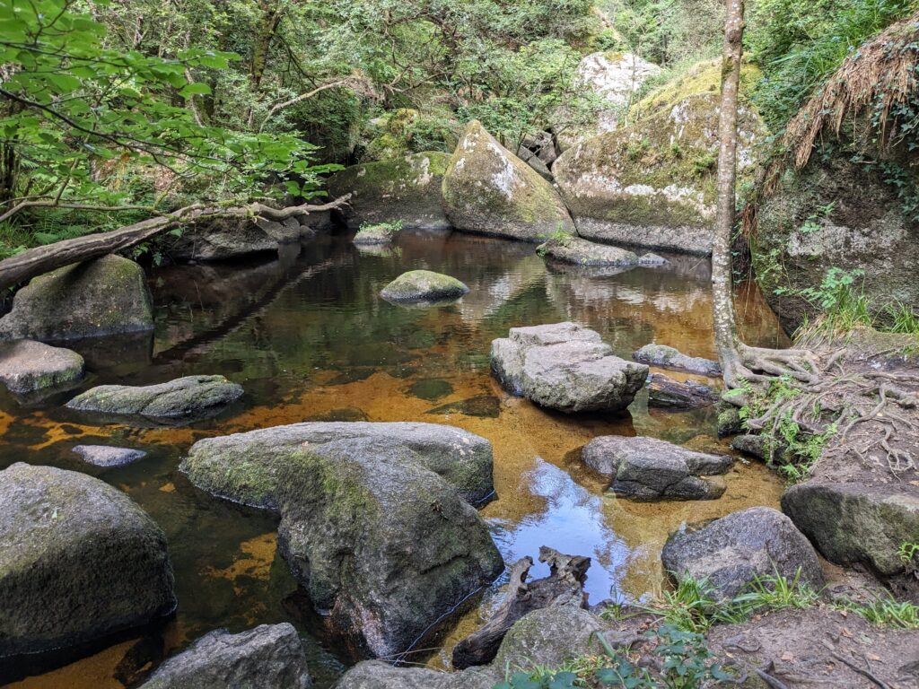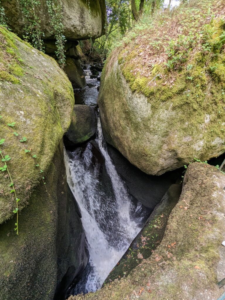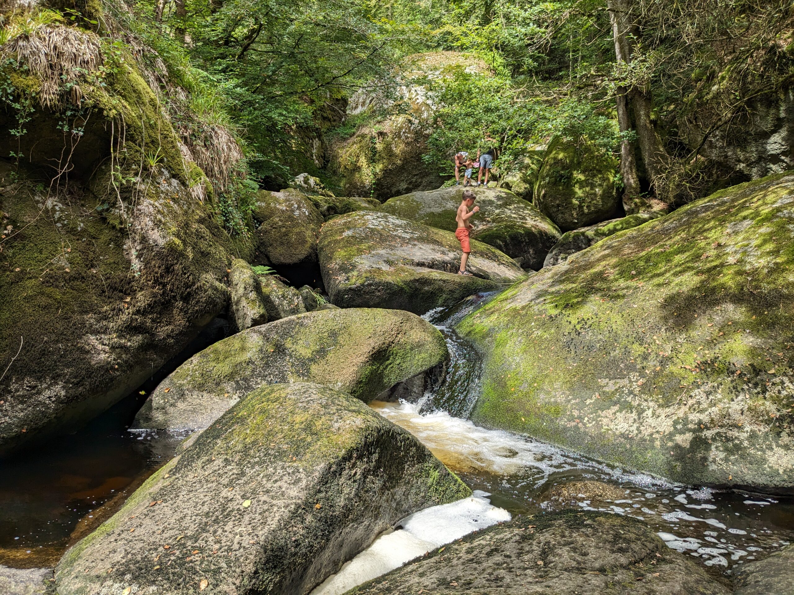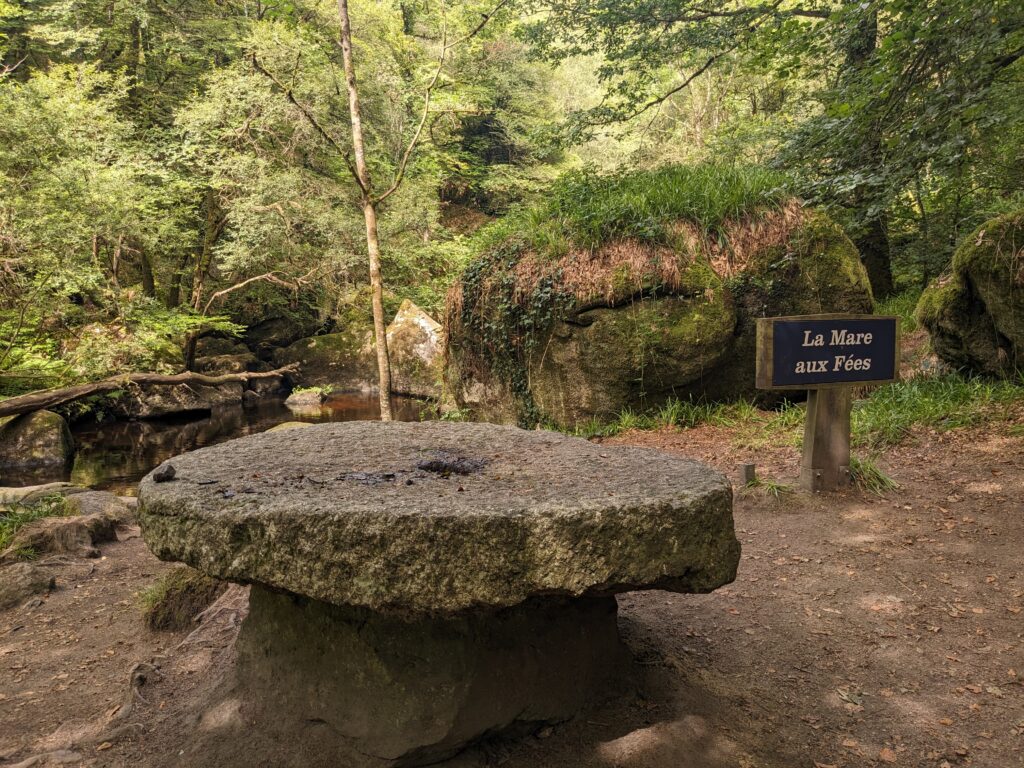28,70 bezahlen für ein matschiges Eckchen zwischen den Camperfamilien. Immerhin sind die Duschen klasse. Foto habe ich vergessen. Am Nachmittag machen wir uns auf zum Gouffrede de Houlgoat ein eine nette kleine Wanderung am Rivièr d’Argent. Hier finden wir auch „La Mare aux Fees“, wo sich angeblich die Feen gern ihr goldenes Haar im Mondschein waschen. Zum Abschluß gibt es noch einen kleinen Cache, dann geht es zurück zum Wohnmobil. Zum Abendessen gibt es einen kurzen Regenguß und in der Nacht ein heftiges Gewitter.
