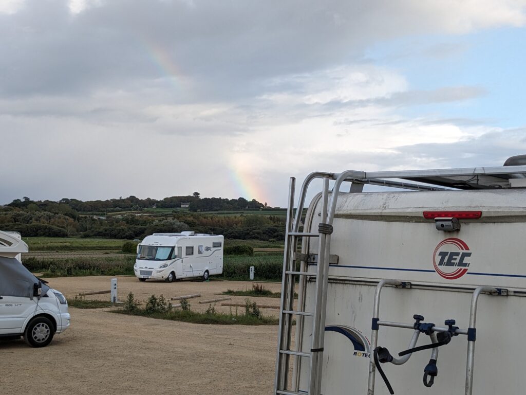 7:30, wir sind früh wach, haben aber gut geschlafen. Um 9:20 starten wir bei gutem Wetter Richtung Normandie. Ich fahre auch wieder ein Stück. Und passiere meine erste Mautstation. Das ist eng! Sehr eng! ? Bei der zweiten muß ich warum auch immer quer rüber nach ganz links ? Dann sind da auch noch ständig Berge. Ich hasse es Berge mit Schaltungswagen zu fahren. Nach dem Tanken übernimmt Ralf dann wieder. Toll, jetzt sind die Mautstationen natürlich breiter(wirklich) und Mann, sprich Ralf kann immer ganz rechts durch und freut sich wie ein Schneekönig, dass unser Bip&Go funktioniert. Leider funktioniert Mittagessen nicht. Die Parkplätze sind alle picke packe voll. Erst um kurz vor 14:00 gibt es endlich was zu Beißen. Dann geht es über den oder die Point de Normandie. Wir haben keine große Lust mehr zu fahren, also versuchen wir es auf einem Stellpatz von Pass’Étapes in Lion-sur-Mer, wie der Name schon sagt, am Meer. Schön ist was anderes. Sardinen in der Dose haben mehr Platz und zum Teil sind sie so direkt an der Entsorgung, das es zum Himmel stinkt???. Wir Ver- und Entsorgen fix und ergreifen die Flucht. In Caen am D-day Memorial ergattern wir um 17:00 den vorletzten Platz auf dem Pass’Étapes Stellplatz und starten noch zu einer kurzen Besichtigung der Stadt, leider waren Burg und Kirche bereits geschlossen. Dann Abendessen und noch kurz in den Park der la Colline Oiseaux. Und vorbei am Britisch Memorial Garden und dem D-day Memorial zurück zum Wobi. 440 km sind wir heute gefahren.