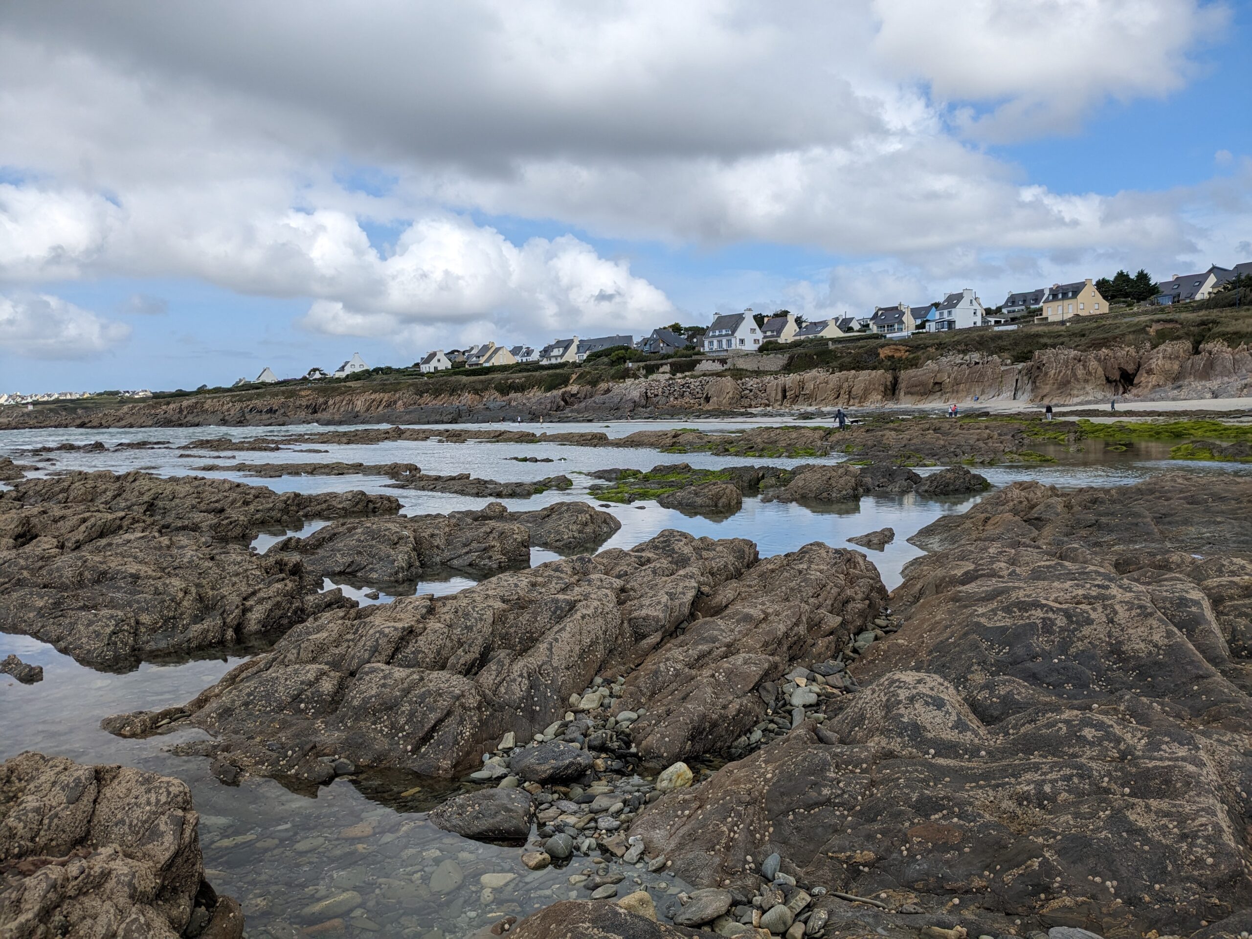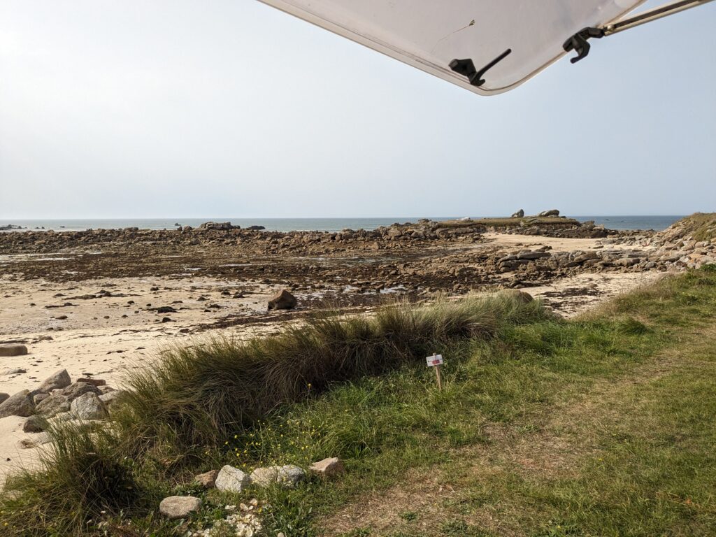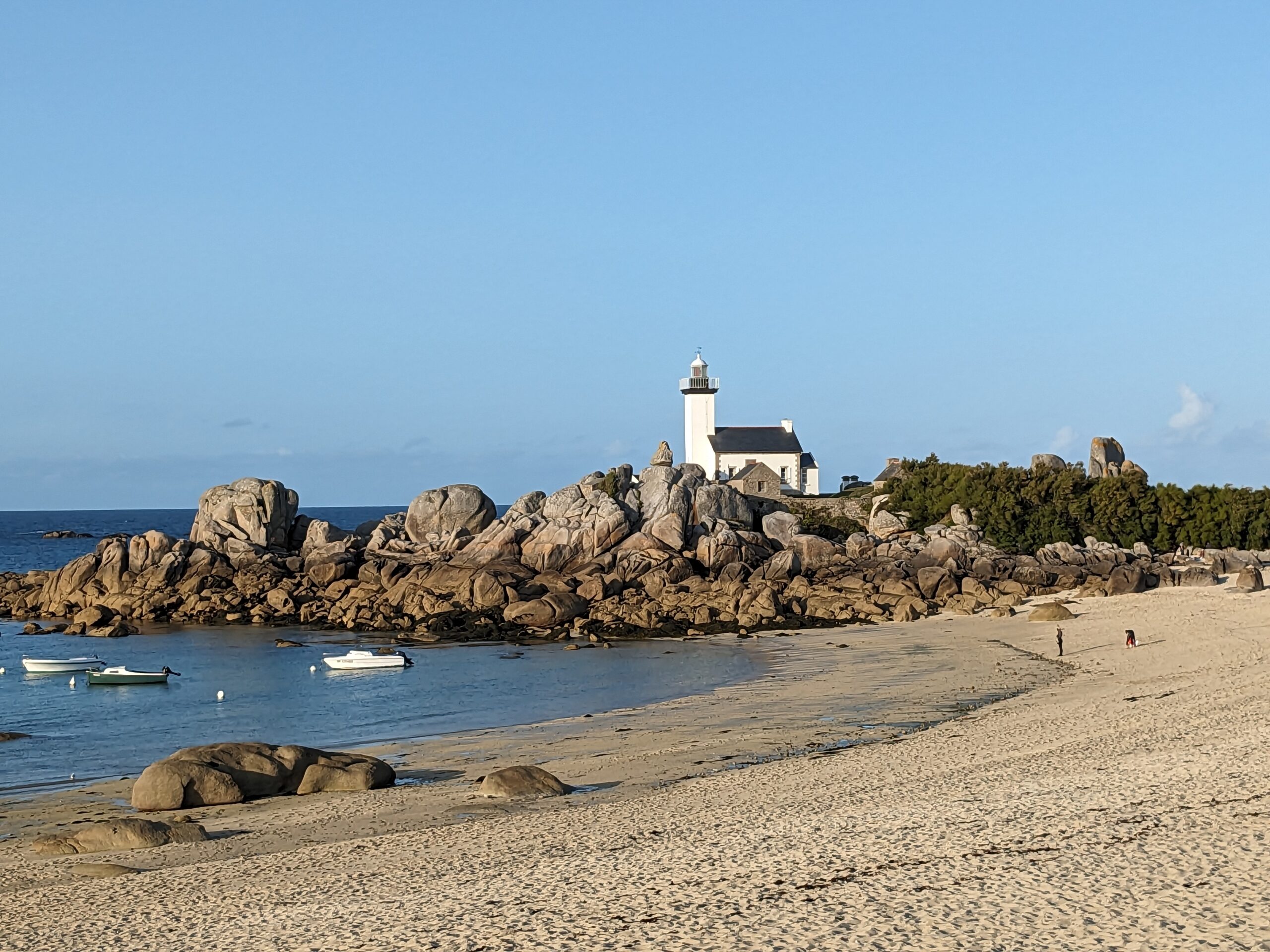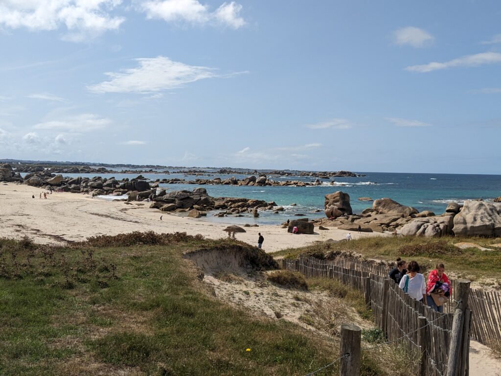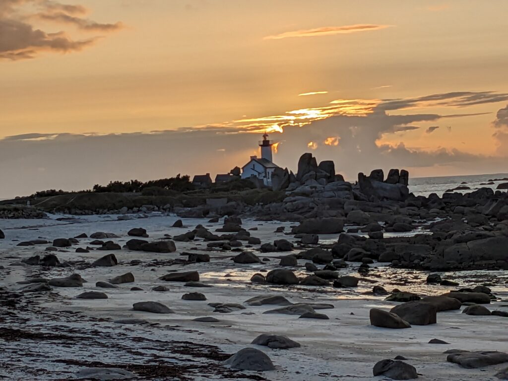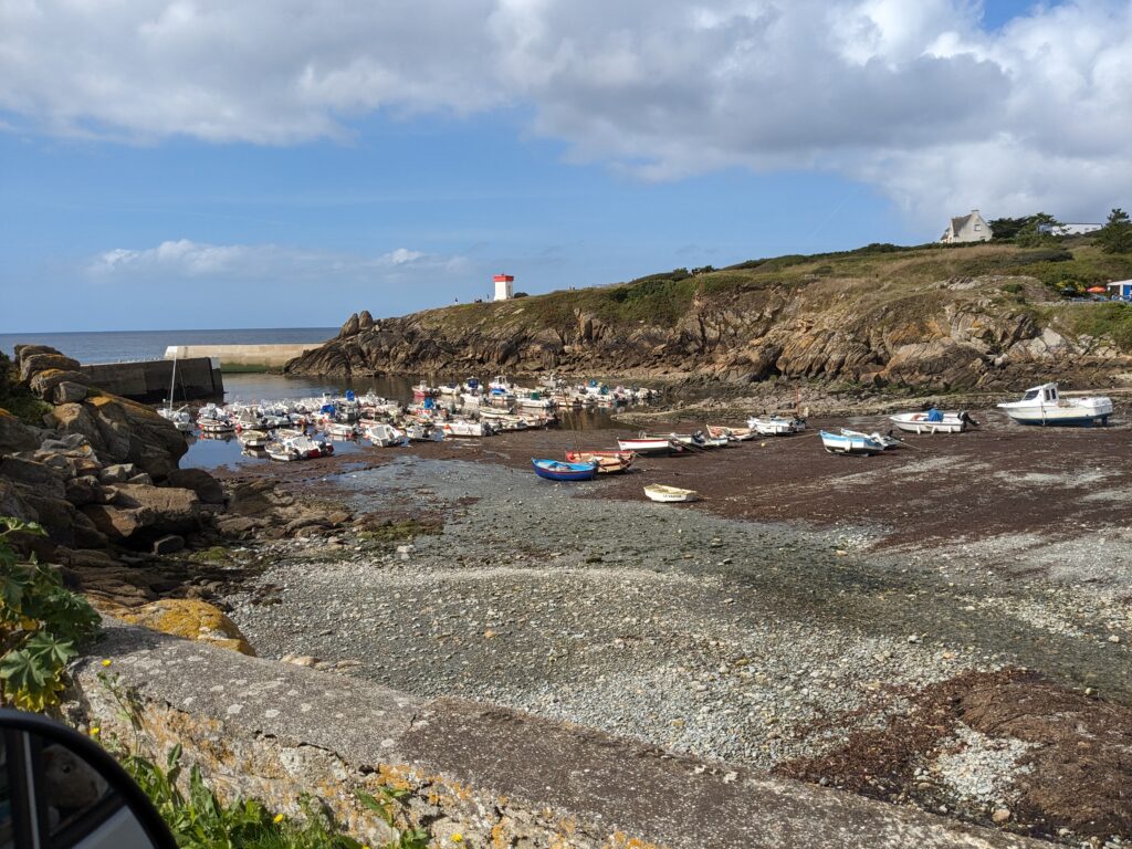 Das Wetter ist prima und um 10:30 starten wir. Ralf hat einen schönen Camping municipal bei Poulfoën direkt am Meer gefunden, ca. 20 km sind es bis dort. Als wir allerdings dort eintreffen, ist es kurz nach 11:00 und der wirklich freundliche Platzwart erklärt uns, dass jetzt bis 15:00 Mittagspause ist, wir können auf dem Parkplatz warten, aber er hat auch viele Reservierungen. Ist zwar sehr freundlich, aber nicht hilfreich. Wir können ja nicht über 3 Stunden warten, um dann doch nur einen schiefen Platz in der 2. Reihe zu bekommen (und die sind wirklich schief!). Also beschließen wir die Küste weiter zu fahren, grobe Richtung Brest. Da wir kein frisches Baguette haben, stoppen wir am nächsten Intermaché. Hier gibt es Stellplätze, eine Entsorgung und einen Waschsalon. Aber so verzweifelt (oder dreckig?) sind wir noch nicht. Also weiter. Nächster Stopp, Mittag an einer Traumbucht mit Traumstrand. Irgendwann entdecken wir bei Maps einen Air der Campingcar bei Meneham. Irgendetwas klingelt da bei mir. Meneham, Museumsdorf. Wir fahren hin (nochmal 21 km) und die Entscheidung ist super. Der Stellplatz ist gut, die Küste super und Meneham niedlich. Wir verbringen einen schönen Nachmittag, lösen einen Labcache (Brunnen heißt puits). Loggen den Bonus und einen Tradi, dann zurück zum Wobi. Da hat sich ein Kastenwagen direkt neben uns gestellt, obwohl noch überall massig Platz ist. Also parkt Ralf demonstrativ um. Nach dem Abendessen satteln wir die Räder und fahren zum Phare de Pontueval. Hier lassen wir die Räder stehen und laufen 1,5 km zum Canadian-Point, um noch einen weiteren Labcache zu lösen. Dann die 1,5 km wieder zurück. Der Sonnenuntergang ist nicht wirklich spektakulär. Also geht es zurück zum Stellplatz. Die Bilanz heute ca. 41 Km gen Westen, 2 Labcaches, 1 Bonus, 1 Tradi, viele tolle Aussichten und 13702 Schritte. Na, dann Gute Nacht.