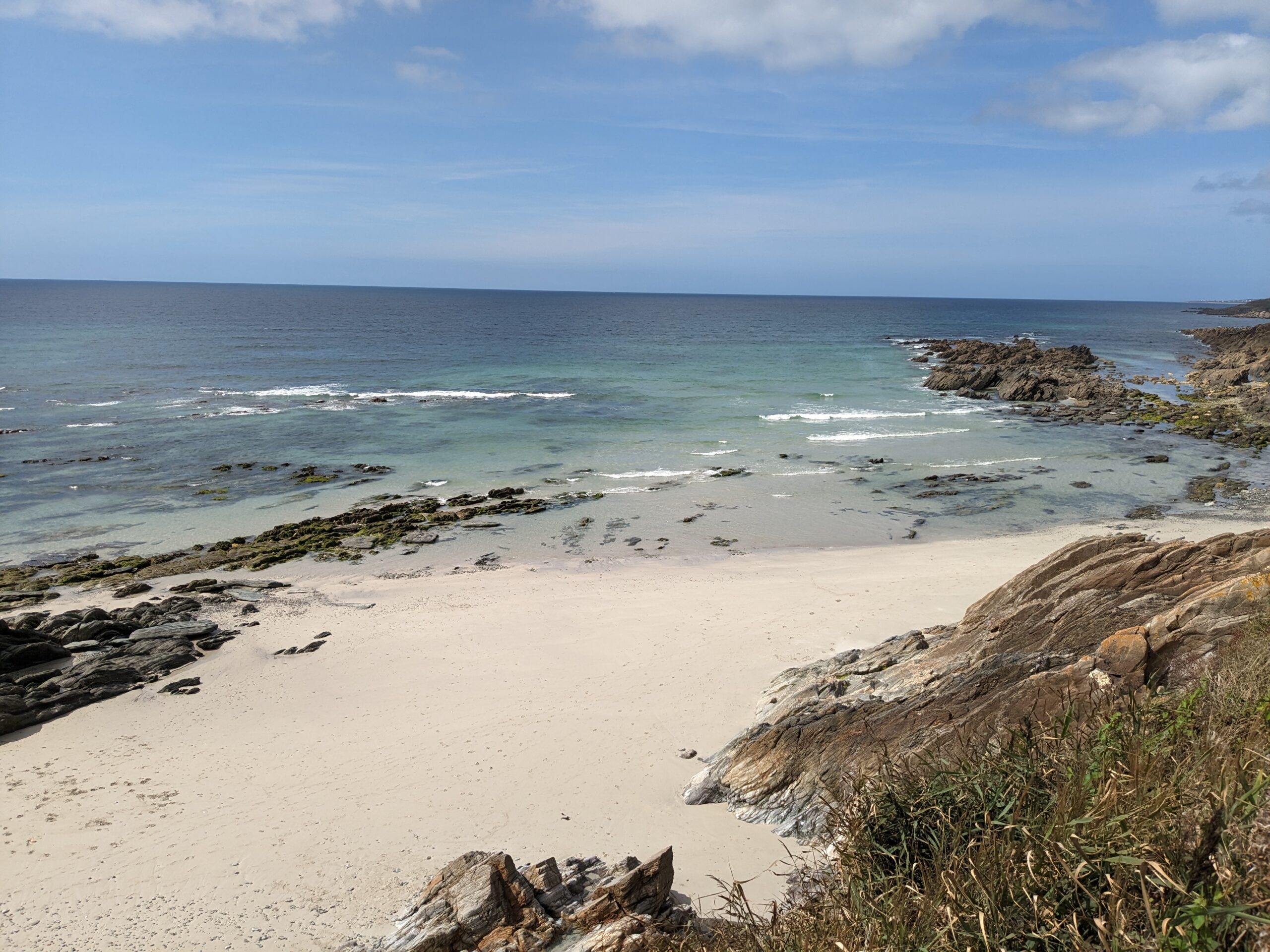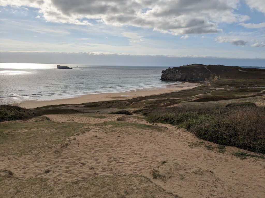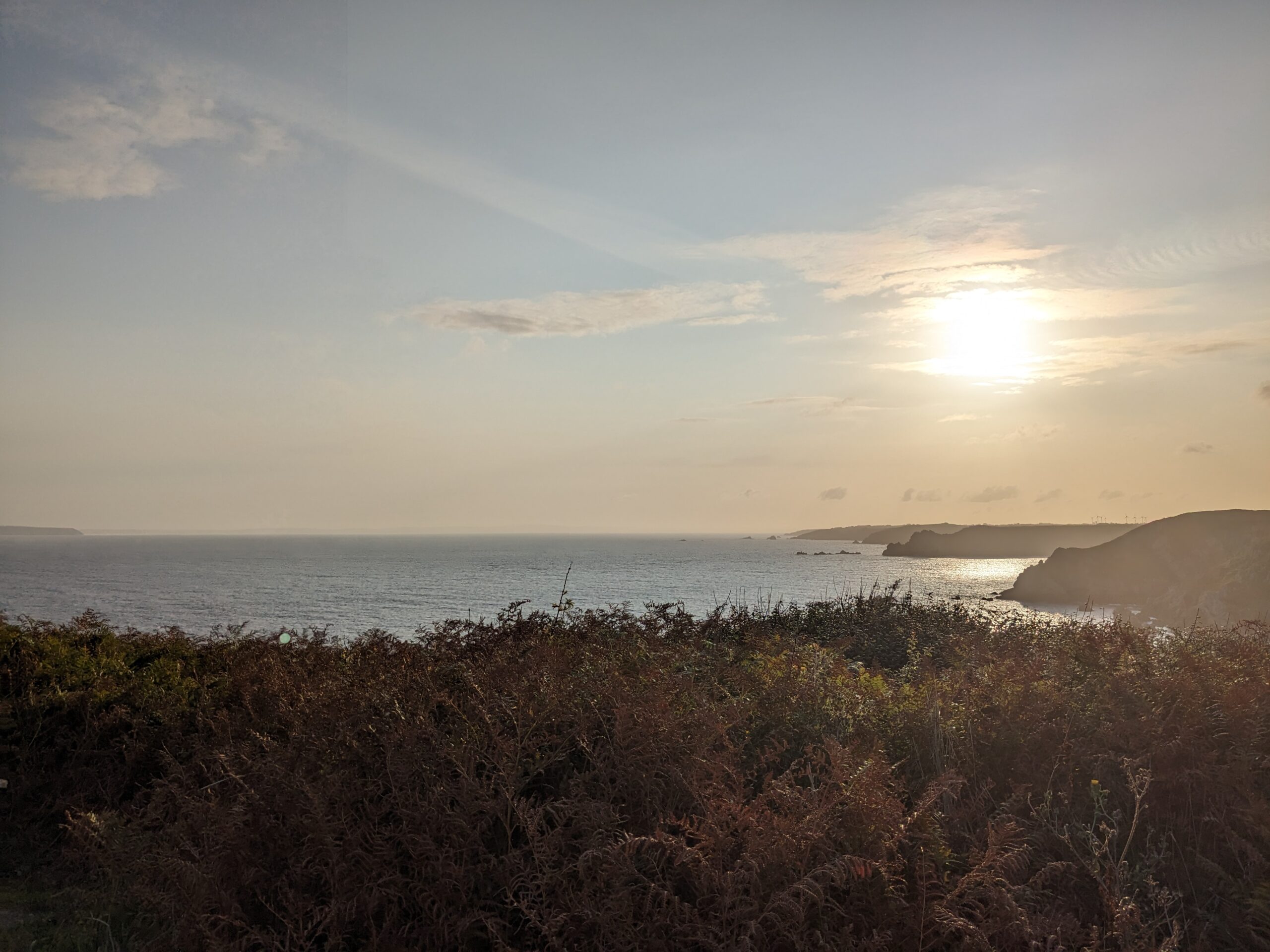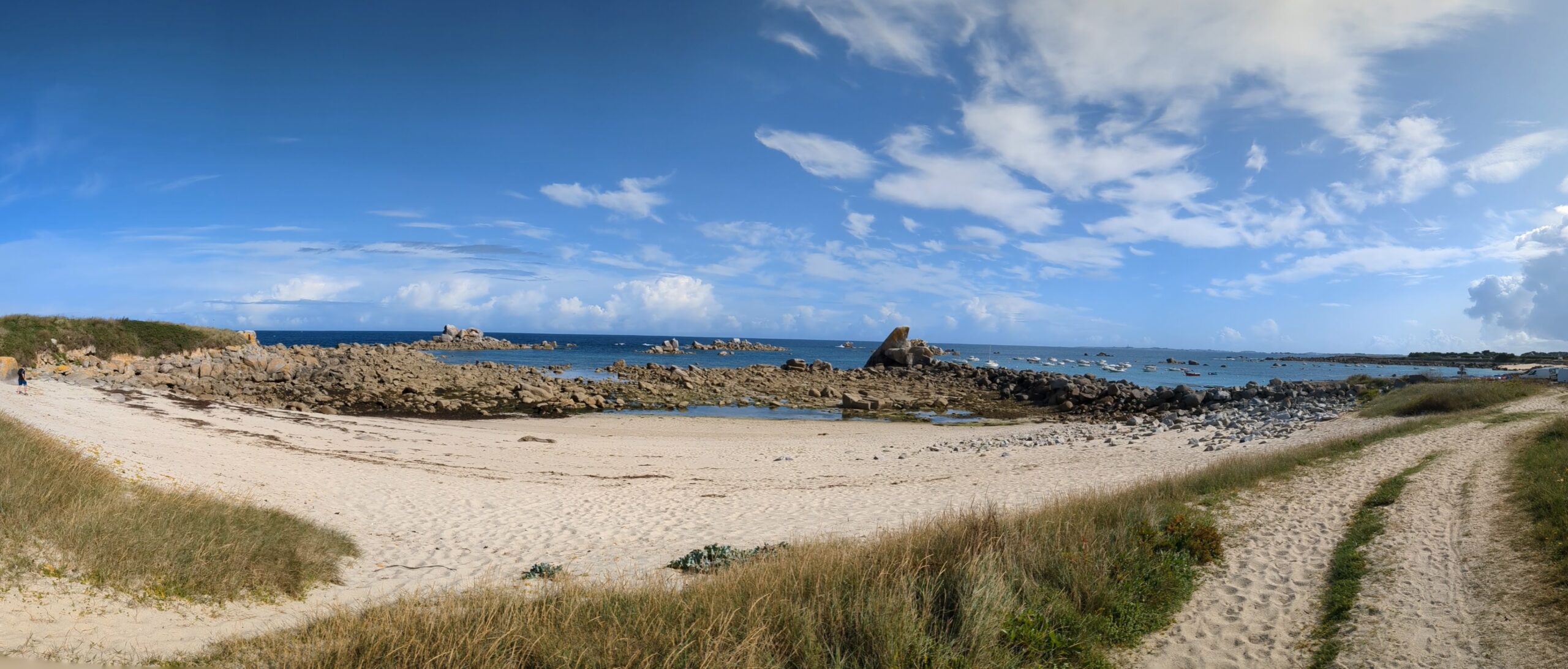 Das Wetter ist prima und um 10:30 starten wir. Ralf hat einen schönen Camping municipal bei Poulfoën direkt am Meer gefunden, ca. 20 km sind es bis dort. Als wir allerdings dort eintreffen, ist es kurz nach 11:00 und der wirklich freundliche Platzwart erklärt uns, dass jetzt bis 15:00 Mittagspause ist, wir können auf dem Parkplatz warten, aber er hat auch viele Reservierungen. Ist zwar sehr freundlich, aber nicht hilfreich. Wir können ja nicht über 3 Stunden warten, um dann doch nur einen schiefen Platz in der 2. Reihe zu bekommen (und die sind wirklich schief!). Also beschließen wir die Küste weiter zu fahren, grobe Richtung Brest. Da wir kein frisches Baguette haben, stoppen wir am nächsten Intermaché. Hier gibt es Stellplätze, eine Entsorgung und einen Waschsalon. Aber so verzweifelt (oder dreckig?) sind wir noch nicht. Also weiter. Nächster Stopp, Mittag an einer Traumbucht mit Traumstrand. Irgendwann entdecken wir bei Maps einen Air der Campingcar bei Meneham. Irgendetwas klingelt da bei mir. Meneham, Museumsdorf. Wir fahren hin (nochmal 21 km) und die Entscheidung ist super. Der Stellplatz ist gut, die Küste super und Meneham niedlich. Wir verbringen einen schönen Nachmittag, lösen einen Labcache (Brunnen heißt puits). Loggen den Bonus und einen Tradi, dann zurück zum Wobi. Da hat sich ein Kastenwagen direkt neben uns gestellt, obwohl noch überall massig Platz ist. Also parkt Ralf demonstrativ um. Nach dem Abendessen satteln wir die Räder und fahren zum Phare de Pontueval. Hier lassen wir die Räder stehen und laufen 1,5 km zum Canadian-Point, um noch einen weiteren Labcache zu lösen. Dann die 1,5 km wieder zurück. Der Sonnenuntergang ist nicht wirklich spektakulär. Also geht es zurück zum Stellplatz. Die Bilanz heute ca. 41 Km gen Westen, 2 Labcaches, 1 Bonus, 1 Tradi, viele tolle Aussichten und 13702 Schritte. Na, dann Gute Nacht.