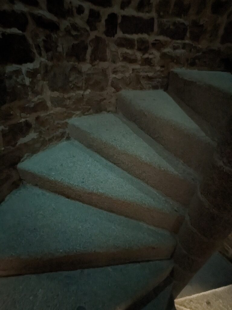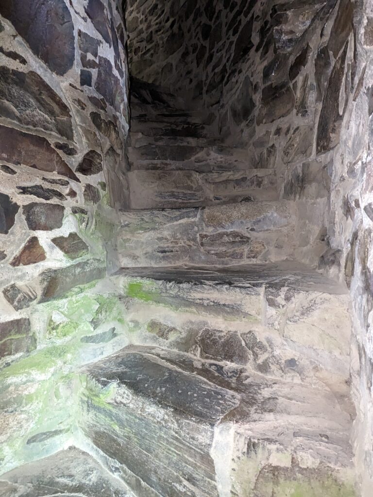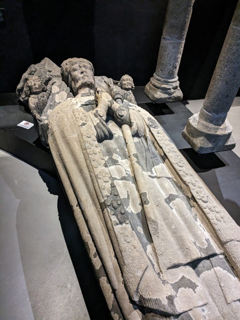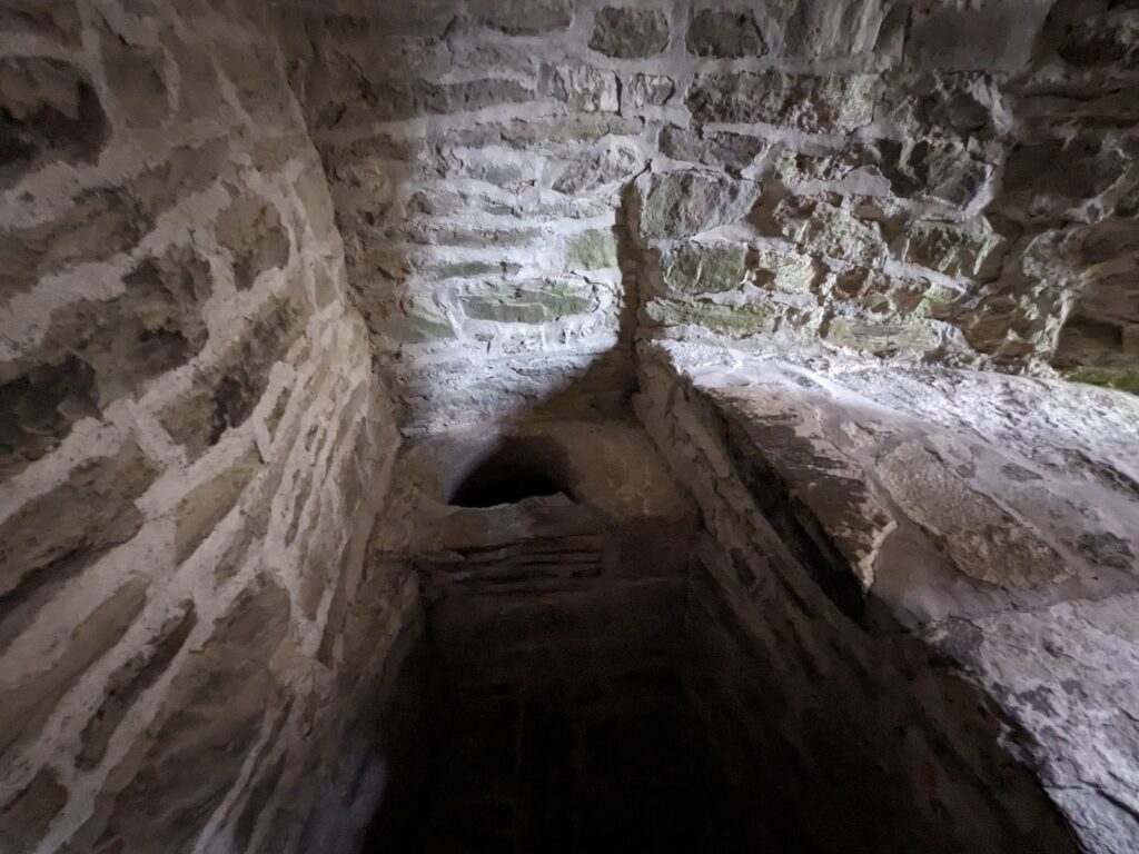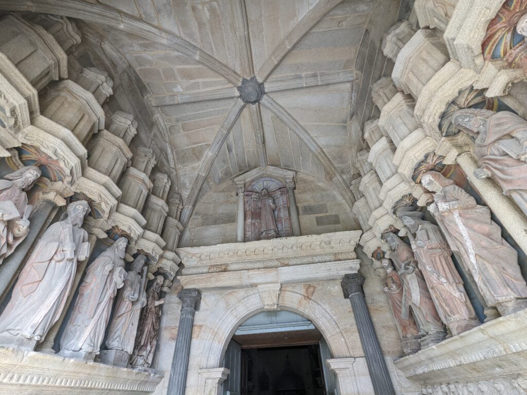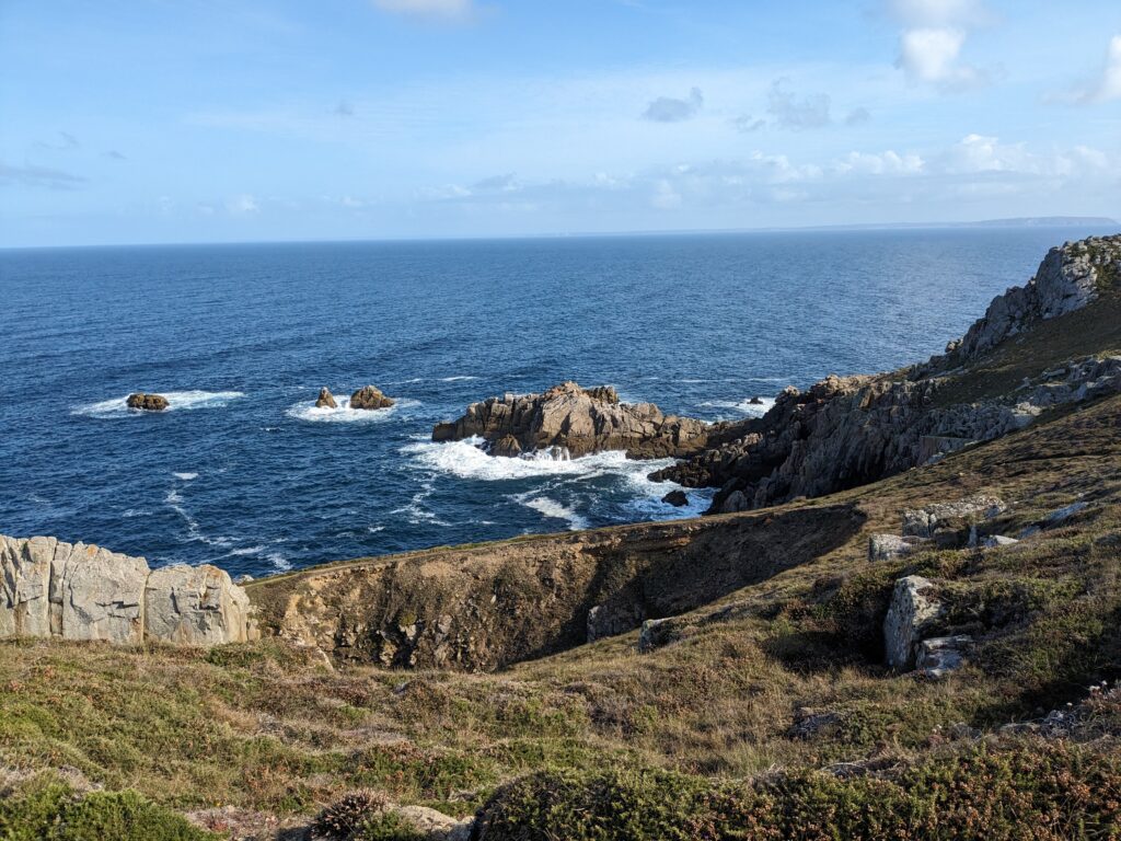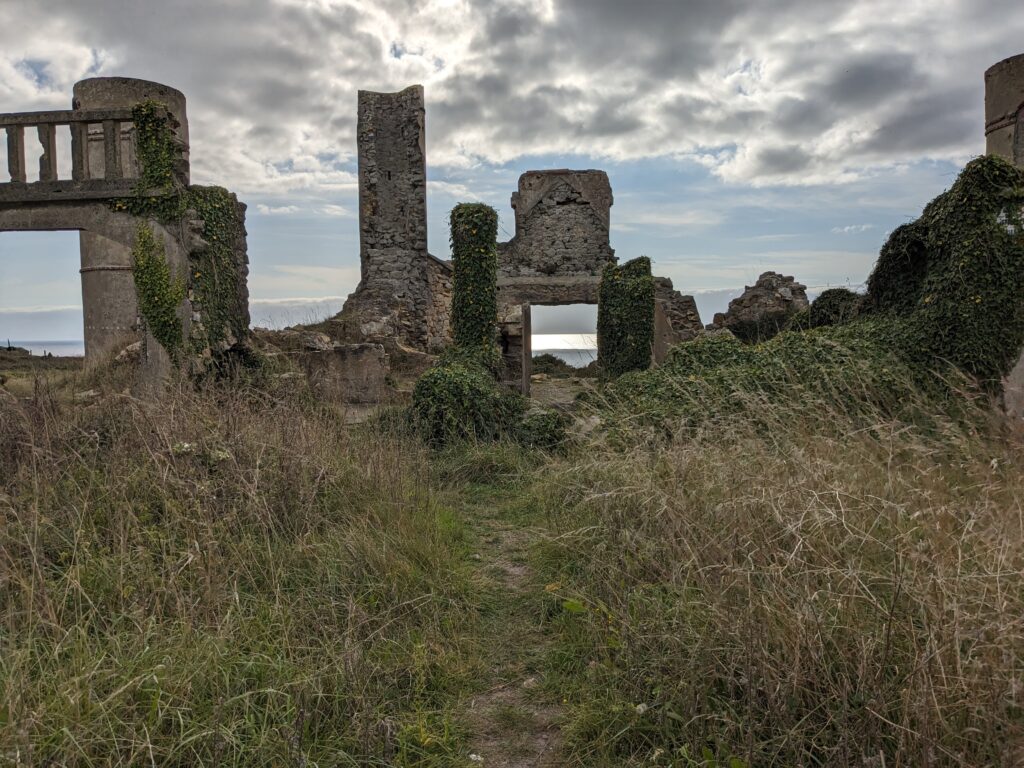 Das Wetter ist nach wie vor wolkig, aber wieder trocken. Nach einem Frühstück mit Huhn, geht es zur Crozon Halbinsel. Aber als Erstes gibt es noch einen kleinen Leuchtturm. Den Phare Petit Minou. Als kleinen „Beifang“ gibt es 2 Caches, bevor es bergan zurück zum Wobi geht. Dann müssen wir durch Brest. Das einzig positive an Brest ist, wir können hier Gas tanken und Baguette kaufen. Ansonsten: bloß weg. In Plougastel-Daoulas machen wir einen kurzen Stopp, um uns eine Calvarie anzusehen, dann geht es weiter, pünktlich zum Kaffee erreichen wir die Abbaye Landevennec. Eine Ruine, die wir uns ansehen wollen, dank Google ist ein Parkplatz schnell gefunden. Hier gibt es Espresso aus der Akkumaschine und Himbeertörtchen. Dann stapfen wir los und stehen nach ein paar  Minuten in einer riesigen modernen Kirche, von Ruinen keine Spur. Das hier ist das neue Kloster, das alte, sprich die Ruine ist 10 Minuten den Hügel runter. Das verursacht Ralf mächtig schlechte Laune, den Hügel runter heißt später Hügel rauf. Wir machen es trotzdem und betrachten uns das Museum und die Ruine. Dann unter Schnaufen und Murren zurück zum Wobi und Abfahrt. Bei Camaret-sur-Mer gibt es einen Stellplatz ohne Strom aber mit „Steingarten“ (die Steinreihen von Lagatjar sind direkt vor der Tür) für 12.00€. Aber bevor wir zum gemütlichen Teil übergehen, geht es noch auf die nahe Klippe und zu 2 Caches.