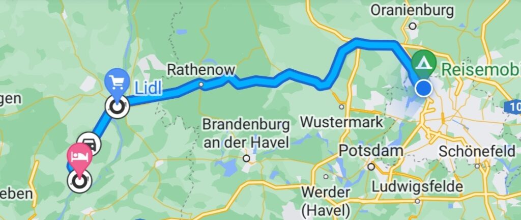 Die Nacht war erstaunlich ruhig und wir schlafen fast bis 9 Uhr. Gegen 10:30 starten wir und fahren über die überwiegend leere B188 Richtung Westen. Döner-Zwischenstopp in Tangermünde und Kartoffel-Wintervorratseinkauf bei Gifhorn. Am Womo-Stellplatz in Gifhorn wird noch entsorgt. Gegen 18 Uhr ist das Womo geparkt und wir liegen auf dem Sofa.