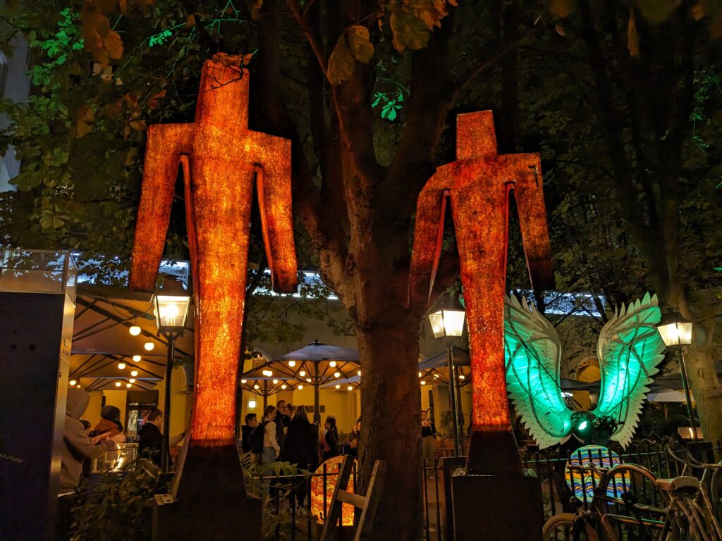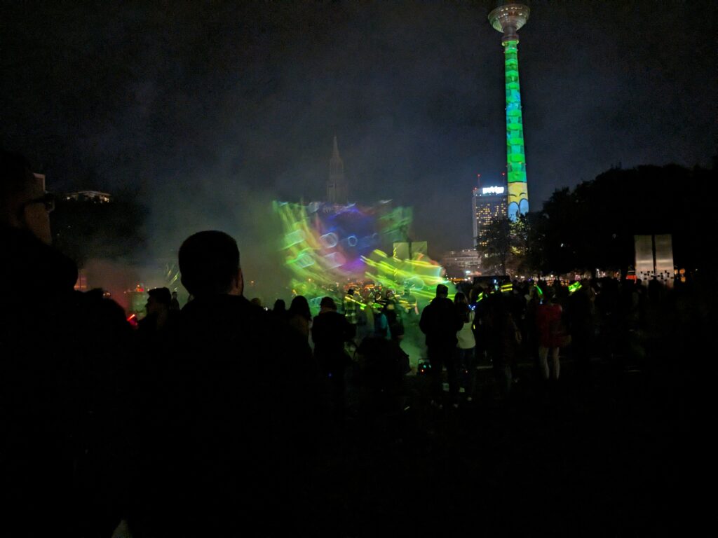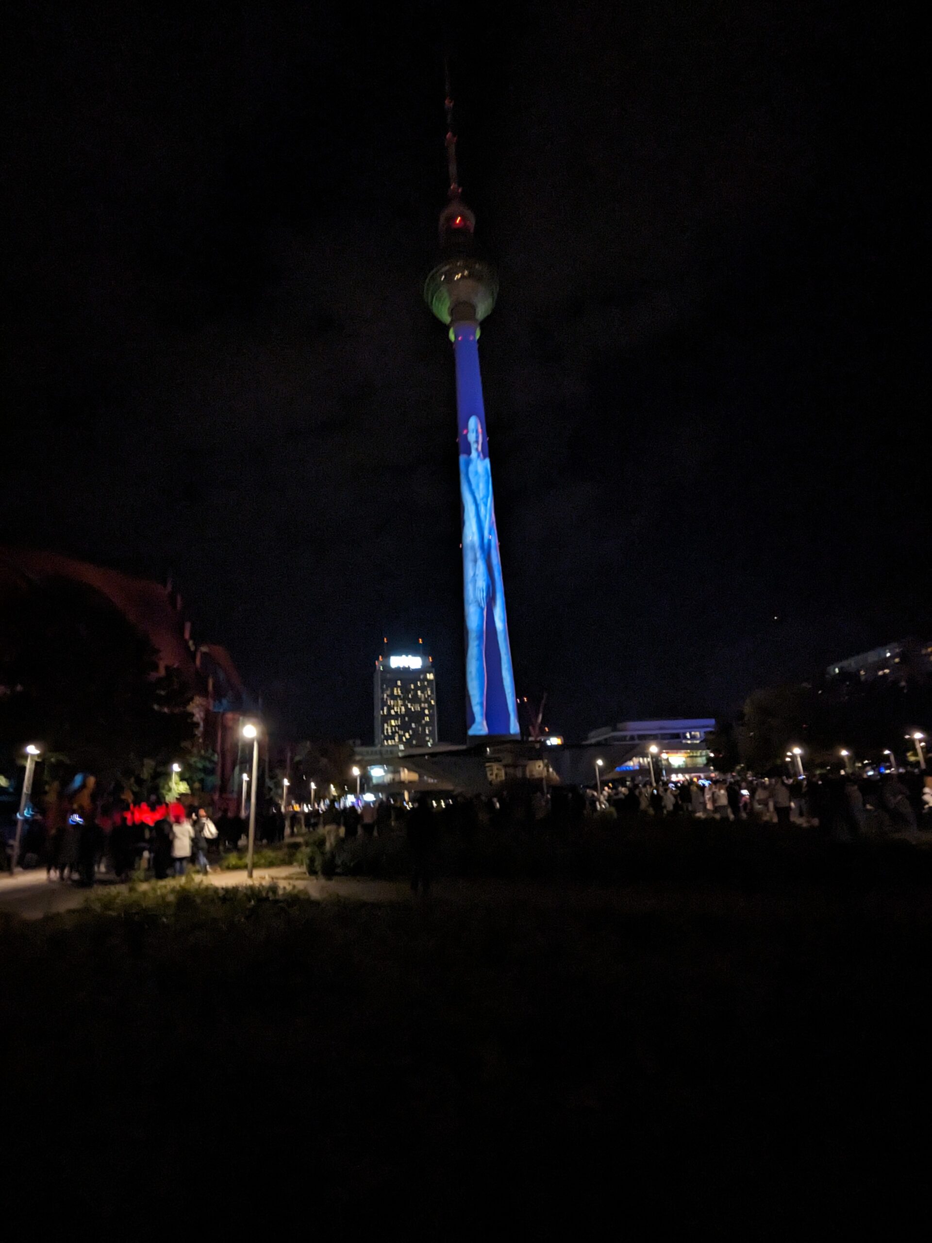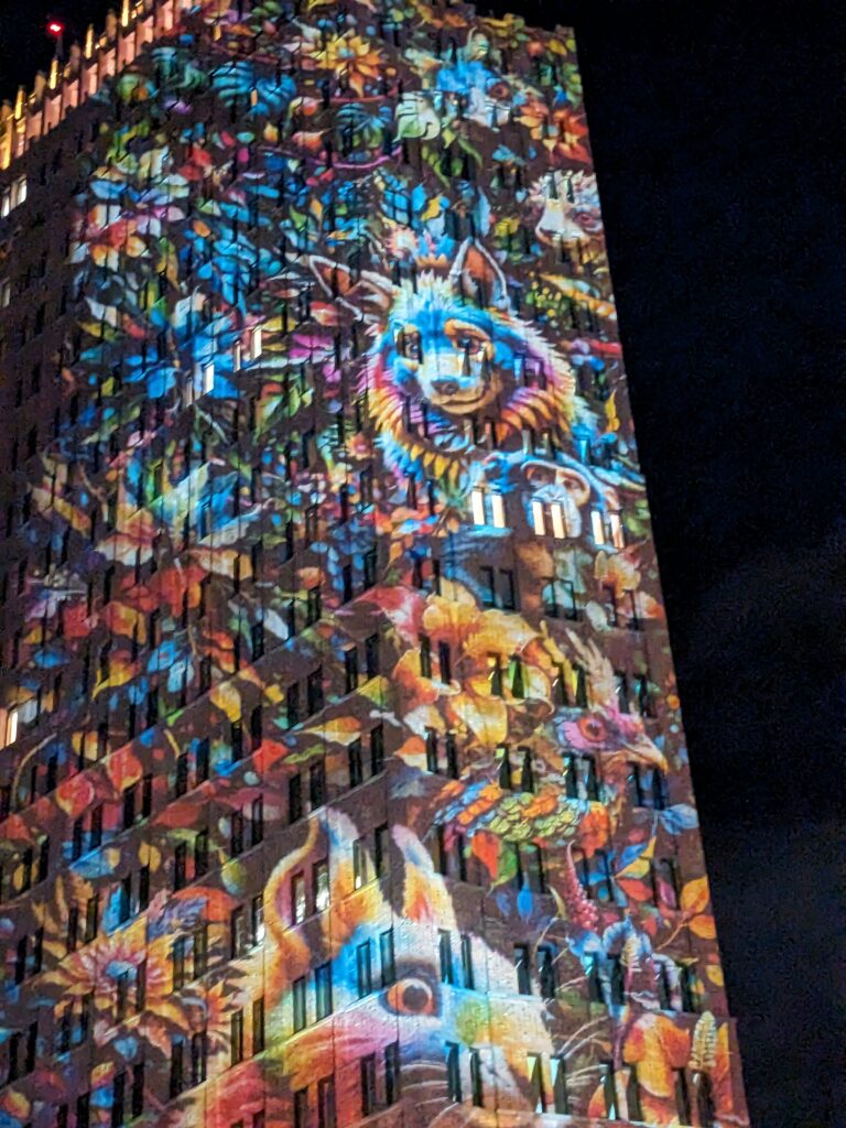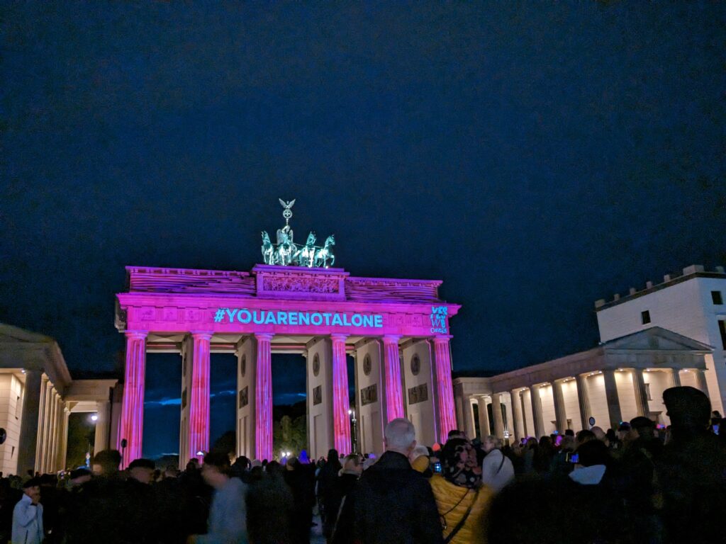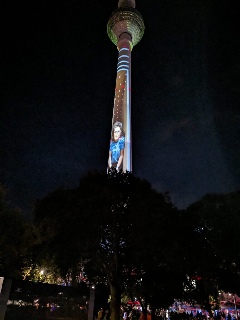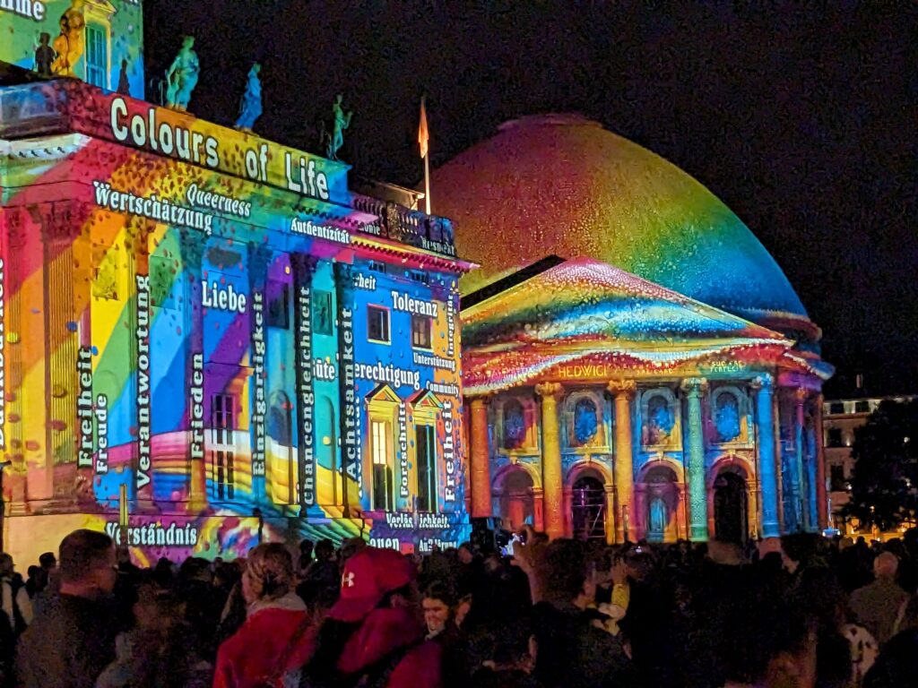 Nach einer sehr ruhigen Nacht sind wir um 11 Uhr startklar, diesmal hat die automatische Reinigung des Bongos im Camperclean auch gut funktioniert. Gegen 15 Uhr kommen wir nach der Umleitung der Umleitung in der Umleitung und Backfisch mit Kartoffelsalat in Ermangelung von auswärtiger Futter-Aufnahme auf dem Stellplatz in Berlin Tegel an. Nach einem kurzen Nickerchen, Ralf putzt derweil die Scheiben, geht es los, 15 Min. zu Fuß zum Bahnhof Tegel, dann mit dem S-Bahn 40 Minuten zum Bahnhof Friederichsstraße. Kurzer Stopp beim Chinamann und auf geht es zum „Festival of Lights‘ 1. Stopp Brandenburger Tor.