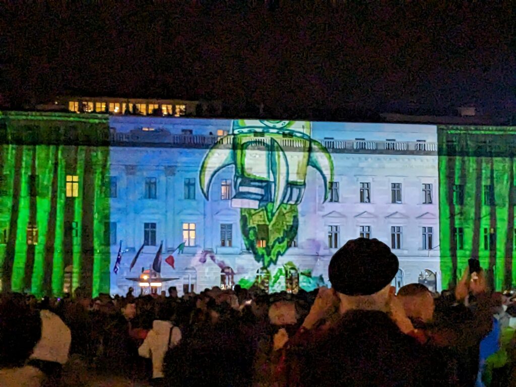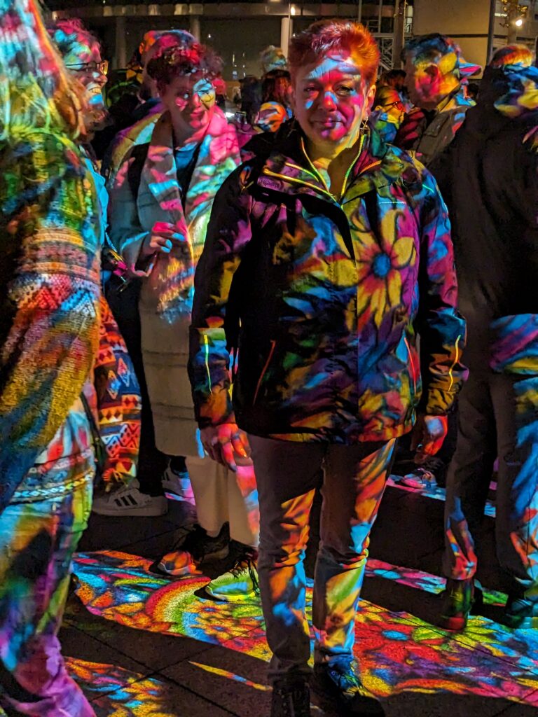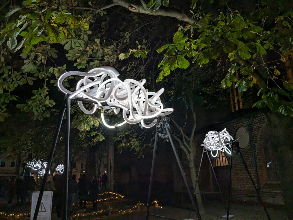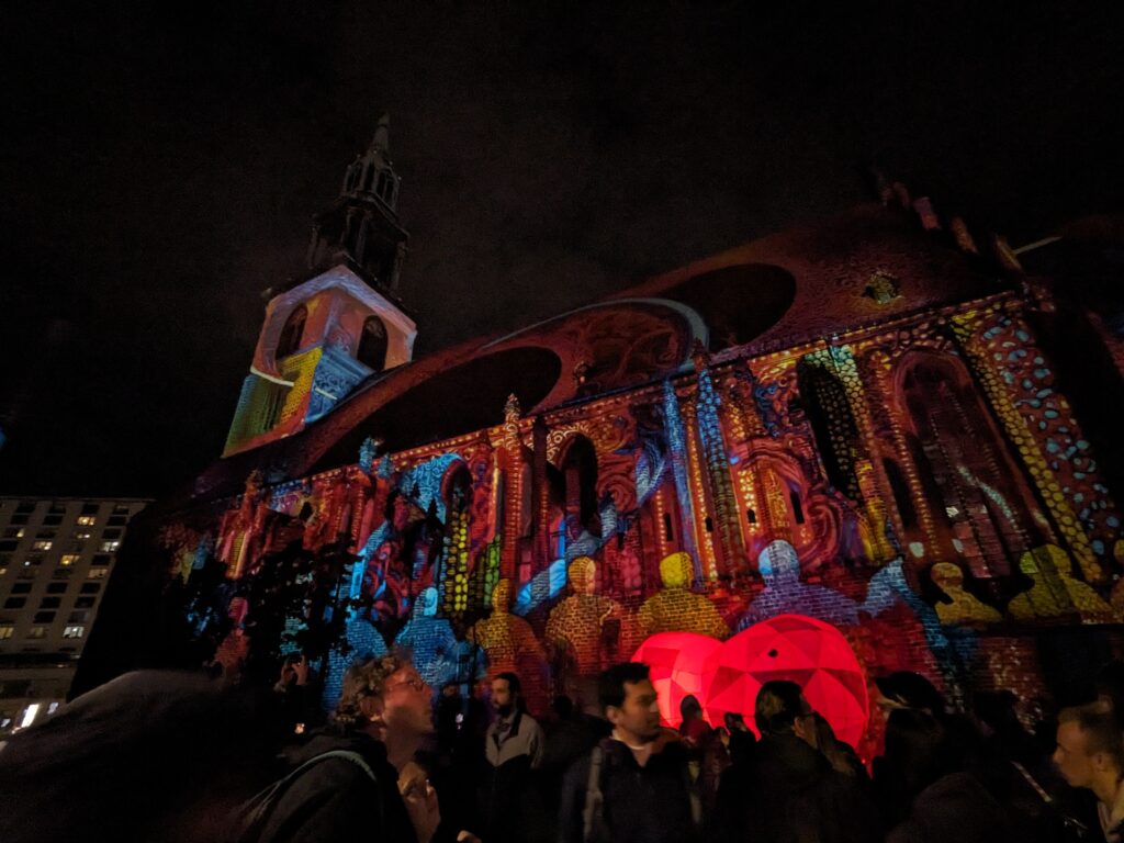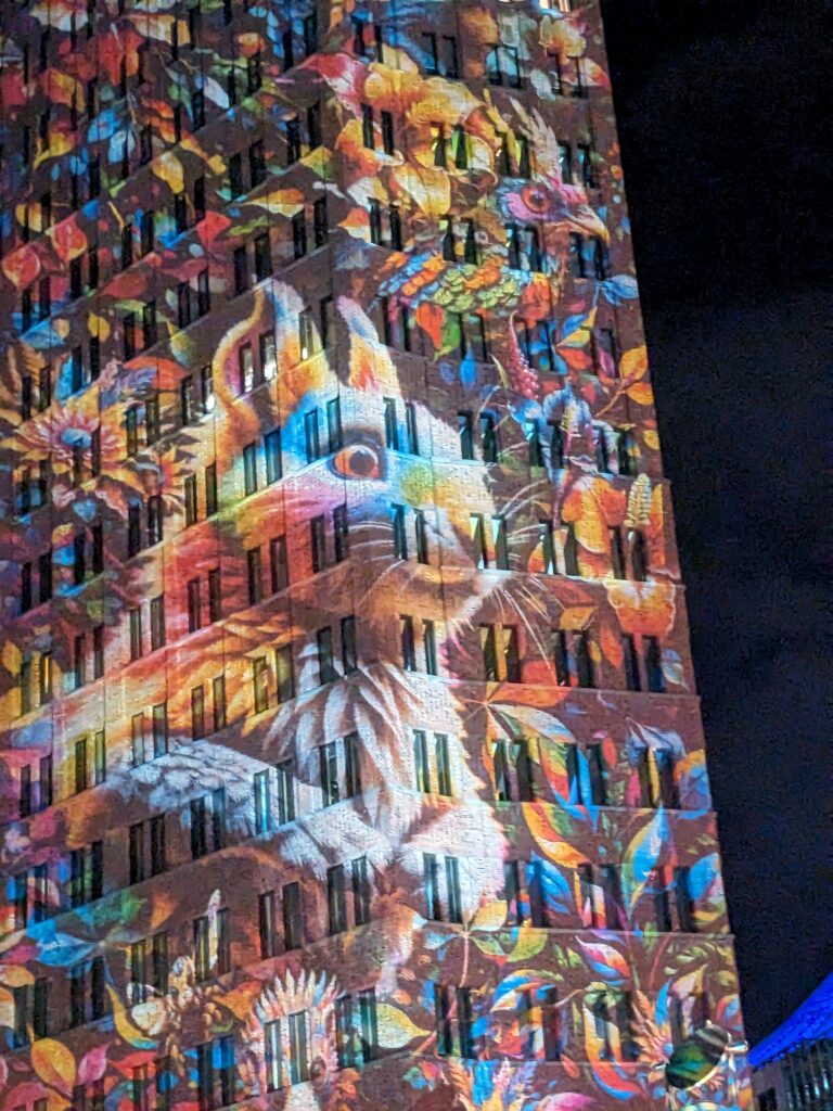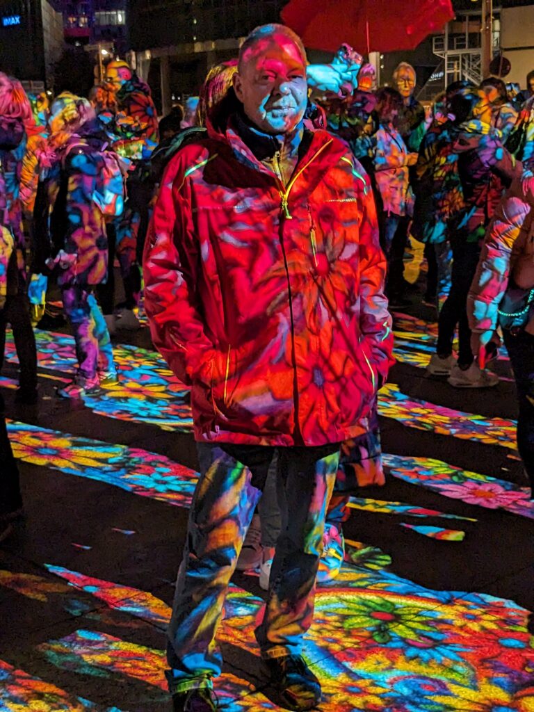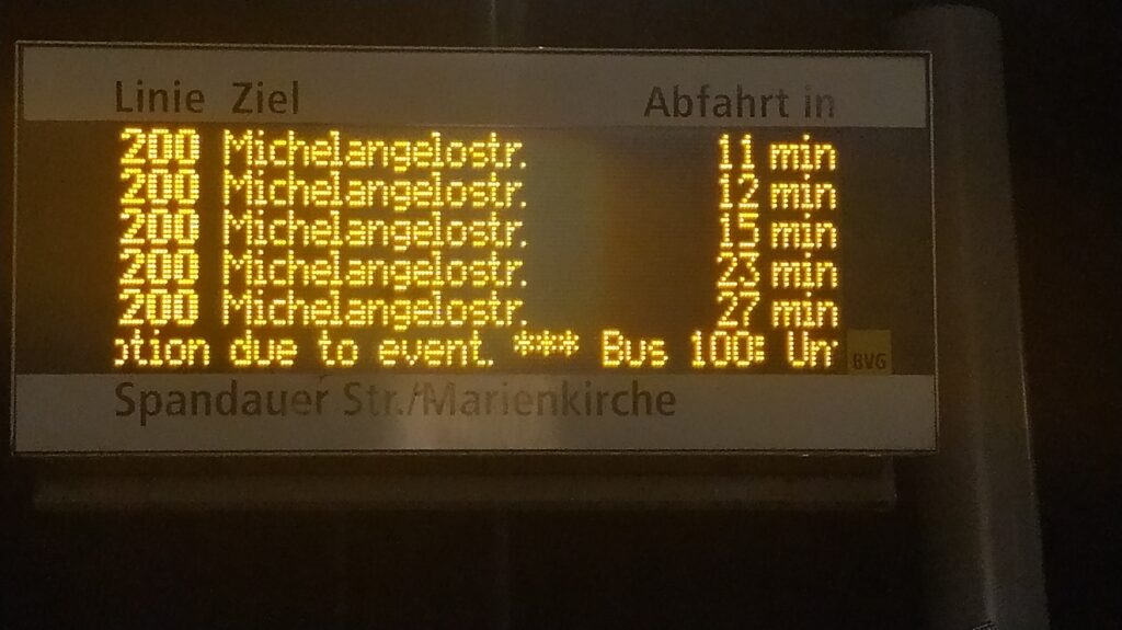 Nach einer sehr ruhigen Nacht sind wir um 11 Uhr startklar, diesmal hat die automatische Reinigung des Bongos im Camperclean auch gut funktioniert. Gegen 15 Uhr kommen wir nach der Umleitung der Umleitung in der Umleitung und Backfisch mit Kartoffelsalat in Ermangelung von auswärtiger Futter-Aufnahme auf dem Stellplatz in Berlin Tegel an. Nach einem kurzen Nickerchen, Ralf putzt derweil die Scheiben, geht es los, 15 Min. zu Fuß zum Bahnhof Tegel, dann mit dem S-Bahn 40 Minuten zum Bahnhof Friederichsstraße. Kurzer Stopp beim Chinamann und auf geht es zum „Festival of Lights‘ 1. Stopp Brandenburger Tor.