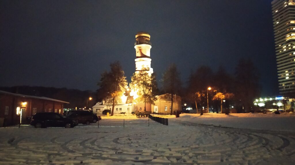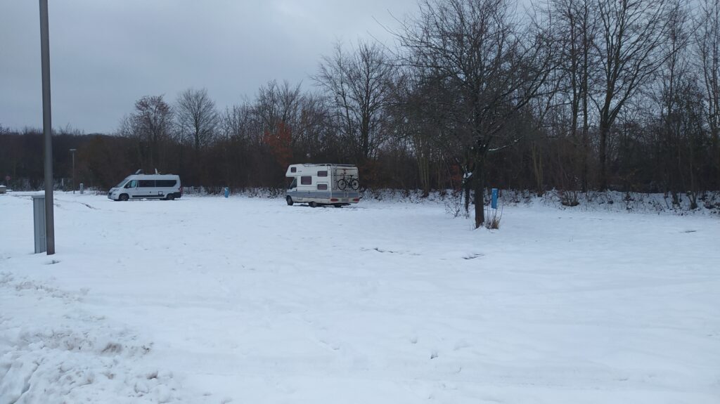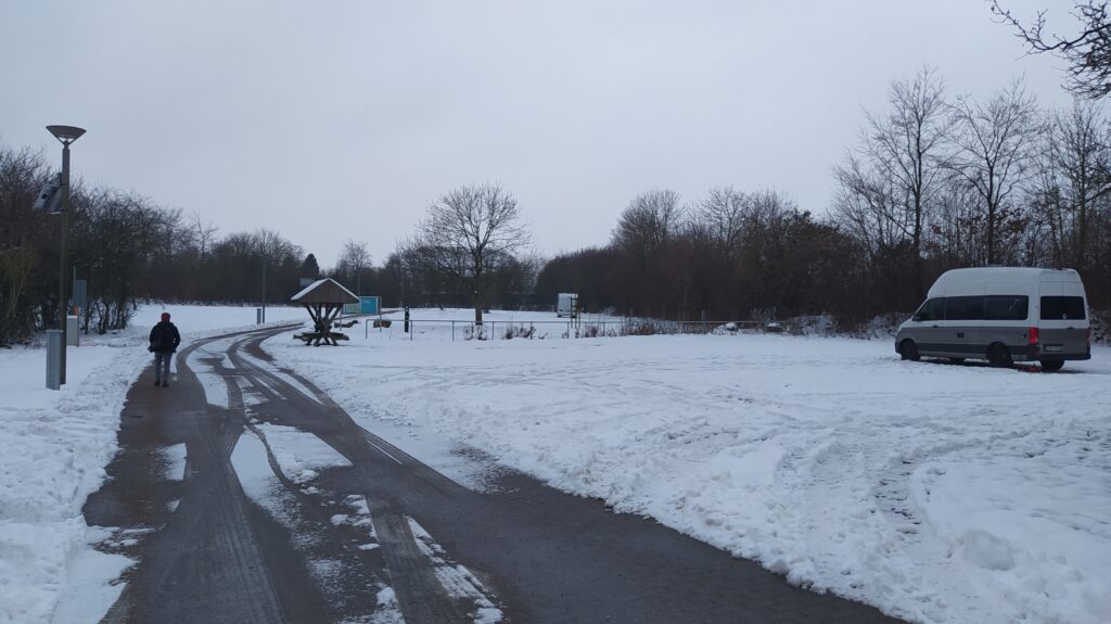 Nach einer herrlich ruhigen Nacht werden wir von einem Fahrzeug geweckt, das nebenan auf dem Parkplatz im knirschenden Schnee wendet. Gegen 11 sind wir nach der Entsorgung startklar und rollen gemütlich auf der B209 Richtung Norden. In Lübeck noch LPG in die Flasche nachtanken und nebenan Ente mit Nudeln beim Chinamann in unsere Mägen stopfen. Tina und ich hatten unterschiedliche Stellpätze herausgesucht, gelandet sind wir auf dem Kowitzberg, von den über 100 Plätzen sind gerade mal 4 belegt. Wir zahlen die 8 Euro Gebühr am Automaten inkl. Kurtaxe für eine Person und ziehen noch einen 2. Schein für die 2. Kurtaxe. Ich parke mutig mitten im Schnee. Nach einem Kaffee geht es mit dem Lütten in die Altstadt von Travemünde. Den Labcache brechen wir ab, uns ist kalt. Danach latschen wir auf der Uferpromenade umher und ergattern eine Bratwurst auf dem Mini-Weihnachtsmarkt. Um 18 Uhr sitzen wir wieder im warmen Womo.
