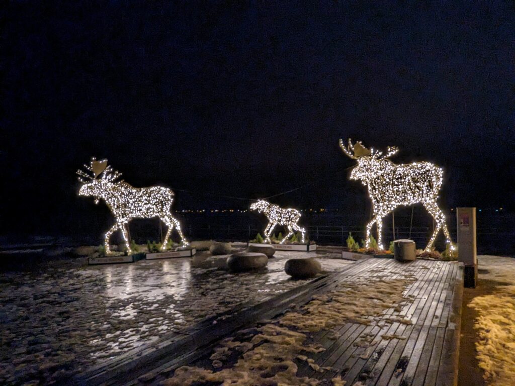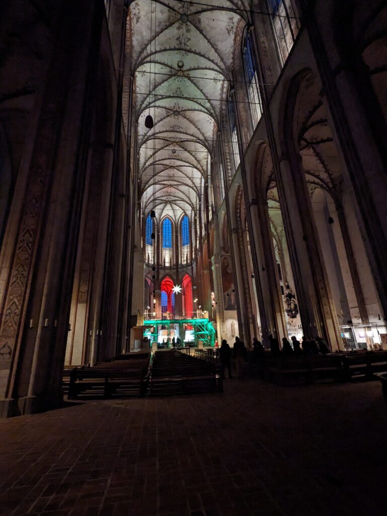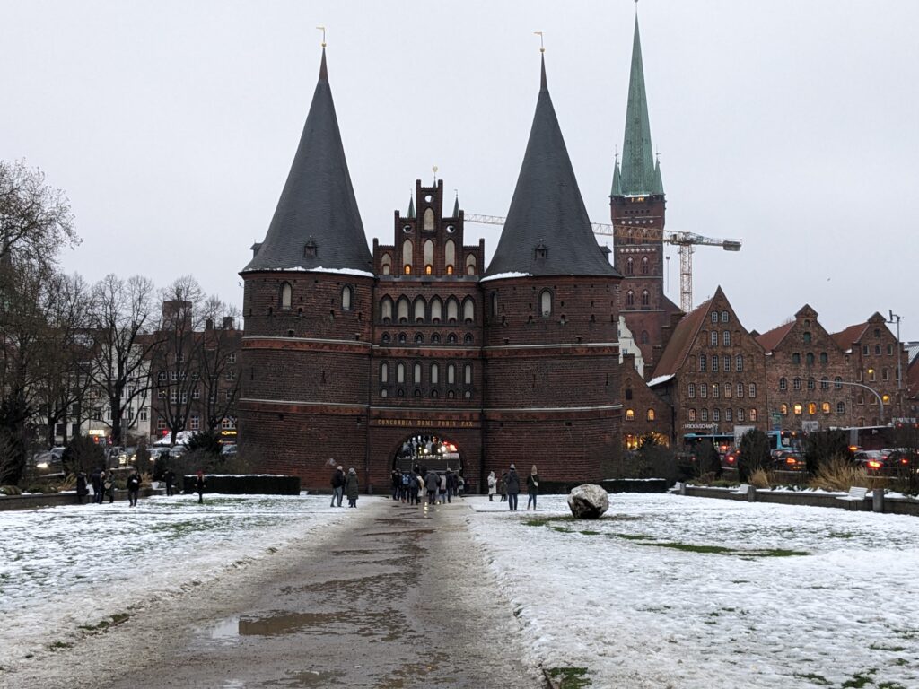 Um 9 Uhr klingelt der Wecker, bis zum Frühstück mit Rührei und Lachs dauert es bis Mittag. In Lübeck schauen wir nach Sofas. Wird wohl wieder das Gleiche werden. In der Innenstadt ist Chaos, nach 2 Stunden, eine Beule später am Heck, finden wir einen Parkplatz. So viele Menschen an einem Ort haben wir lange nicht gehabt. 2 Weihnachtsmärkte, der Dom und wieder weg. In Travemünde laufen wir auf der Promenade zu den Elchen am Maritim, kalt, weit, windig. Der Womoplatz ist eine Matschkuhle, aber das Essen klappt. Ob wir hier wieder rauskommen?