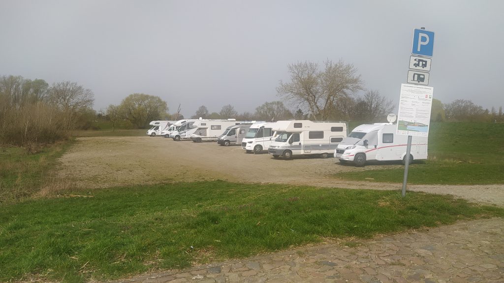 Heute haben wir uns ein wenig beeilt, weil die Entsorgung um 10 Uhr abgeschlossen wird. So können wir uns auch schon um kurz vor 11 auf dem Caravanhafen Neue Mühle einchecken. 22 Euro inkl. Strom, Duschen extra. Erstaunlicherweise sind wir fast alleine. Für den ganzen Nachmittag ist Dauerregen angekündigt, also machen wir einen faulen Tag im Womo.