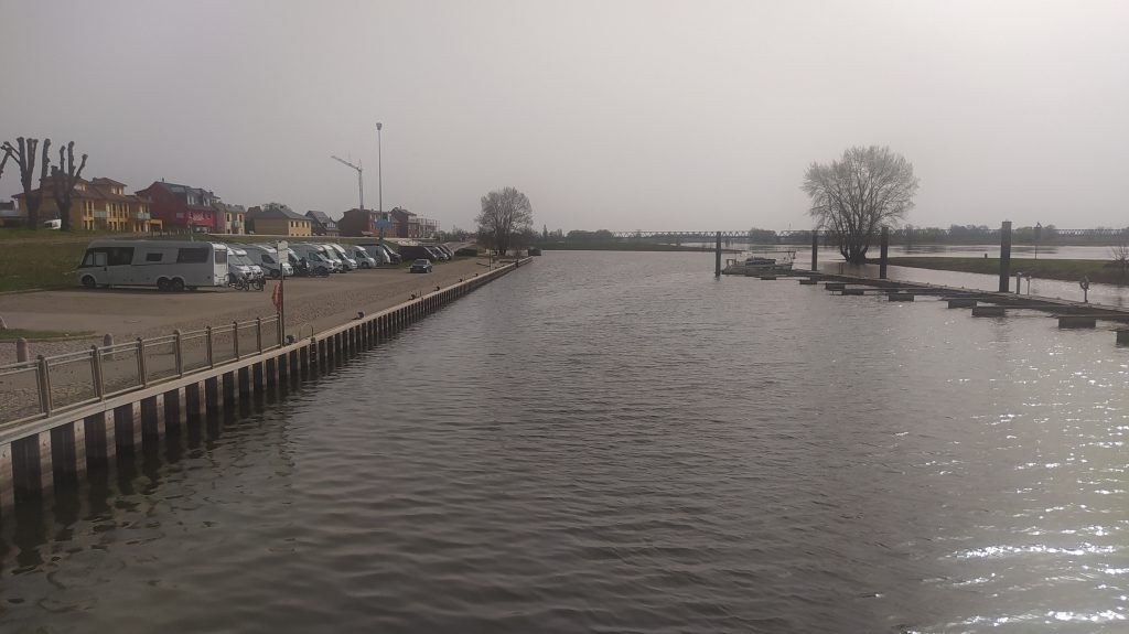Um 10:30 Uhr geht es über die leeren Landstrassen über Celle, Salzwedel nach Osten. Einen Platz finden wir in Wittenberge direkt an der Elbe. Zwar nicht vorne im Hafen, sondern daneben auf Schotter. Die ziemlich volle Elbe kann man hier trotzdem gut sehen. Den Nachmittag faulenzen wir im Womo. Abendessen ist ein Buffet beim Chinamann. Danach haben wir noch eine Stunde Wumpa-Wumpa auf dem Parkplatz nebenan, aber sonst ist es hier sehr ruhig.