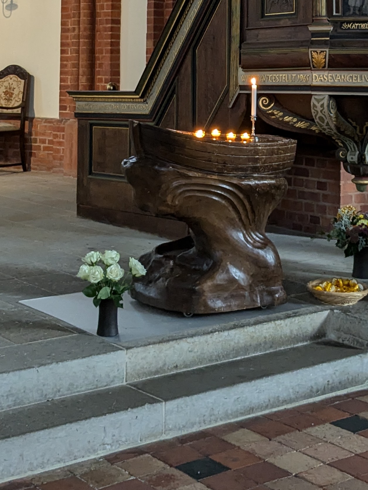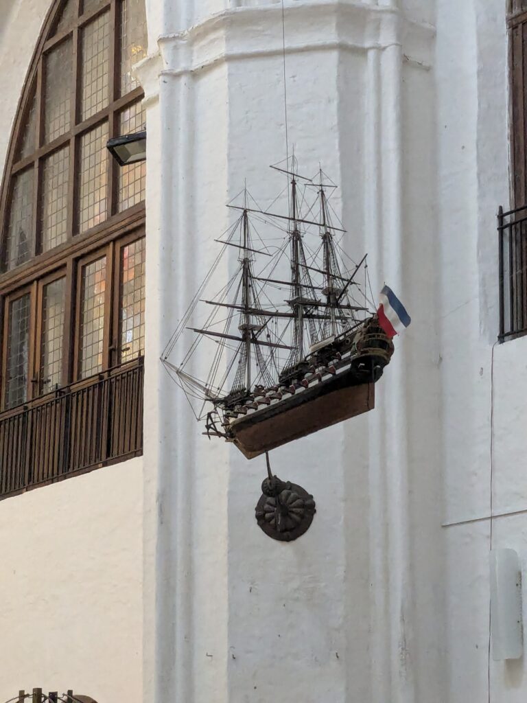 Neben Schiffsmodellen an der Decke, gibt es einen schönen Votivleuchter in Schiffsform