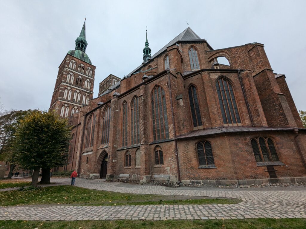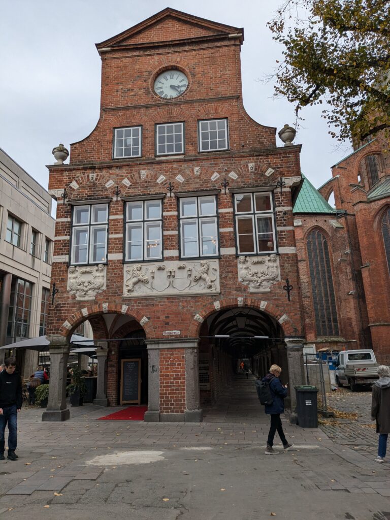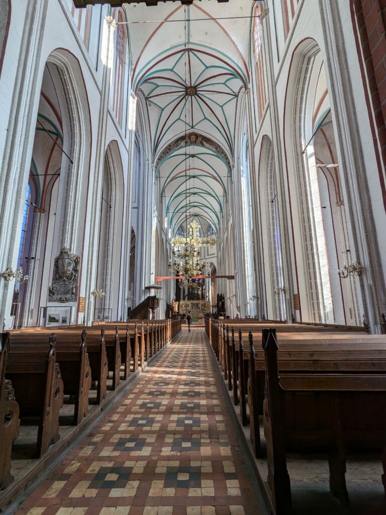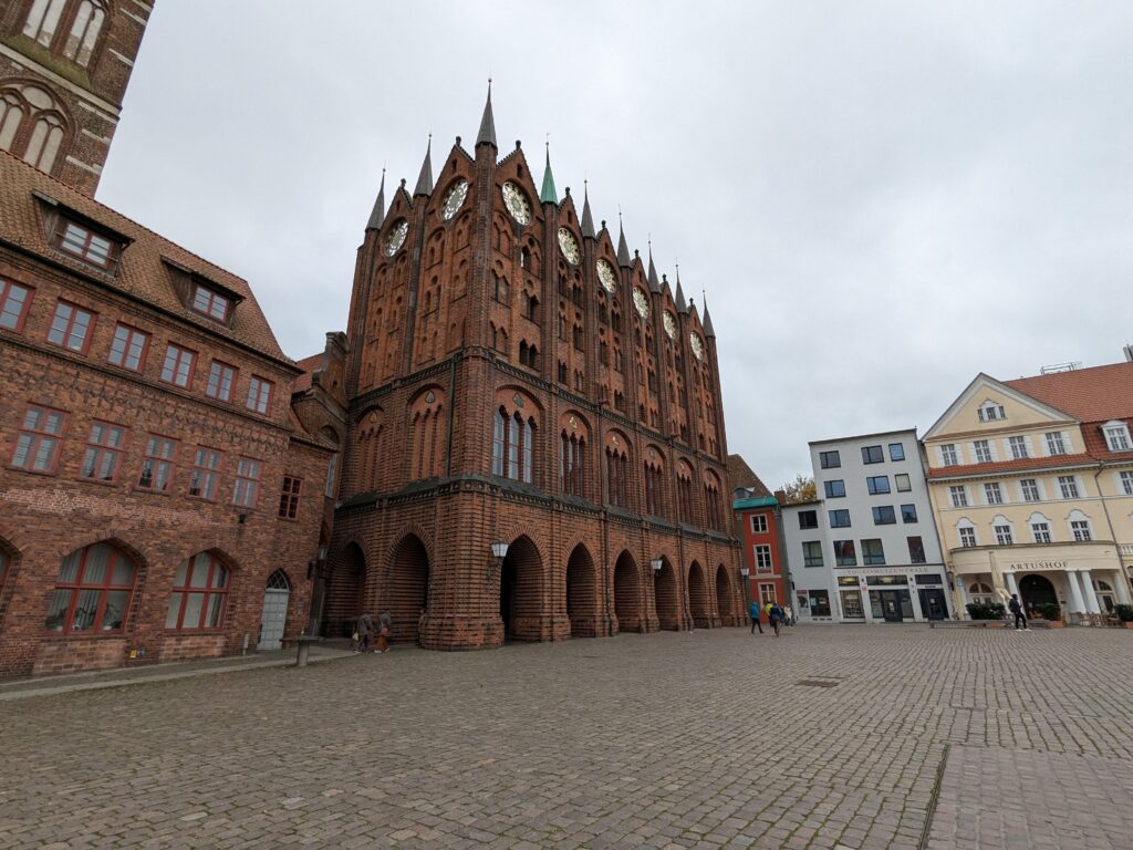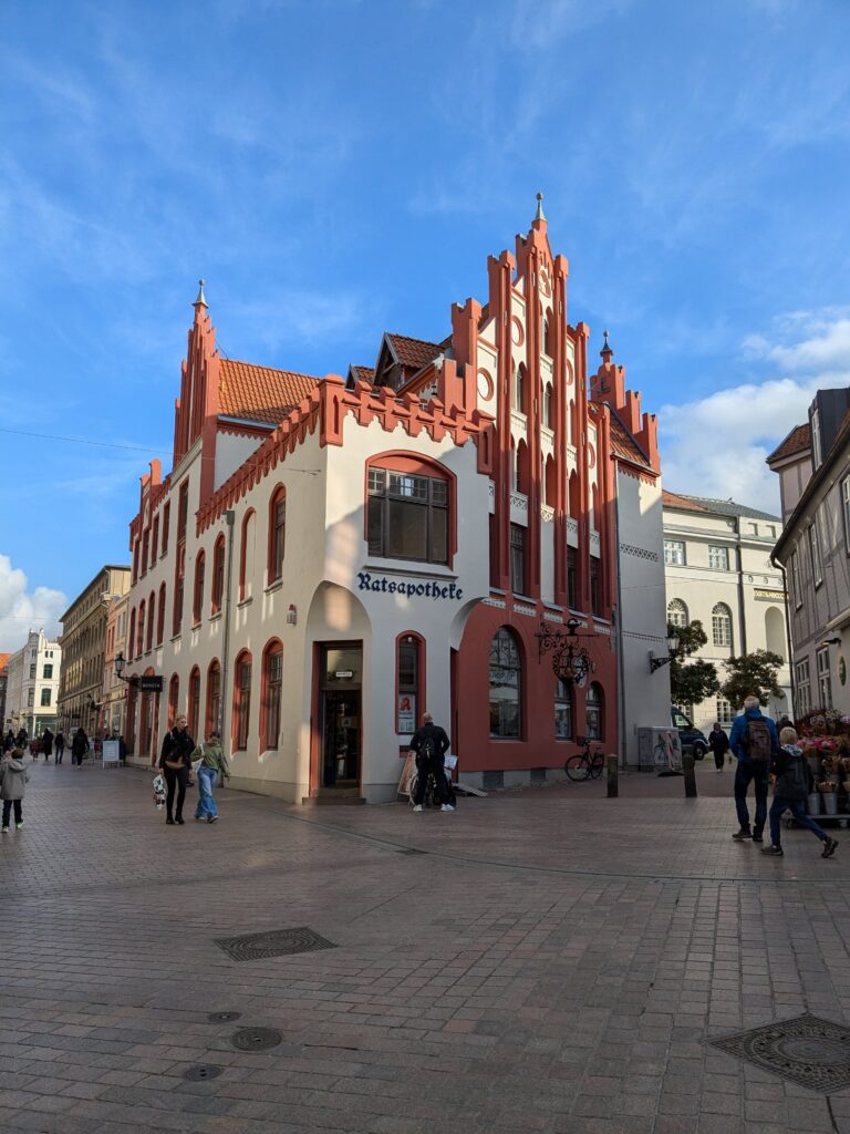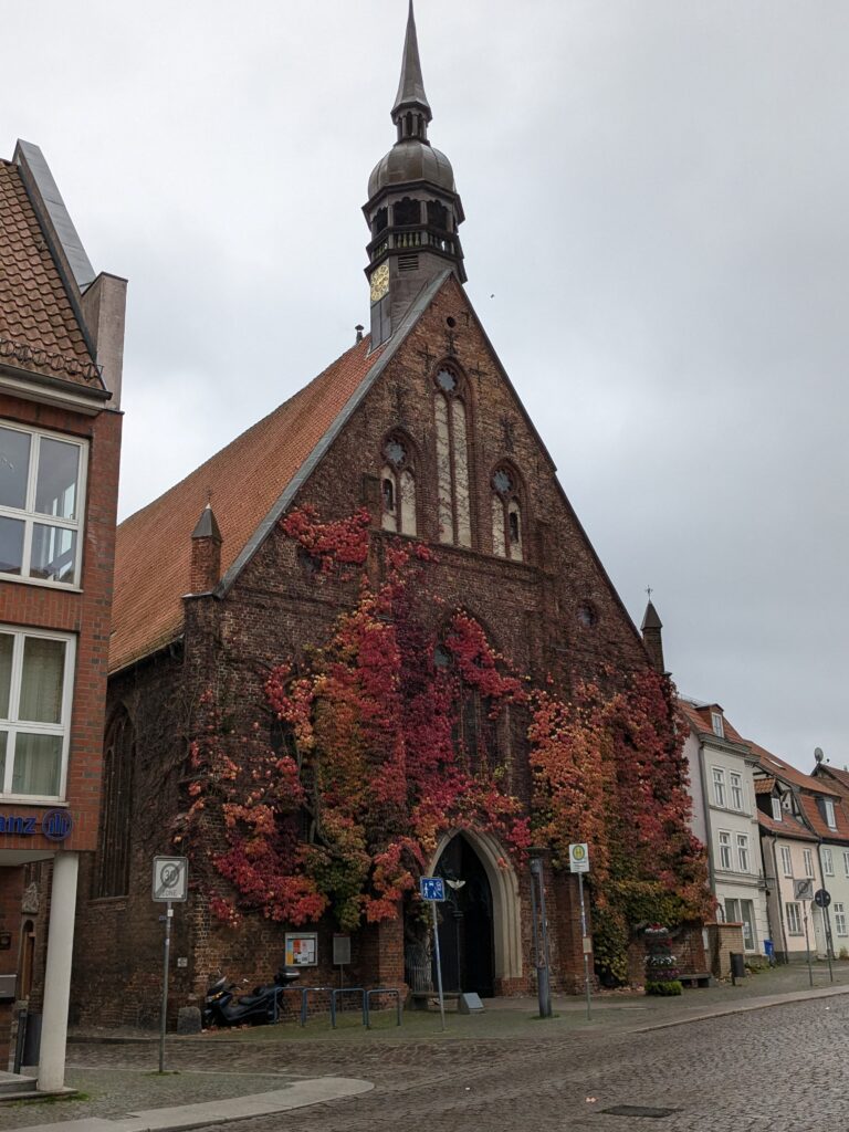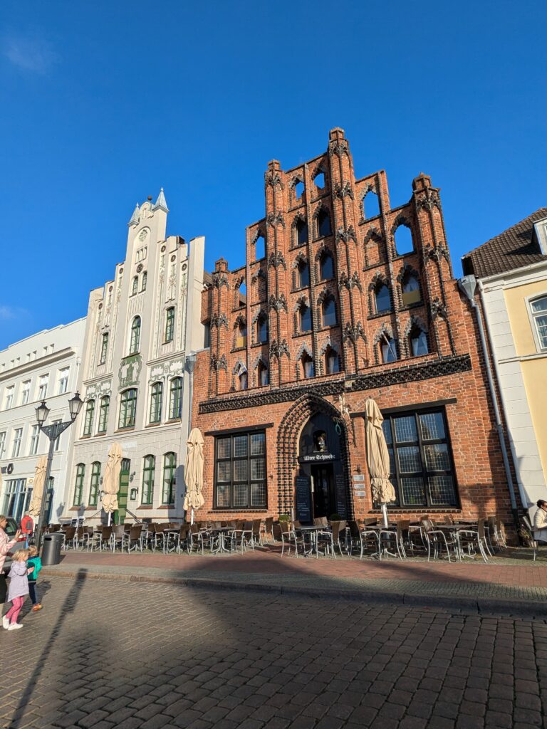 Danach gehen wir zur Nikolaikirche, zum Rathaus, zu Katharinenkirche (heute Meeresmuseum), zum vietnamesischen Imbiss (Absolutes Highlight des Tages, soo lecker), weiter zur Marienkirche. Inzwischen nieselt es und ist windig, trotzdem weiter zur Heiligen Geist Kirche (total niedlich gegen die anderen Riesenkirchen und zu guter Letzt zur Jakobikirche, die heute wegen eines Konzertes geschlossen ist. Das Wetter ist auch nicht mehr so toll, Pacer sagt 9000 Schritte, also zurück zum Auto und dann zum gemütlichen Teil des Tages!