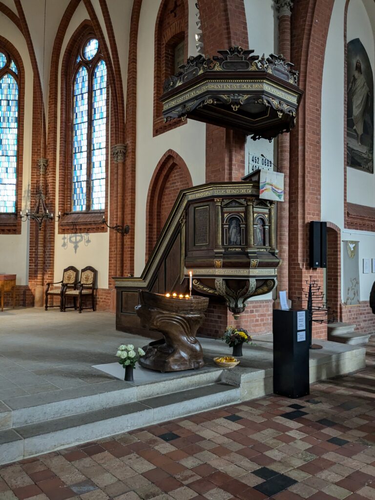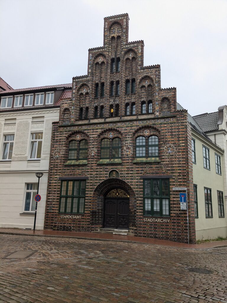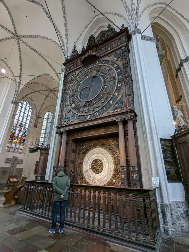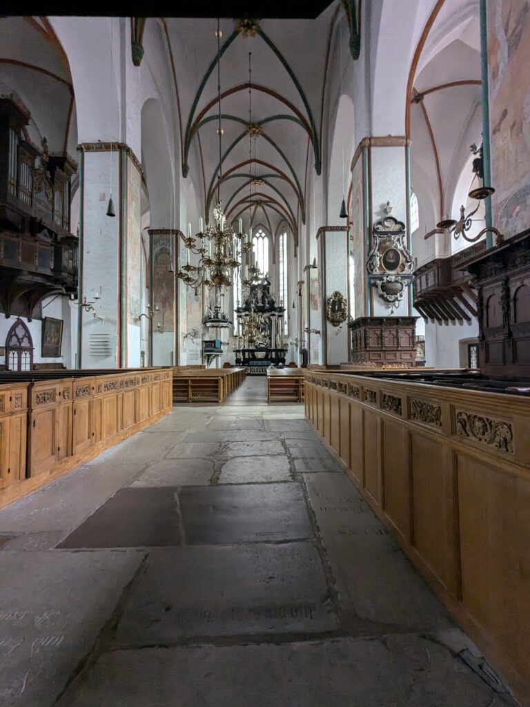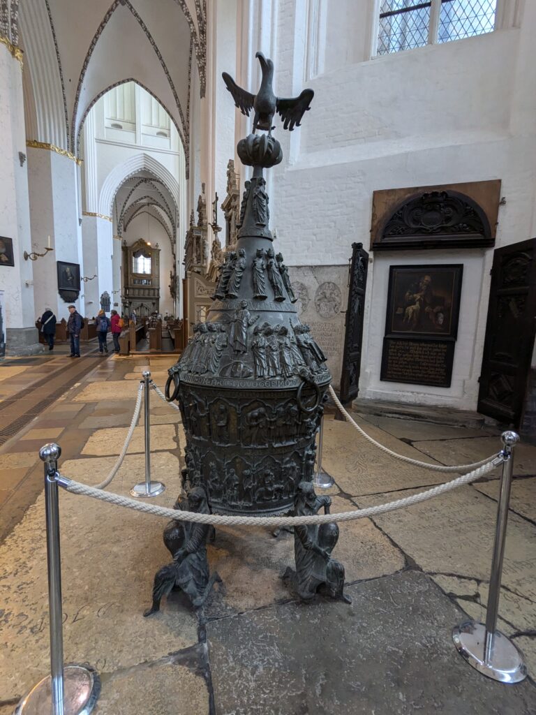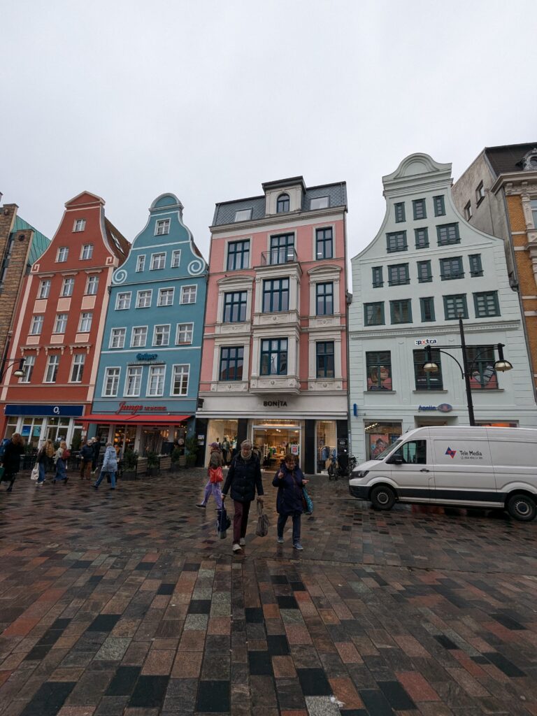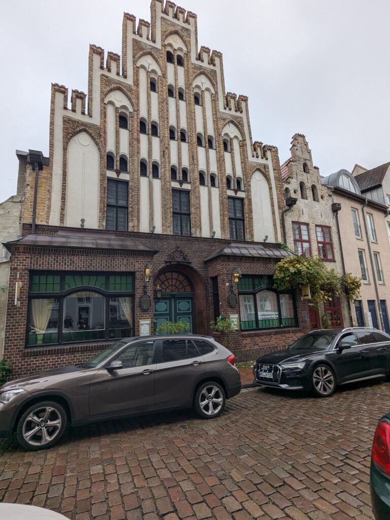 Danach gehen wir zur Nikolaikirche, zum Rathaus, zu Katharinenkirche (heute Meeresmuseum), zum vietnamesischen Imbiss (Absolutes Highlight des Tages, soo lecker), weiter zur Marienkirche. Inzwischen nieselt es und ist windig, trotzdem weiter zur Heiligen Geist Kirche (total niedlich gegen die anderen Riesenkirchen und zu guter Letzt zur Jakobikirche, die heute wegen eines Konzertes geschlossen ist. Das Wetter ist auch nicht mehr so toll, Pacer sagt 9000 Schritte, also zurück zum Auto und dann zum gemütlichen Teil des Tages!