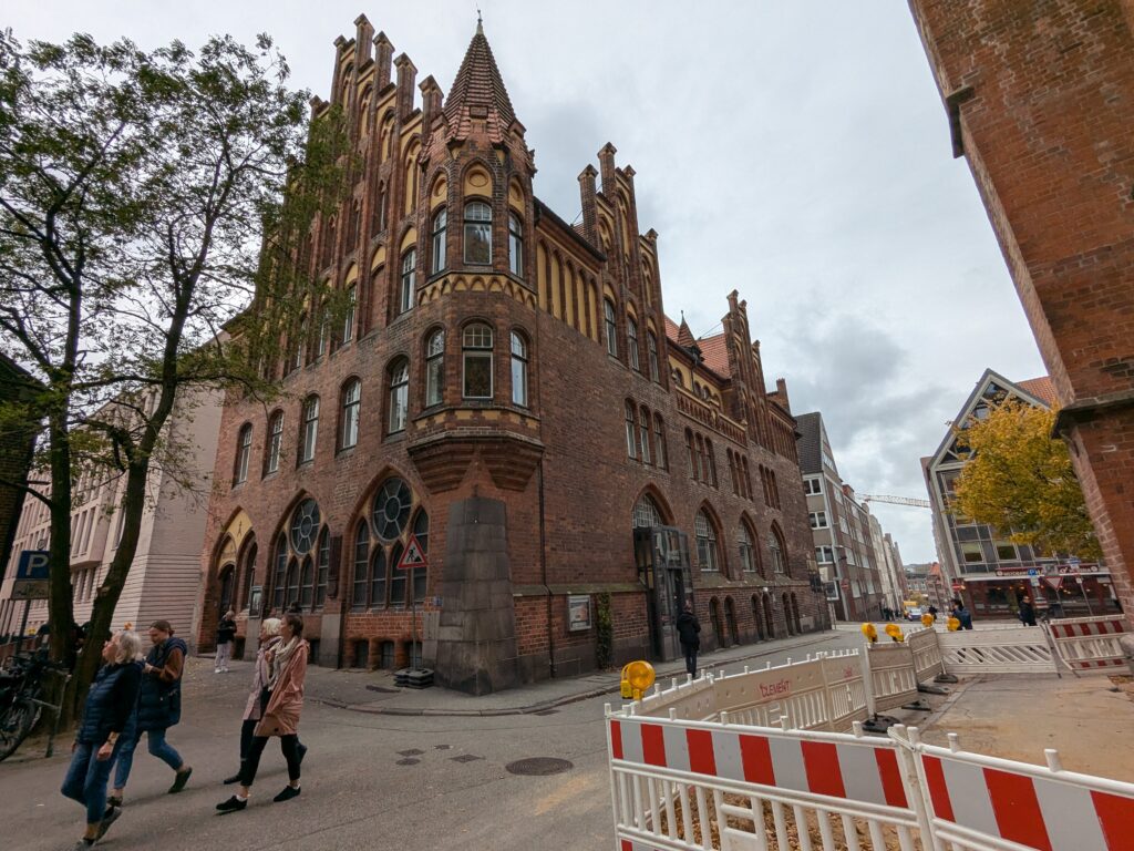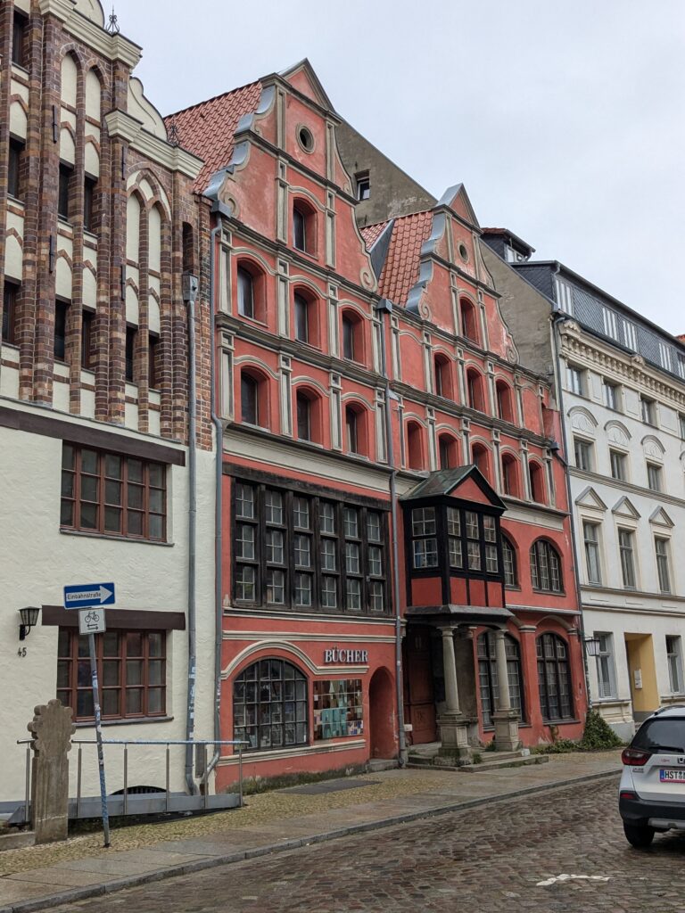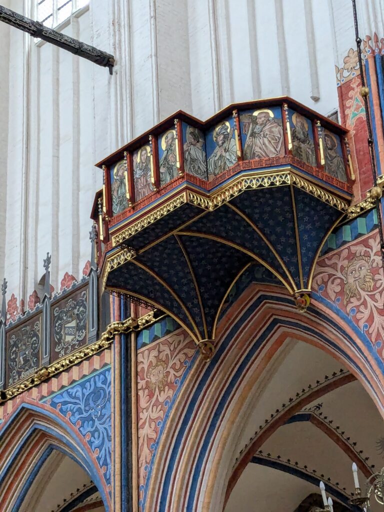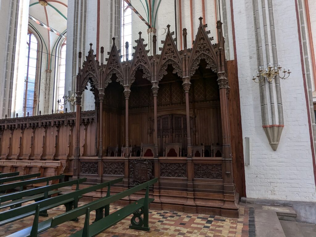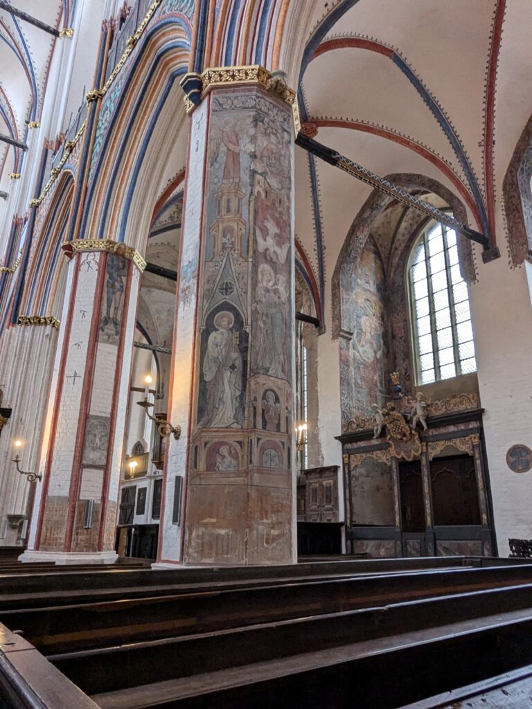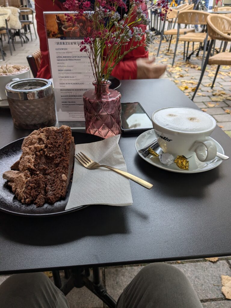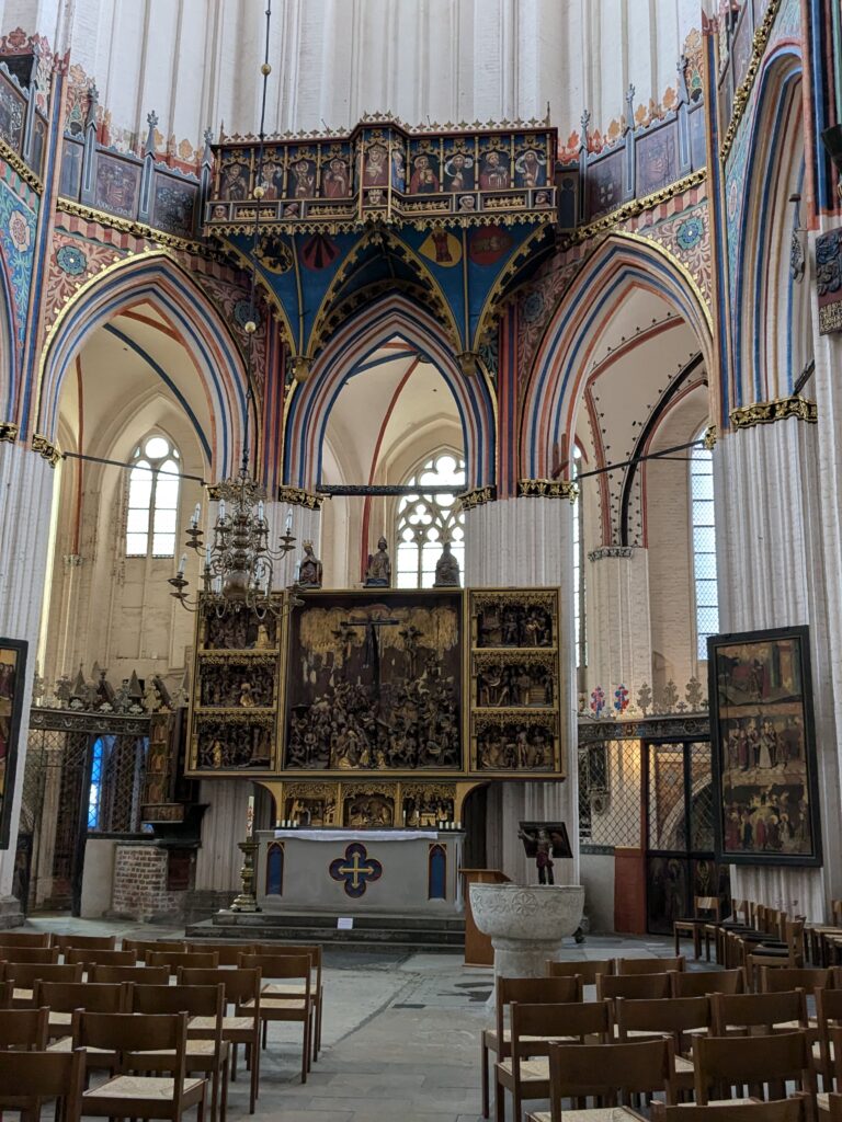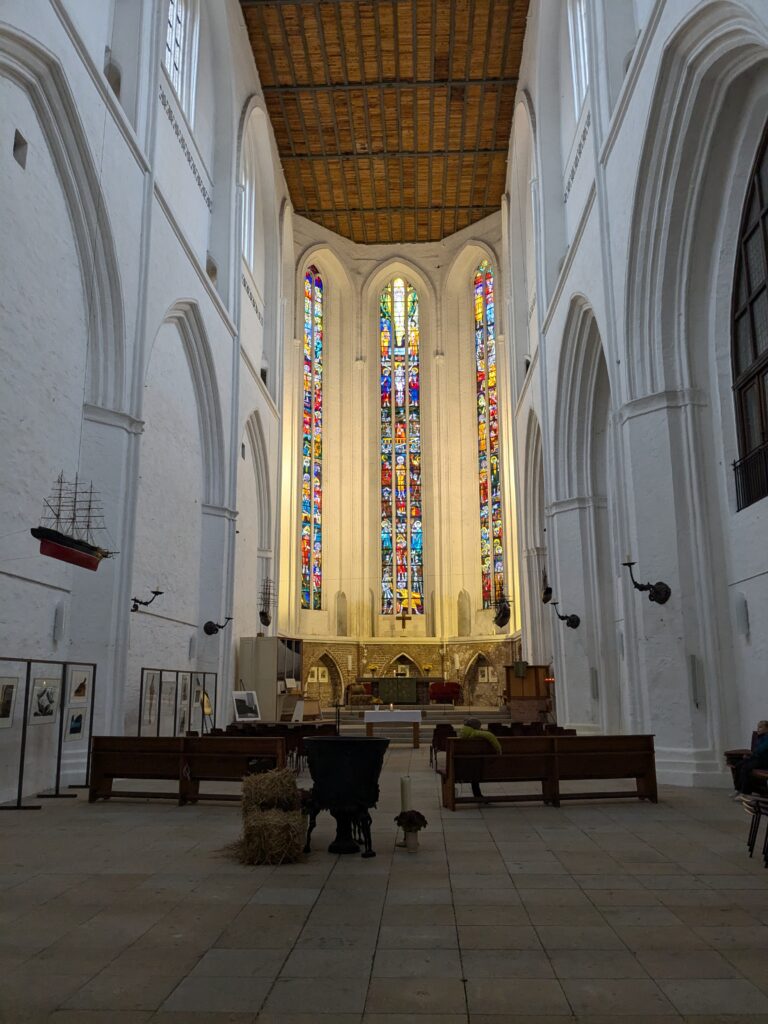 Danach gehen wir zur Nikolaikirche, zum Rathaus, zu Katharinenkirche (heute Meeresmuseum), zum vietnamesischen Imbiss (Absolutes Highlight des Tages, soo lecker), weiter zur Marienkirche. Inzwischen nieselt es und ist windig, trotzdem weiter zur Heiligen Geist Kirche (total niedlich gegen die anderen Riesenkirchen und zu guter Letzt zur Jakobikirche, die heute wegen eines Konzertes geschlossen ist. Das Wetter ist auch nicht mehr so toll, Pacer sagt 9000 Schritte, also zurück zum Auto und dann zum gemütlichen Teil des Tages!
