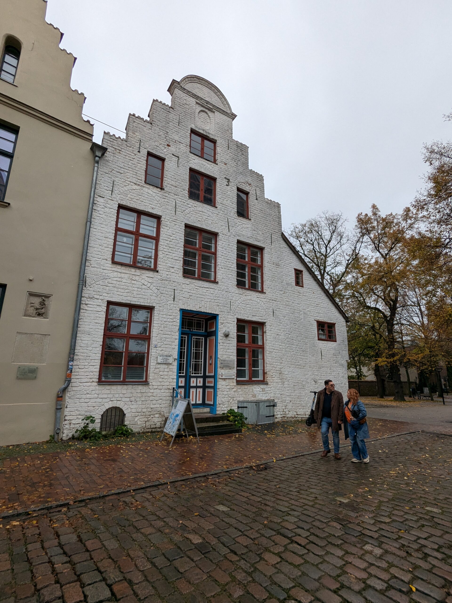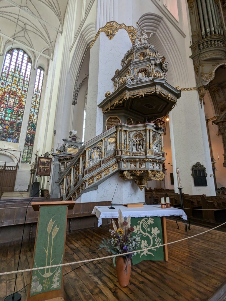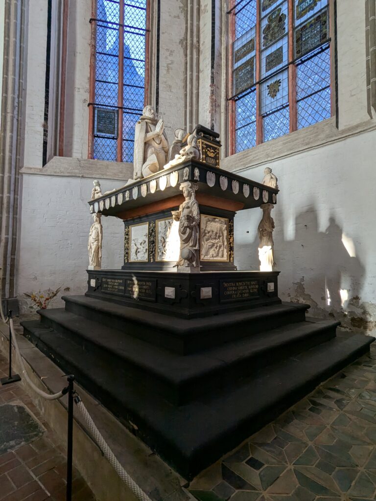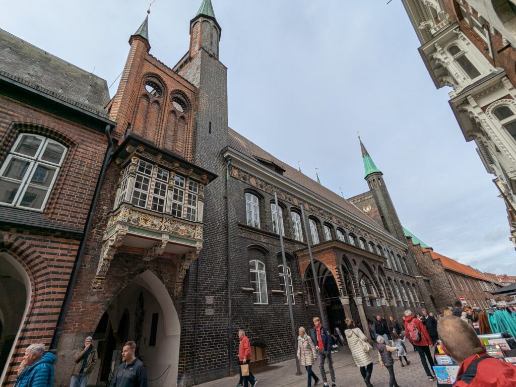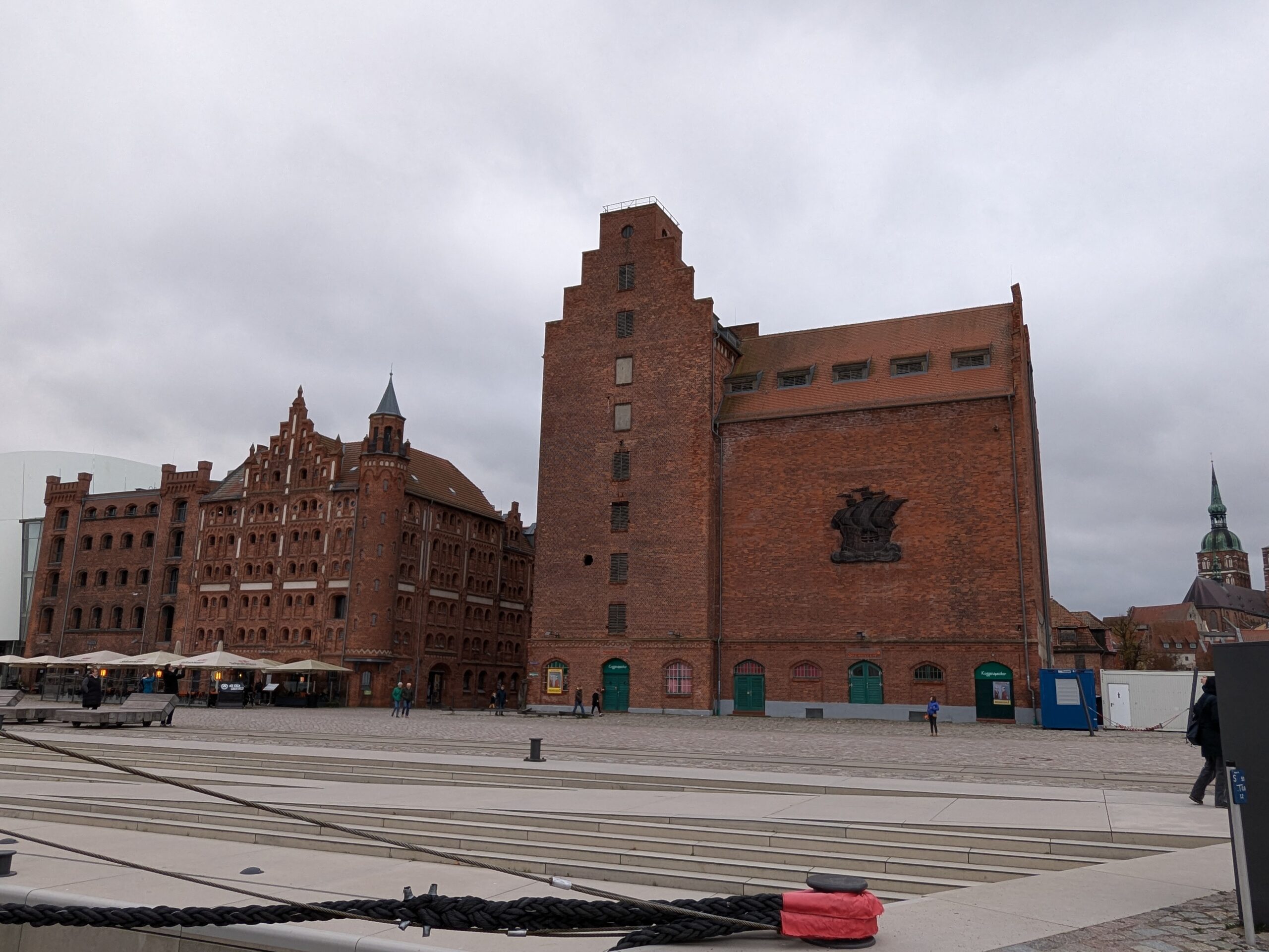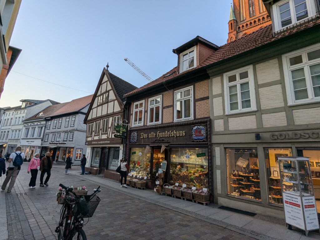 Danach gehen wir zur Nikolaikirche, zum Rathaus, zu Katharinenkirche (heute Meeresmuseum), zum vietnamesischen Imbiss (Absolutes Highlight des Tages, soo lecker), weiter zur Marienkirche. Inzwischen nieselt es und ist windig, trotzdem weiter zur Heiligen Geist Kirche (total niedlich gegen die anderen Riesenkirchen und zu guter Letzt zur Jakobikirche, die heute wegen eines Konzertes geschlossen ist. Das Wetter ist auch nicht mehr so toll, Pacer sagt 9000 Schritte, also zurück zum Auto und dann zum gemütlichen Teil des Tages!