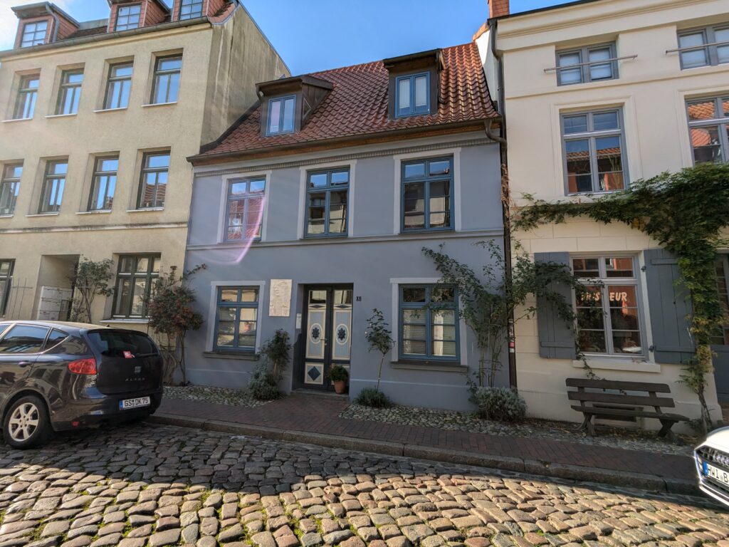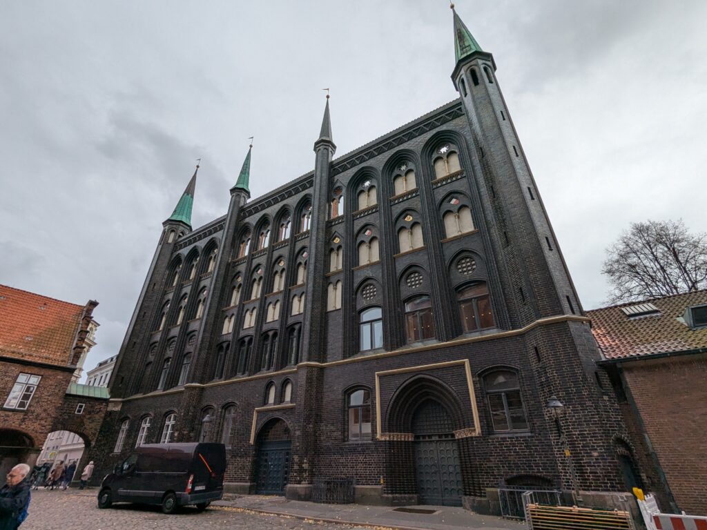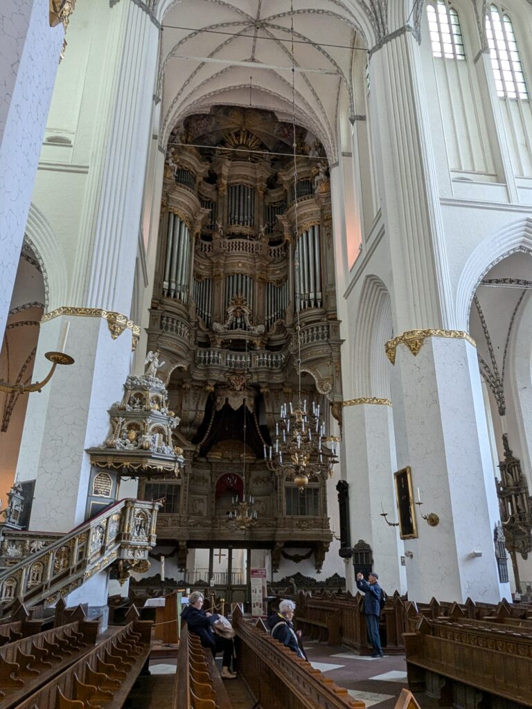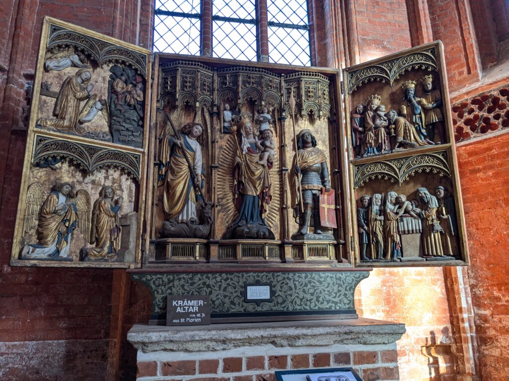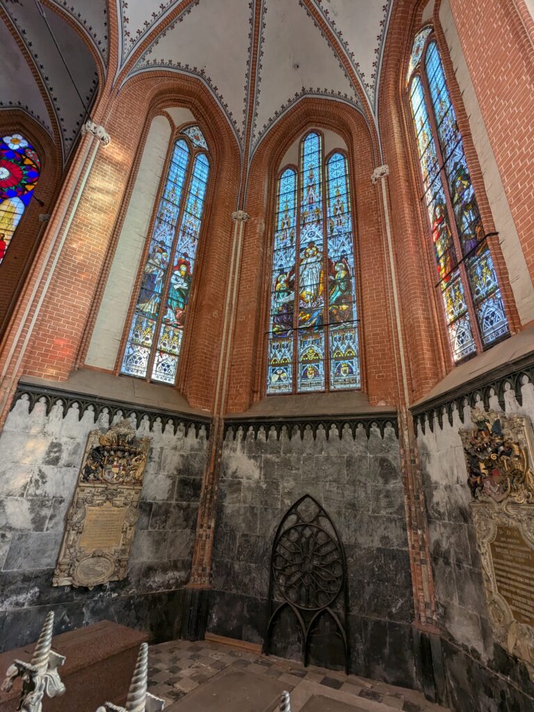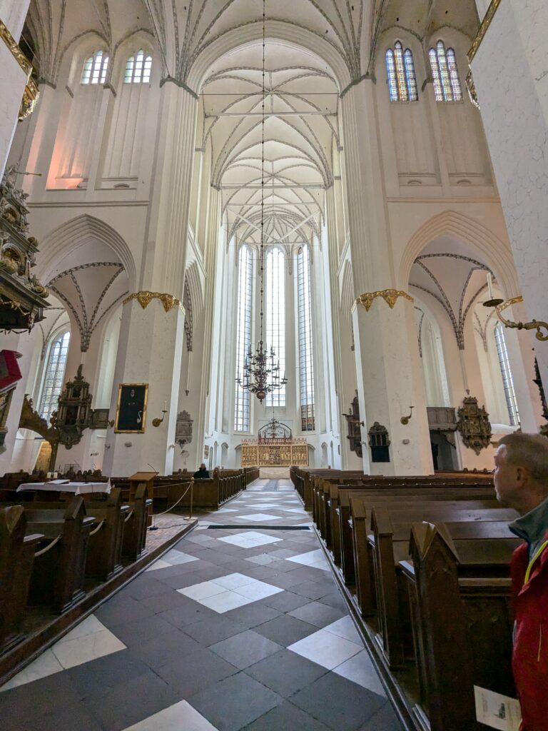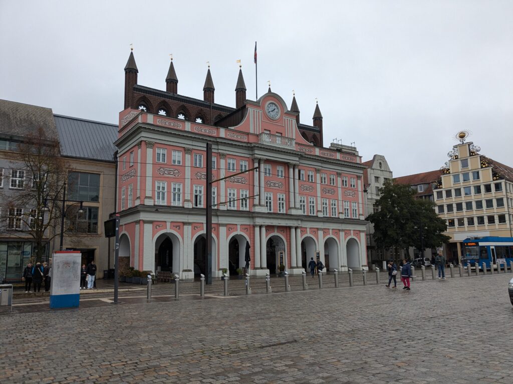 Danach gehen wir zur Nikolaikirche, zum Rathaus, zu Katharinenkirche (heute Meeresmuseum), zum vietnamesischen Imbiss (Absolutes Highlight des Tages, soo lecker), weiter zur Marienkirche. Inzwischen nieselt es und ist windig, trotzdem weiter zur Heiligen Geist Kirche (total niedlich gegen die anderen Riesenkirchen und zu guter Letzt zur Jakobikirche, die heute wegen eines Konzertes geschlossen ist. Das Wetter ist auch nicht mehr so toll, Pacer sagt 9000 Schritte, also zurück zum Auto und dann zum gemütlichen Teil des Tages!