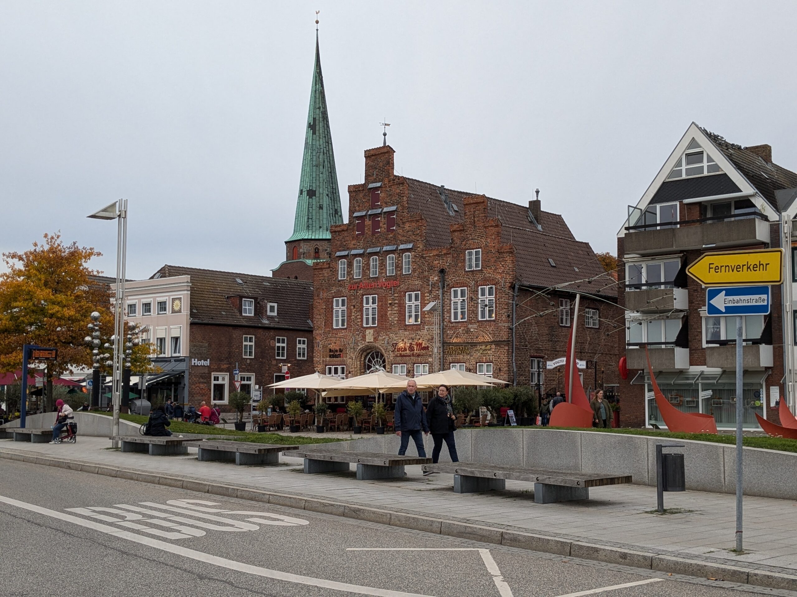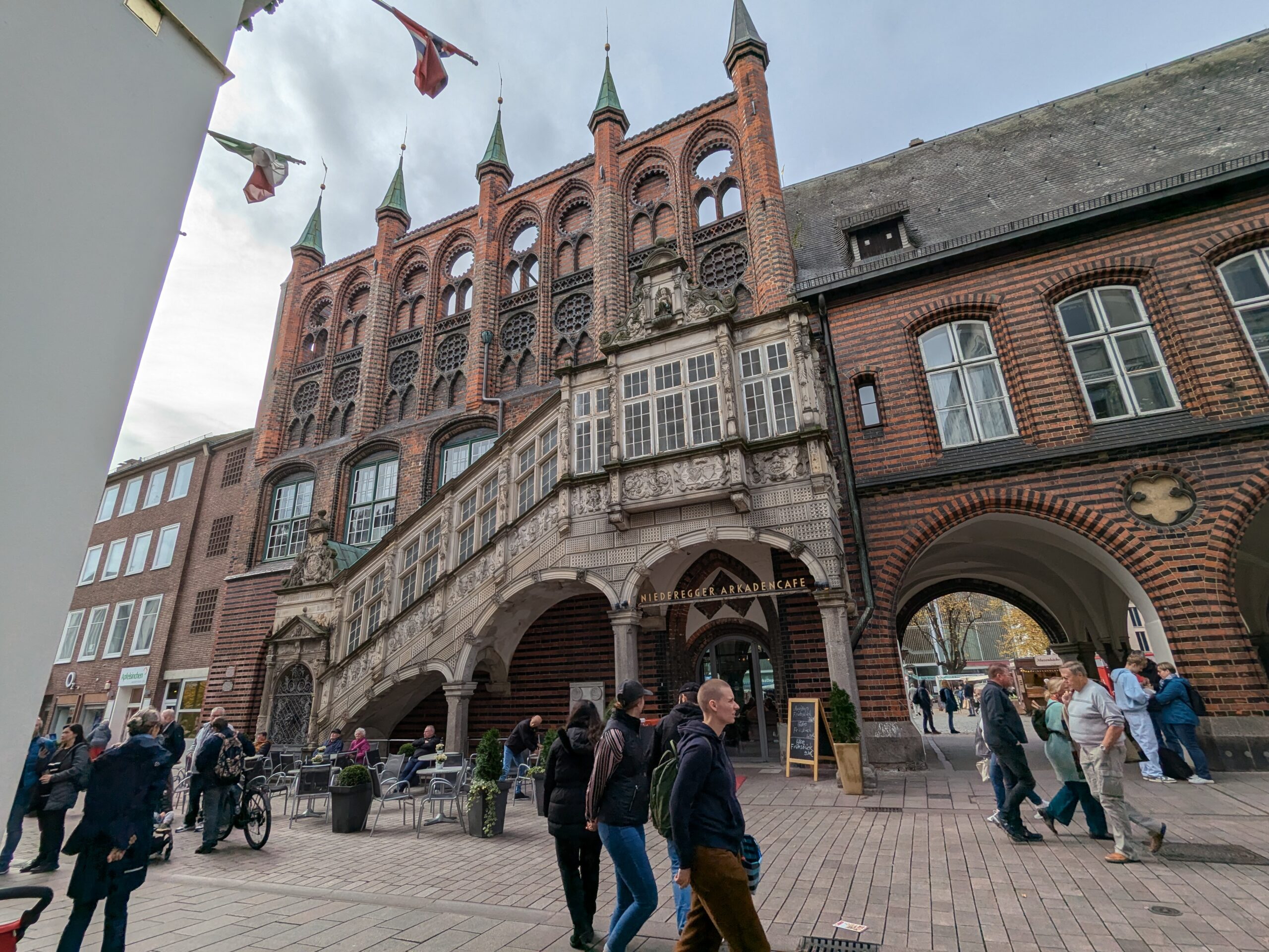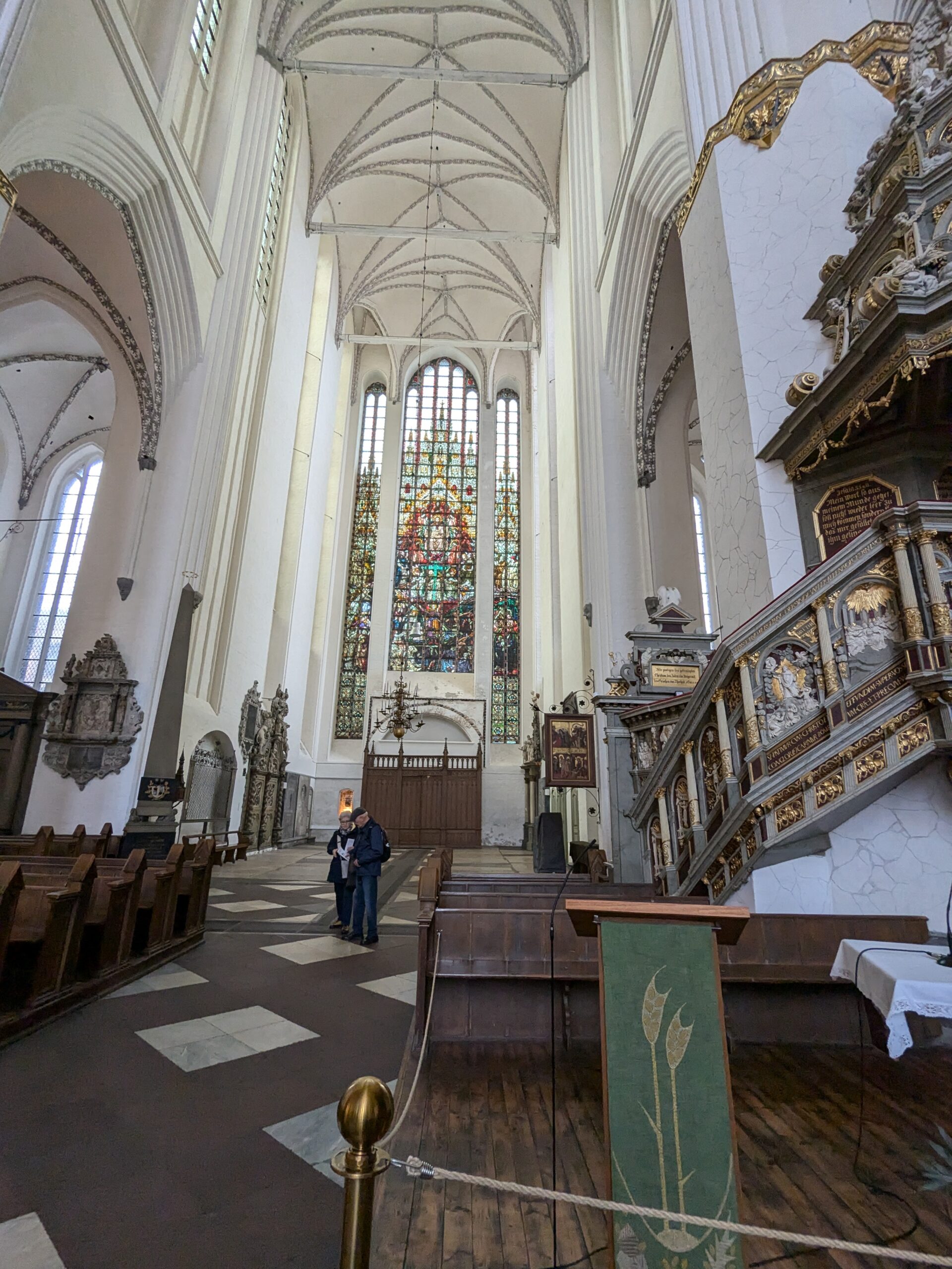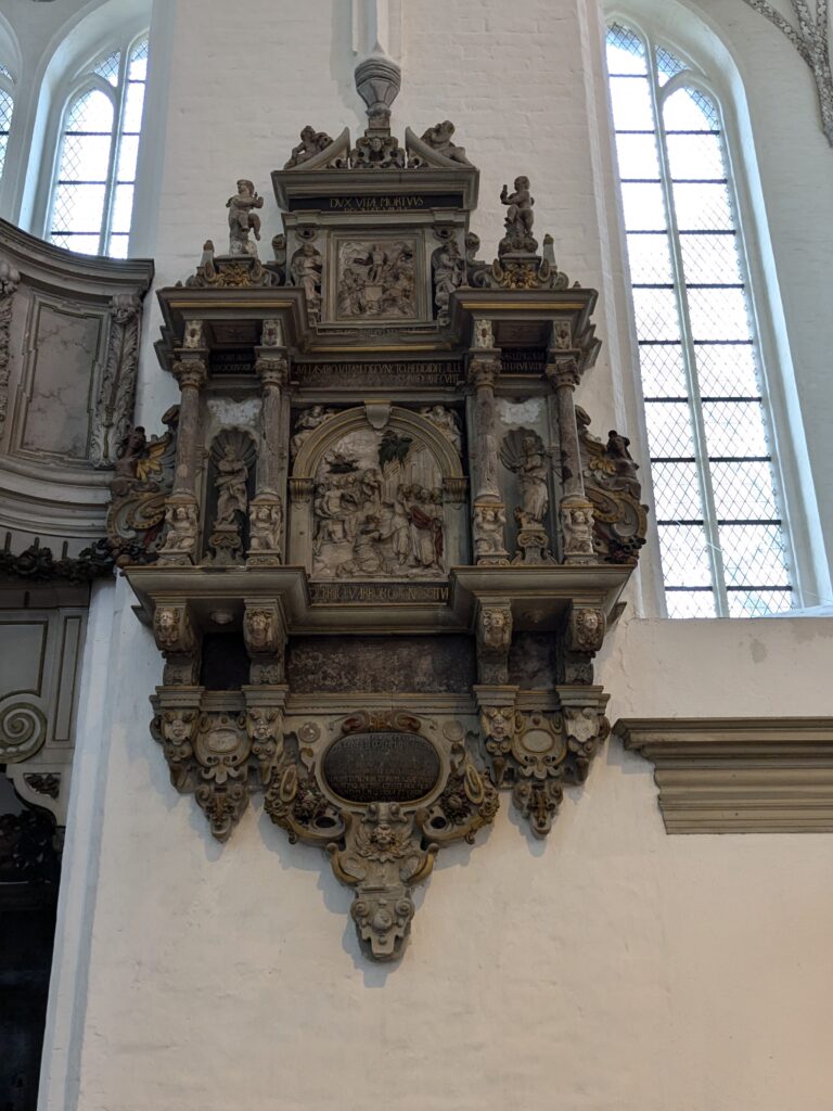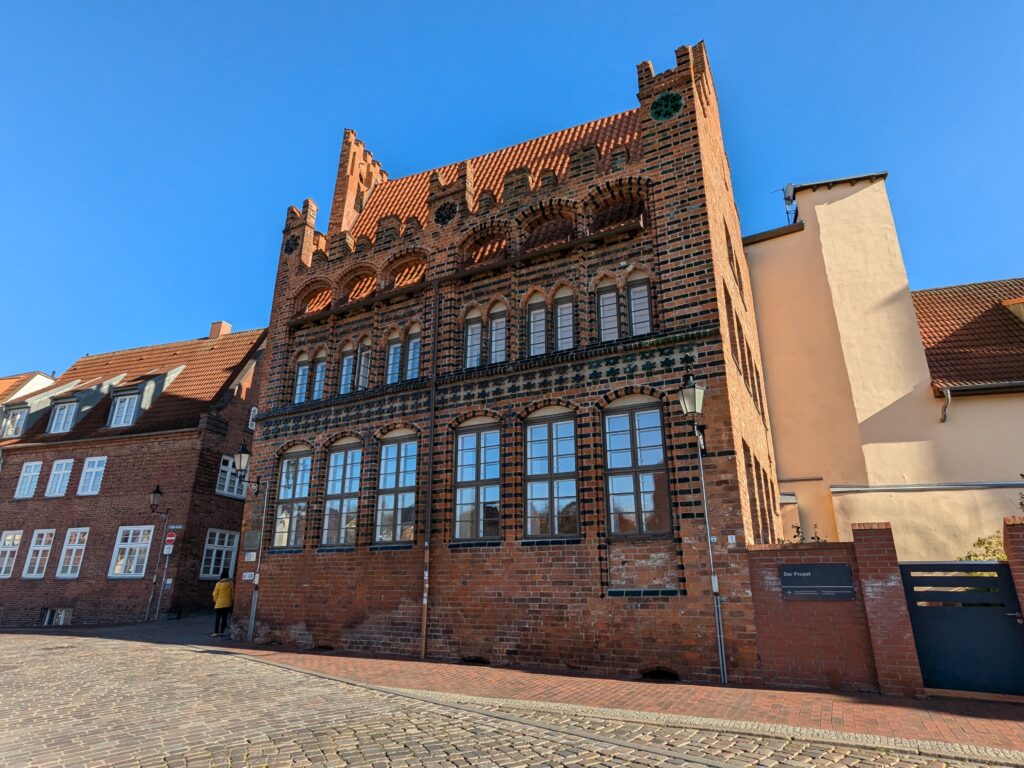 Danach gehen wir zur Nikolaikirche, zum Rathaus, zu Katharinenkirche (heute Meeresmuseum), zum vietnamesischen Imbiss (Absolutes Highlight des Tages, soo lecker), weiter zur Marienkirche. Inzwischen nieselt es und ist windig, trotzdem weiter zur Heiligen Geist Kirche (total niedlich gegen die anderen Riesenkirchen und zu guter Letzt zur Jakobikirche, die heute wegen eines Konzertes geschlossen ist. Das Wetter ist auch nicht mehr so toll, Pacer sagt 9000 Schritte, also zurück zum Auto und dann zum gemütlichen Teil des Tages!