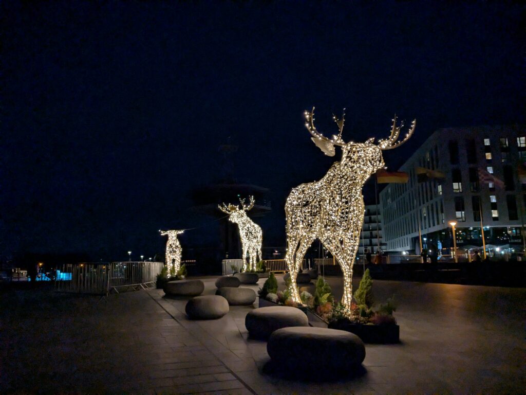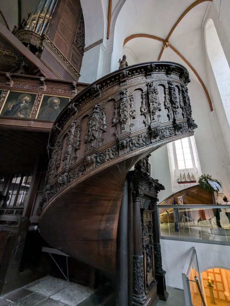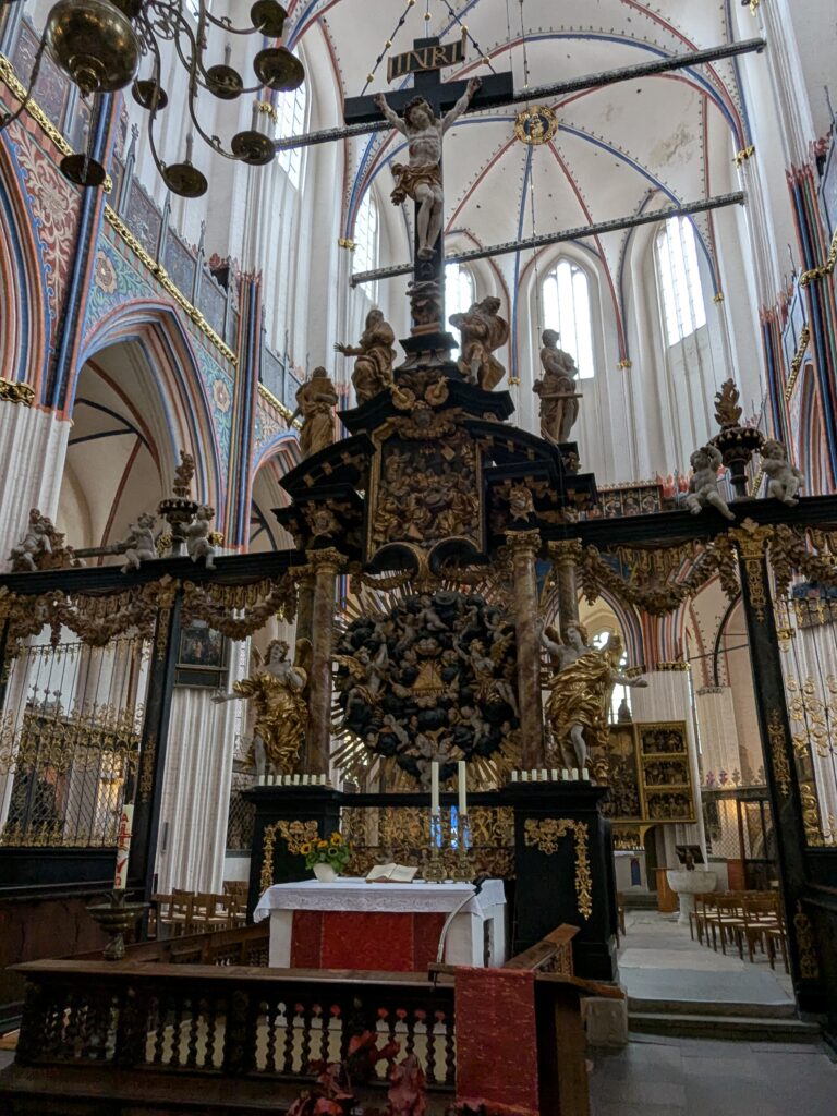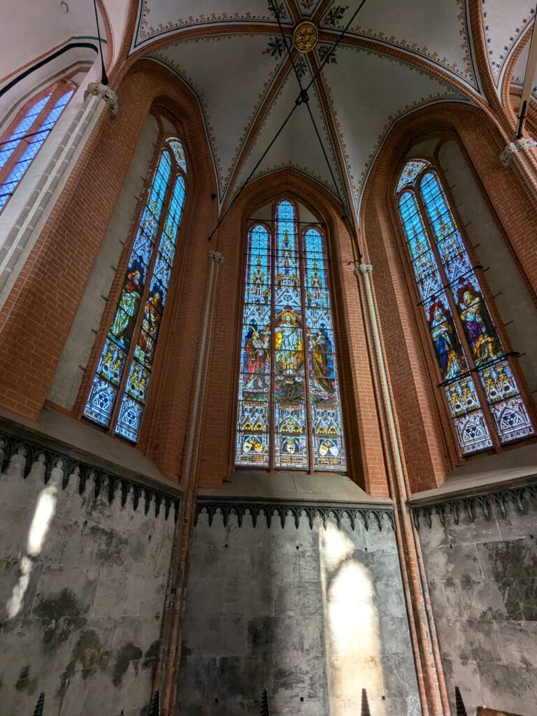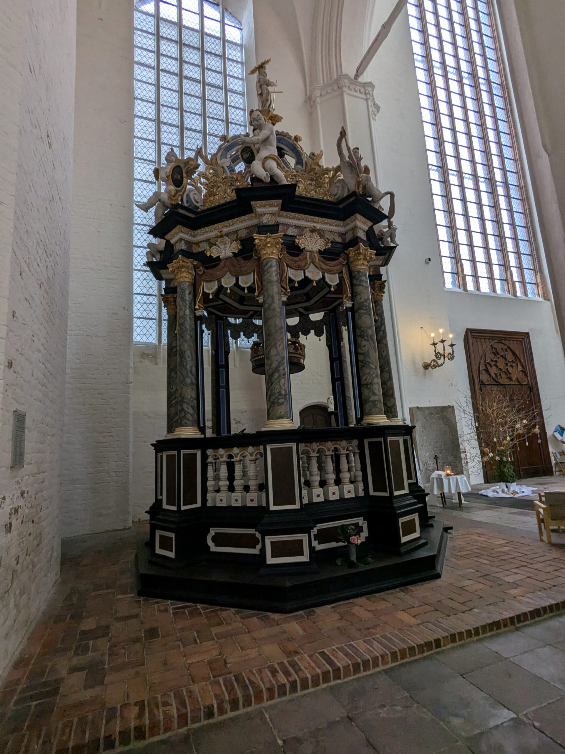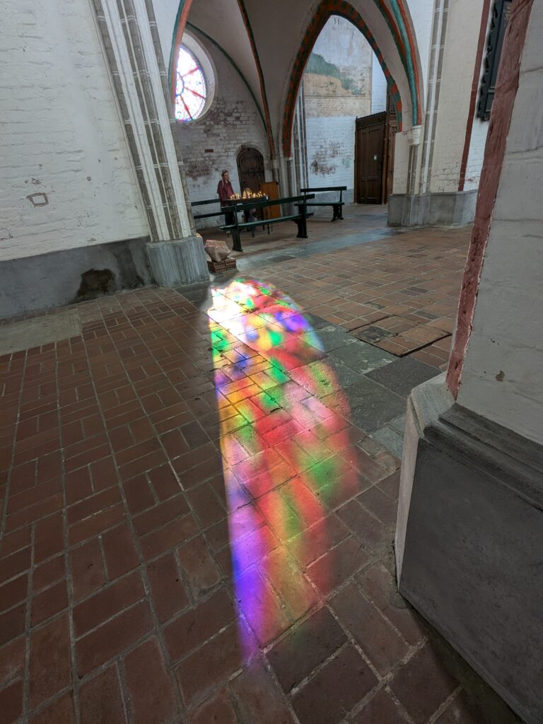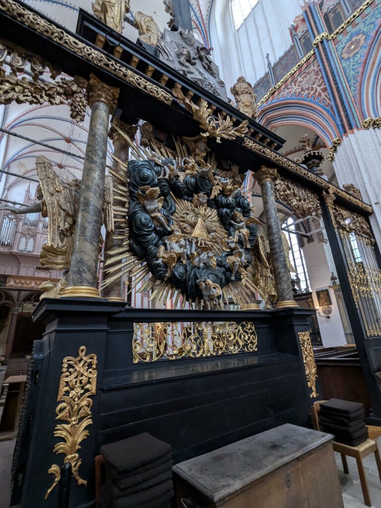 Danach gehen wir zur Nikolaikirche, zum Rathaus, zu Katharinenkirche (heute Meeresmuseum), zum vietnamesischen Imbiss (Absolutes Highlight des Tages, soo lecker), weiter zur Marienkirche. Inzwischen nieselt es und ist windig, trotzdem weiter zur Heiligen Geist Kirche (total niedlich gegen die anderen Riesenkirchen und zu guter Letzt zur Jakobikirche, die heute wegen eines Konzertes geschlossen ist. Das Wetter ist auch nicht mehr so toll, Pacer sagt 9000 Schritte, also zurück zum Auto und dann zum gemütlichen Teil des Tages!