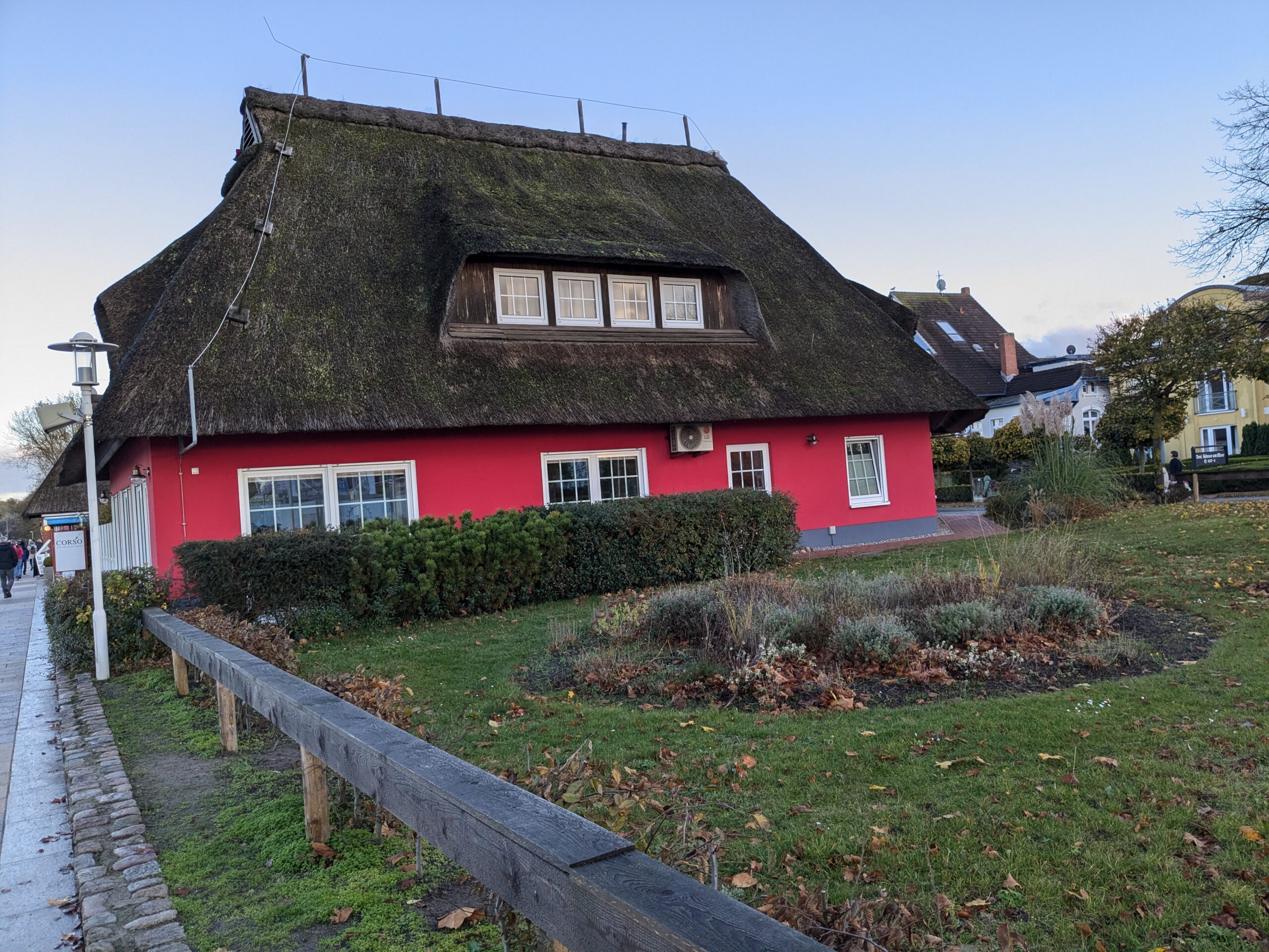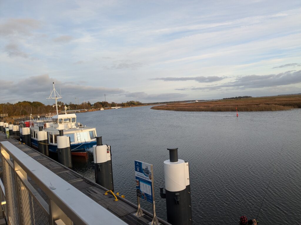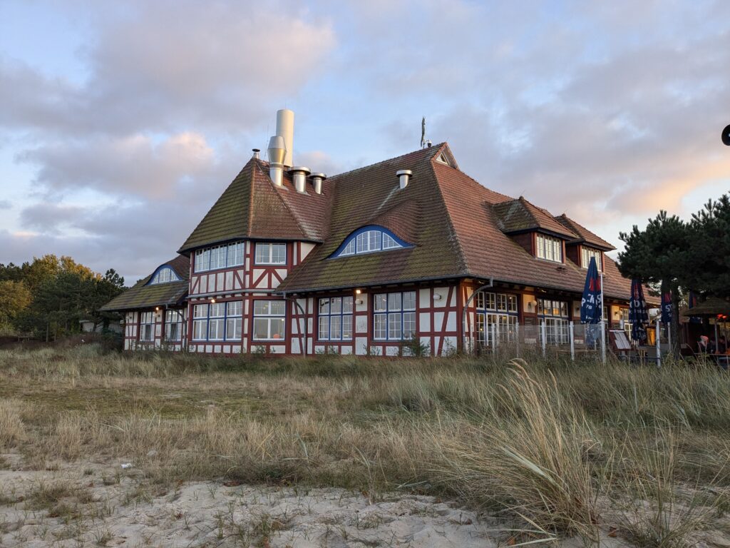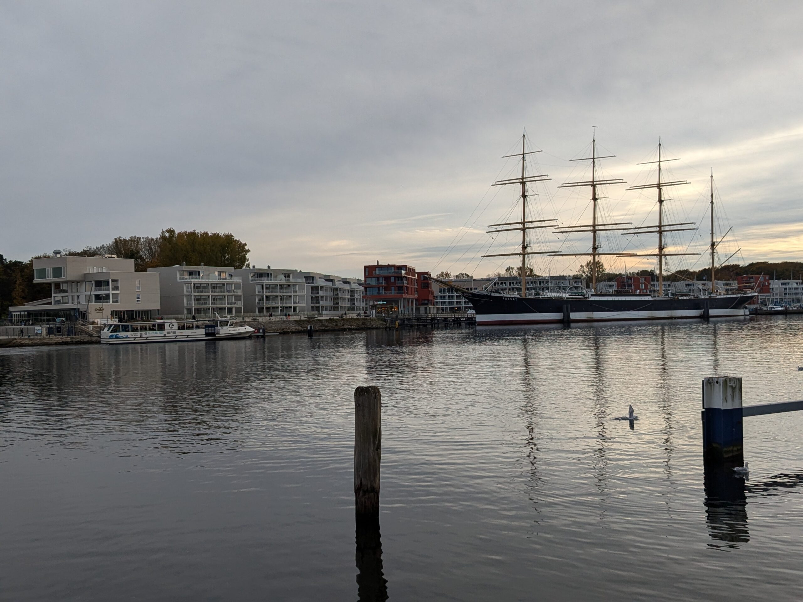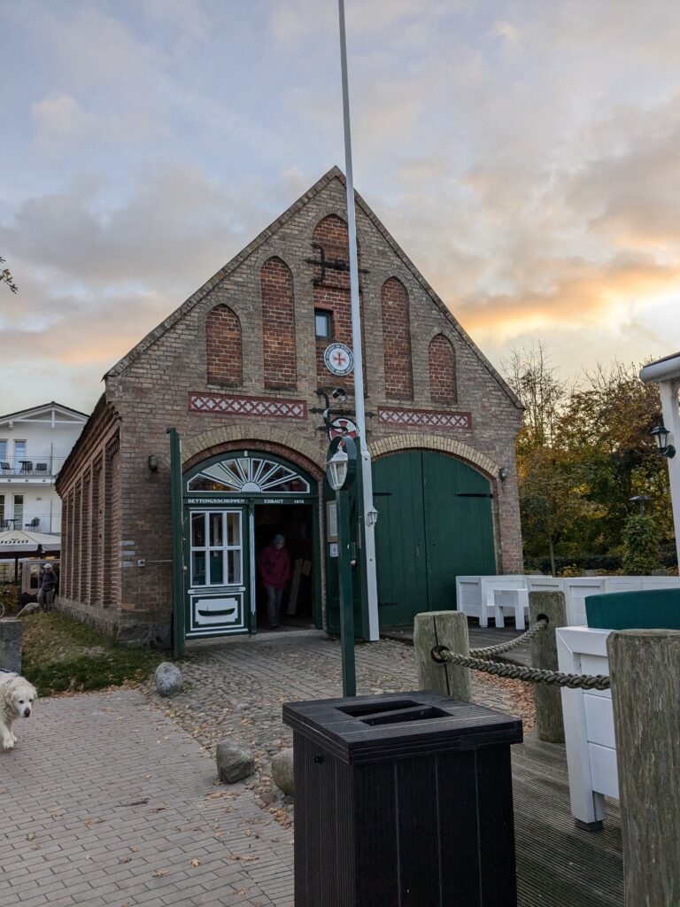Da noch viel vom Tag über ist, beschliessen wir noch eine kleine Rundfahrt um den Bodden zu machen. In Ribnitz stoppen wir für ein Fischbrötchen am Hafen. In Wustrow besichtigen wir die Seebrücke, durch den Wind sind hier die Wellen ein wenig höher, so 3 m haben sie schon. In Ahrenshoop ist es uns zu voll, an einem Freitag im November! In Prerow wollen wir Kaffee und Kuchen, sollen aber ein Tagesticket für über 7 € lösen, weniger ging nicht. Also weiter. In Zingst klappt es mit dem Parken, nur ist uns der Appetit auf Kuchen vergangen. An der Seebrücke gibt es einen heißen Sanddorn-Punsch ohne Umdrehung. Gegen 17:30 sind wir wieder im Womo.