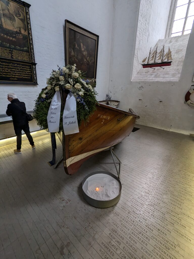 Das Beiboot der gesunkenen Parmir als Gedenkstätte der Toten. Alle Namen sind im Boden zu lesen.