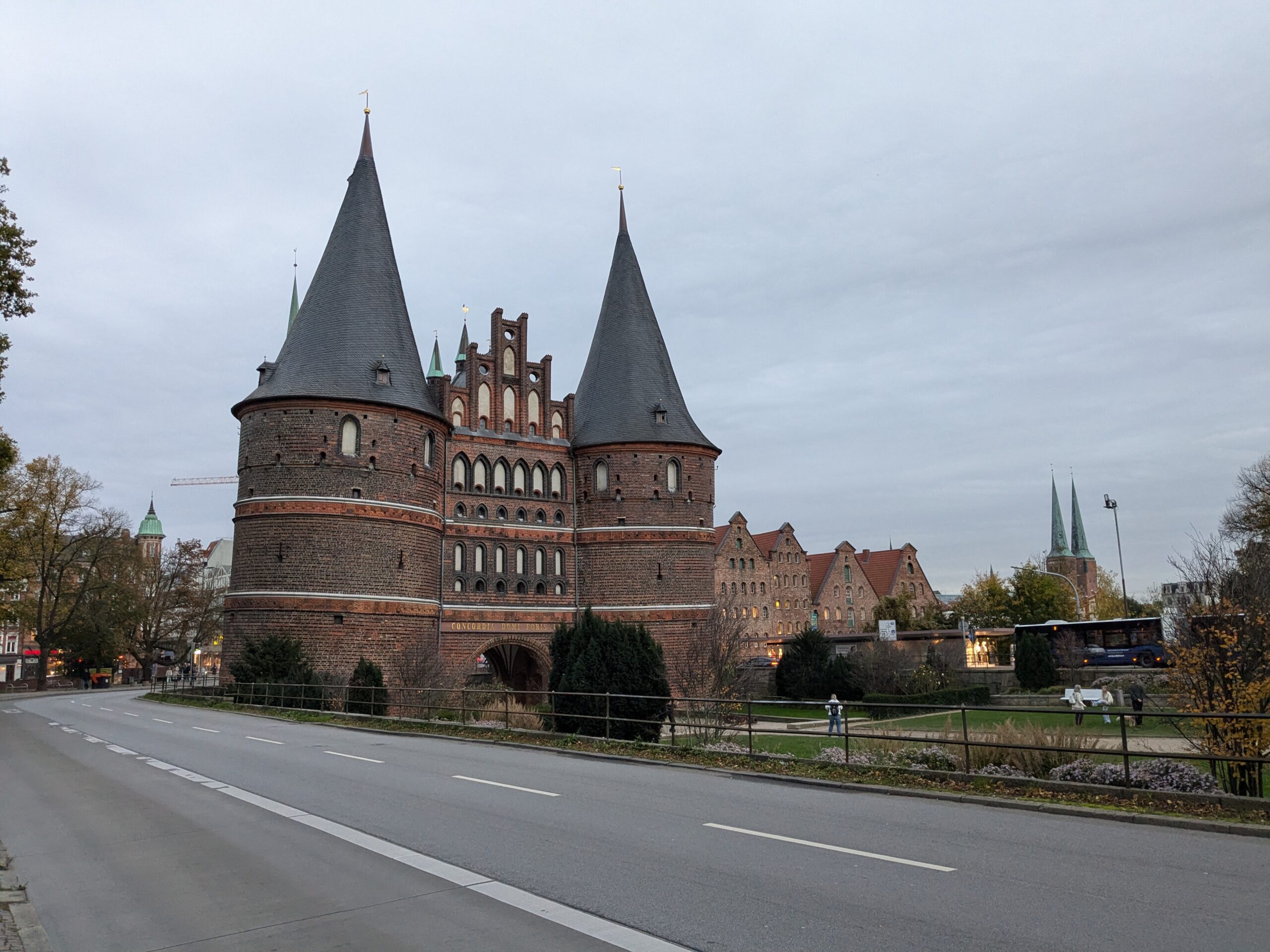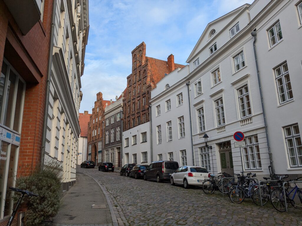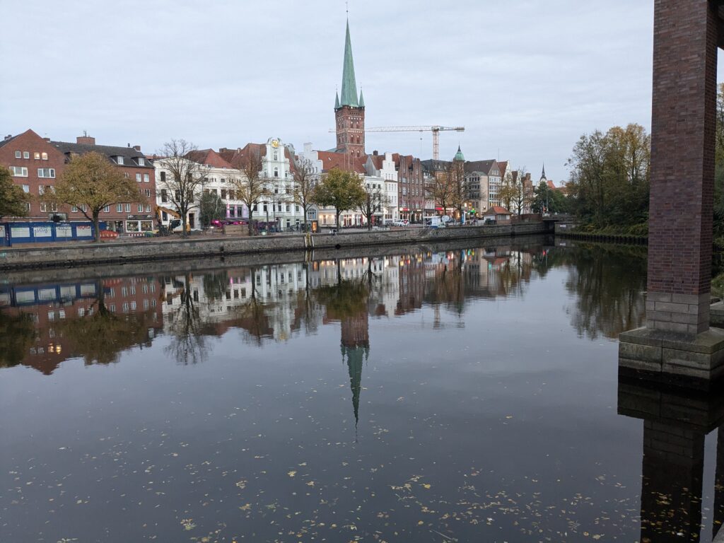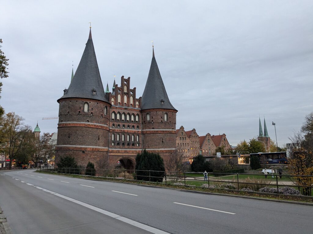 Heute ist zunächst Ausschlafen dran, nach dem späten Frühstück gegen 12:00 Uhr wollen wir nach Lübeck starten. Den Fahradträger lassen wir hier, jetzt hat das Wobi halt 2. Dann noch eine Verzögerung, beide Parkscheinautomaten sind defekt aber der Servicetechniker meint: „Dann zahlen Sie, wenn sie wieder da sind“. Dieses Mal fahre ich, Ralf hat seit dem letzten mal Lübeck ein gestörtes Verhältnis zu der Stadt und der Ford eine Schramme mehr. Nach der kurzen Fahrt ist dann aber schnell und unproblematisch ein Parkplatz gefunden, denn 1. Es ist kein Wochenende und 2. Es ist kein Weihnachtsmarkt. Dann geht es zu Fuß kreuz und quer durch die Altstadt. Abgesehen von gefühlten 5 Regentropfen ist das Wetter stabil und wir arbeiten 3 Labcaches, eine mäßige Pizza to Go, und lecker Kaffee und Kuchen ab. Knapp 15000 Schritte und 5 Kirchen später sind wir fertig und der jammernde Ralf kann sich erschöpft auf den Beifahrersitz sinken lassen. Zum Abendessen haben wir uns noch schnell eine Thai-Suppe geholt, die wir uns auf dem Stellplatz schmecken lassen. Der Parkscheinautomat funzt auch wieder, also alles gut und einer ruhigen Nacht steht nichts mehr im Wege.
