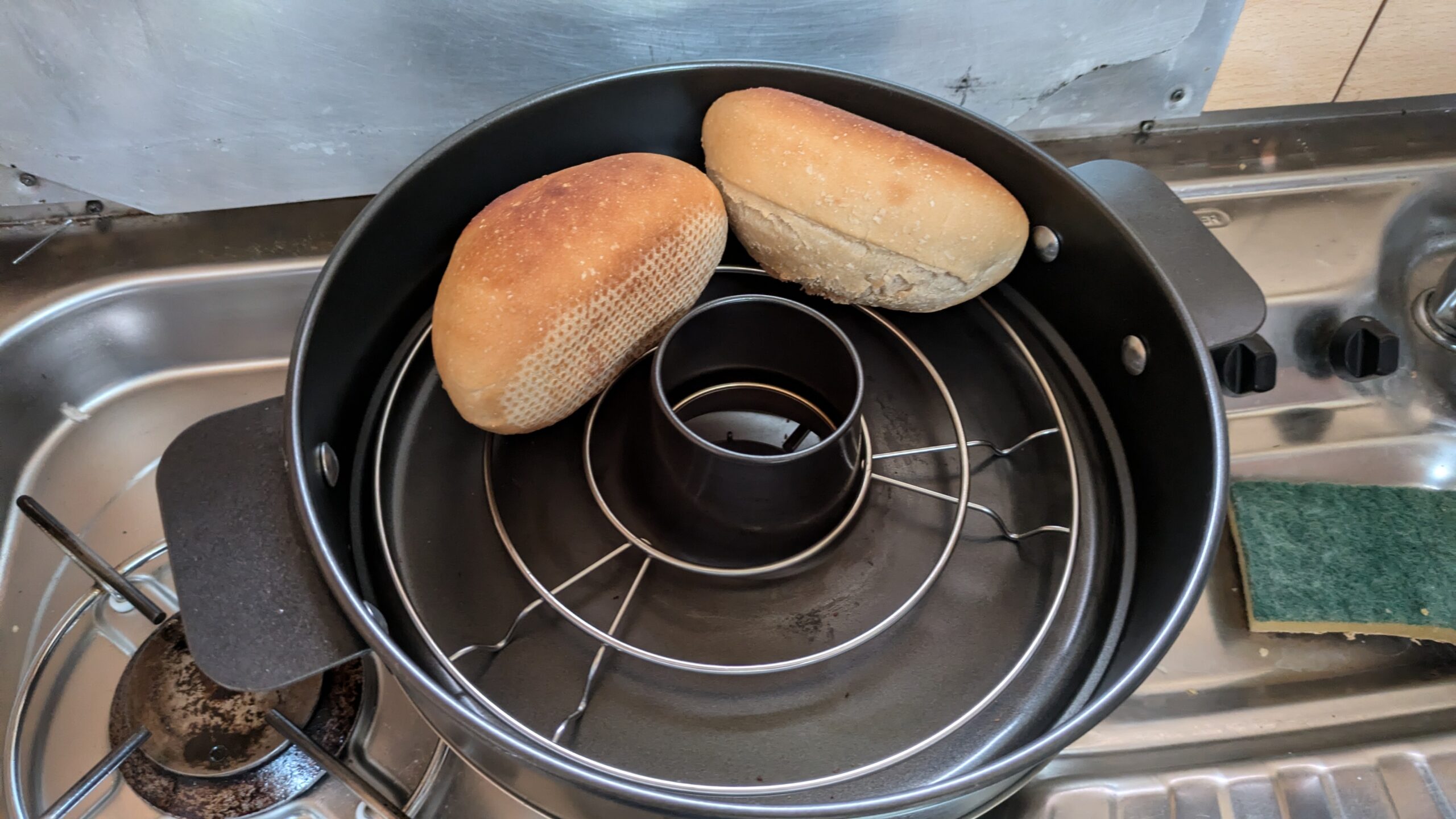 Die Duschen hier sind ein Reinfall, die Duschmarke hat 2€ gekostet, sie ist kalt und das Wasser stinkt faulig, also im Womo duschen. Bis 11:30 bleibt die Schranke einfach geöffnet, danach muss zur Ausfahrt 2 € bezahlt werden. Ist auch die Schranke für den Parkplatz am Hafen. Die Fastfood-Versorgung entlang unserer Route ist sehr Döner-lastig, durch den Zufall einer Umleitung finden wir einen Chinaimbiss. Kurzer Halt beim Lieblingsbauern, um 6 Säcke Kartoffeln zu bunkern. Gegen 17 Uhr sind wir nach 1007 km mit dem Womo wieder zuhause.