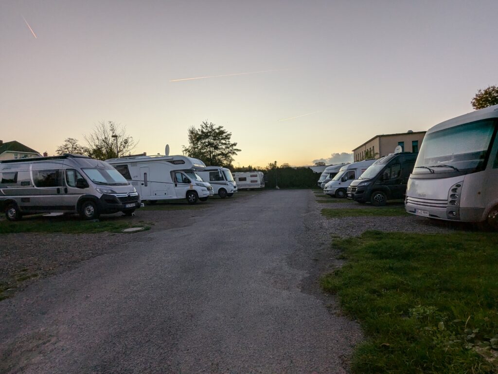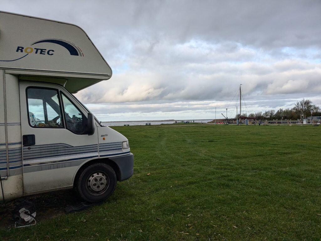 Der Tag empfängt uns wolkig aber trocken. Letzte Nacht sind noch ein paar Wohnmobile gekommen, aber zum Glück kein Kuschler für uns.