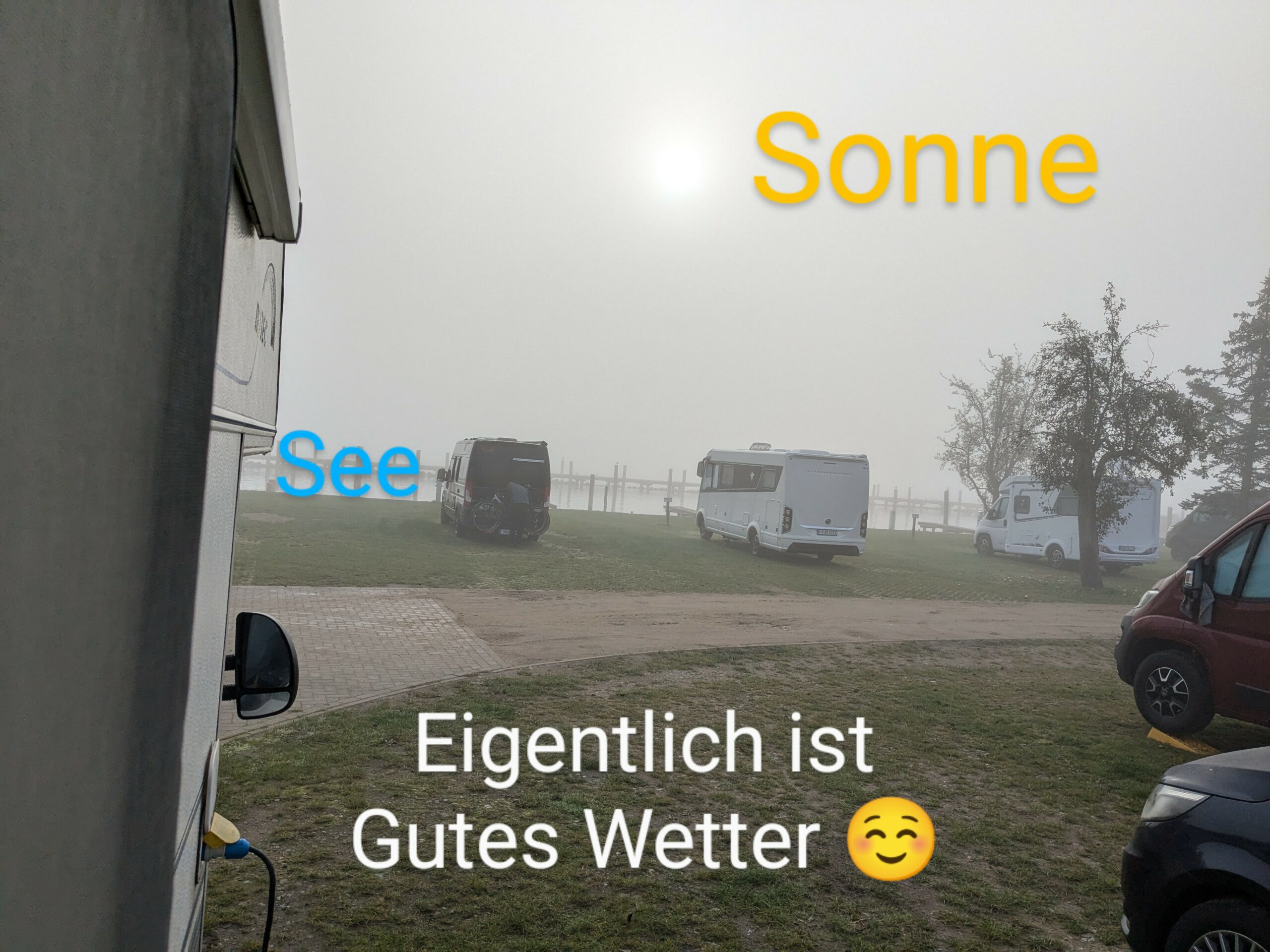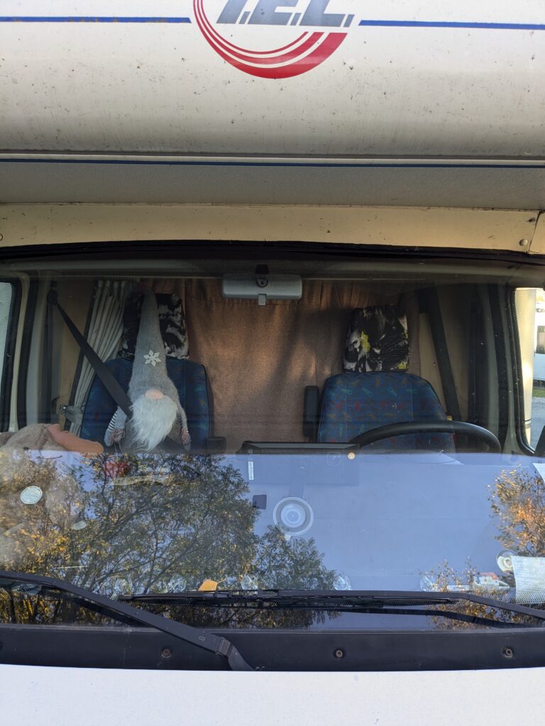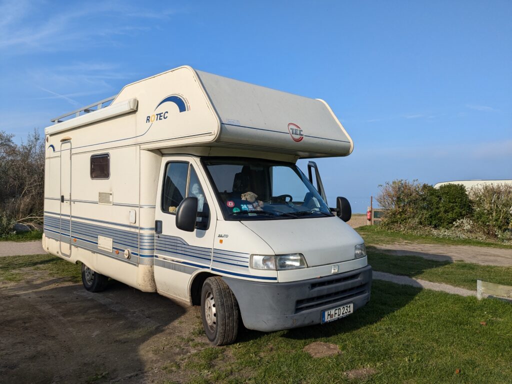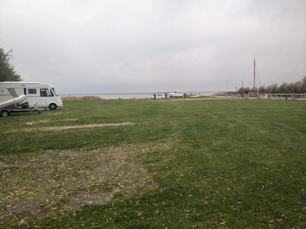 Der Kuschelcamper von gestern legt noch einen drauf, hätte, hätte Fahrradkette, ich doch bloß umgeparkt, um 9 Uhr plärrt das Makita-Baustellenradio in guter Lautstärke neben uns und das Frühstück draussen wird mit lauter Unterhaltung praktiziert. Leute gibt es …
