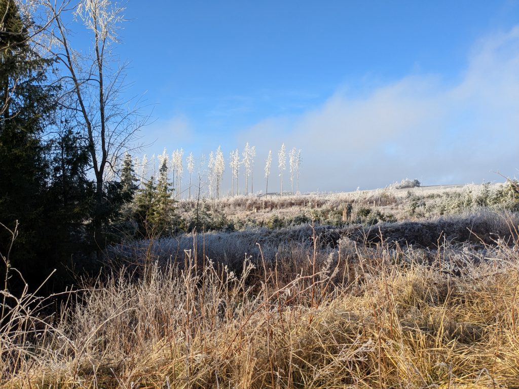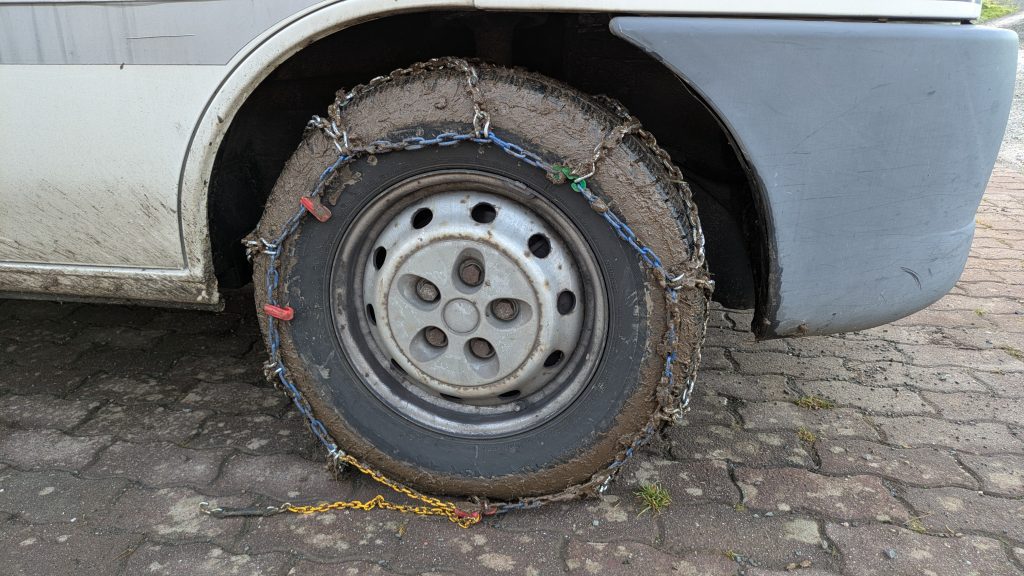 Um 9 klingelt der Wecker und ich klüngele mich zurecht. Das Ausfahren und Bezahlen mit dem QR-Code-Ticket funktioniert beim 2. Versuch auch reibungslos. Ausgesucht habe ich den Stellplatz in Appenrode. Zwischendurch Gas und Diesel fassen. Ein weiterer Zwischenstopp natürlich bei Aldi in Bad Sachsa, um für das Wochenende Vorräte zu haben. Über kleine Strassen geht es durch die Landschaft. Leider ist die Dash-Cam nicht angelaufen. Von oben durch den Nebel ins Tal war schon schön. In Appenrode angekommen begutachte ich erst mal den Platz, sieht eigentlich alles stabil aus. Trotzdem fahre ich mich fest auf der nassen Wiese. Matten und Schaukeln hilft nichts, ich sitze fest. Also die Ketten aufgezogen, damit ging es ganz einfach raus, obwohl die viel zu locker sitzen. Das muss ich noch mal überprüfen, ob die wirklich für meine Reifengrösse sind. Noch kurz mit dem Bürgermeister telefoniert, wegen der Schäden. Sieht er locker, kommt eine Schippe Erde drauf. Mal schauen, ob er sich noch mal meldet, so wirklich schlimm ist es nicht, finde ich.