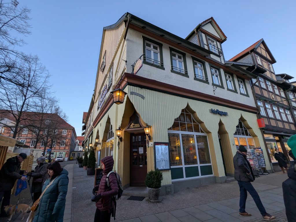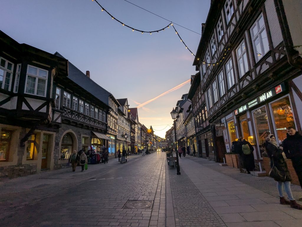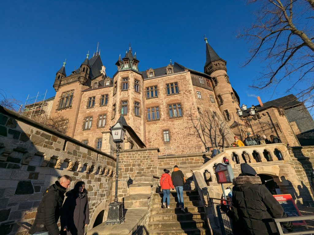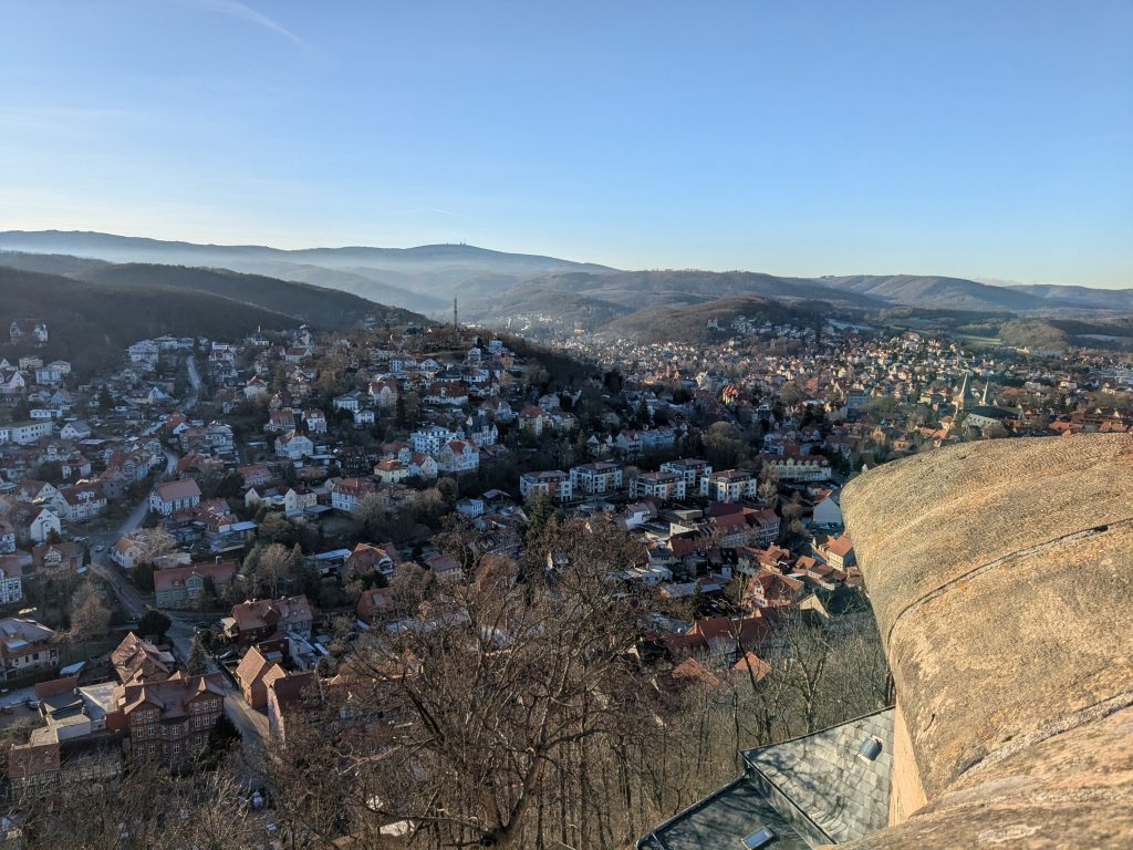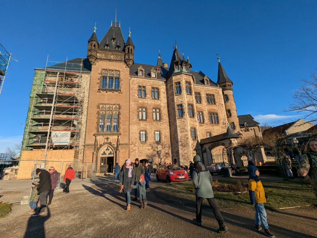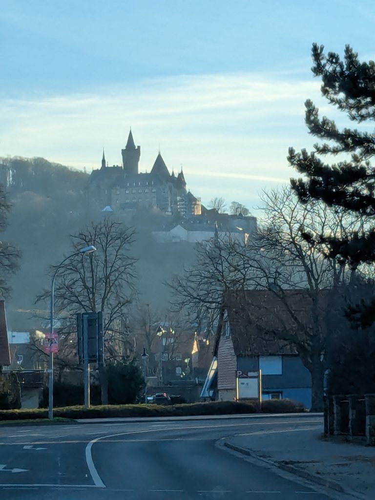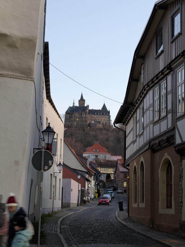 Nach dem gestrigen Tag steht heute Ausschlafen auf dem Plan. Ich liebe es, wenn ein Plan funktioniert. Aufstehen um 10:00, „Frühstück“ um 12:00. Dann starten wir mit dem Womo nach Wernigerode. Gas tanken, dann Parkplatz suchen. Es gibt extra Wohnmobil-Parkplätze! Natürlich zum Teil mit Pkw’s zugeparkt. Einer ist noch frei, abgesehen von dem Mann, der darin „parkt“. Da gibt es erstmal Diskussionsbedarf. Mutti, die da parken soll, sitzt nämlich in einem fetten Mercedes Kleinwagen ohne Bett und Klo! Also mache ich ihm klar, das weder er noch sein holdes Weib hier was verloren haben und gleich darauf parkt Ralf ein. Ist zwar eng, aber es geht. Parkgebühr 20€! Wir stapfen los zur Burg, natürlich wieder heftig bergauf. Kurz vor dem Ziel steht auf einer Tafel „Montags geschlossen“ Ralf freut sich schon, aber ein paar Touris versichern mir, dass das Schloss offen ist. Also weiter steil bergauf. Dann noch etliche Treppen und Bingo. Wir berappen 18 € und starten die Besichtigung. Im Inneren ist fotografieren verboten. Macht auch keiner 🙂 , ich auch natürlich auch nicht! Nach ausführlicher Betrachtung geht es weiter in die Altstadt. Hier gibt es eine Thüringerbratwurst und viele schöne Häuser. Dann ist es Zeit für den Rückweg. Wir sind auch gut durchgefroren. In Ilsenburg besuchen wir noch Edeka und nehmen auf dem Stellplatz Wasser. So gerüstet, kann Silvester und Neujahr kommen.