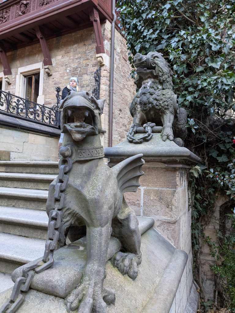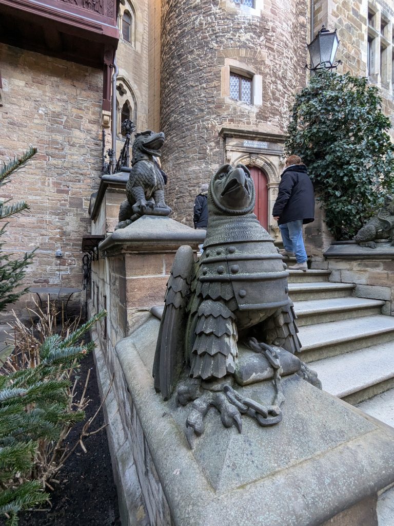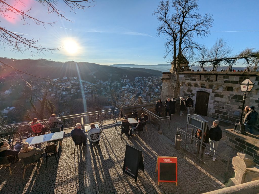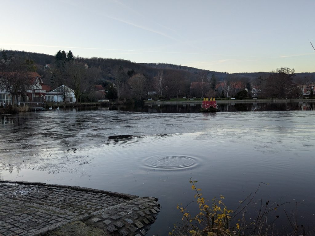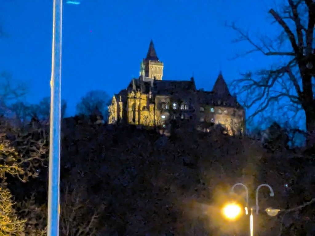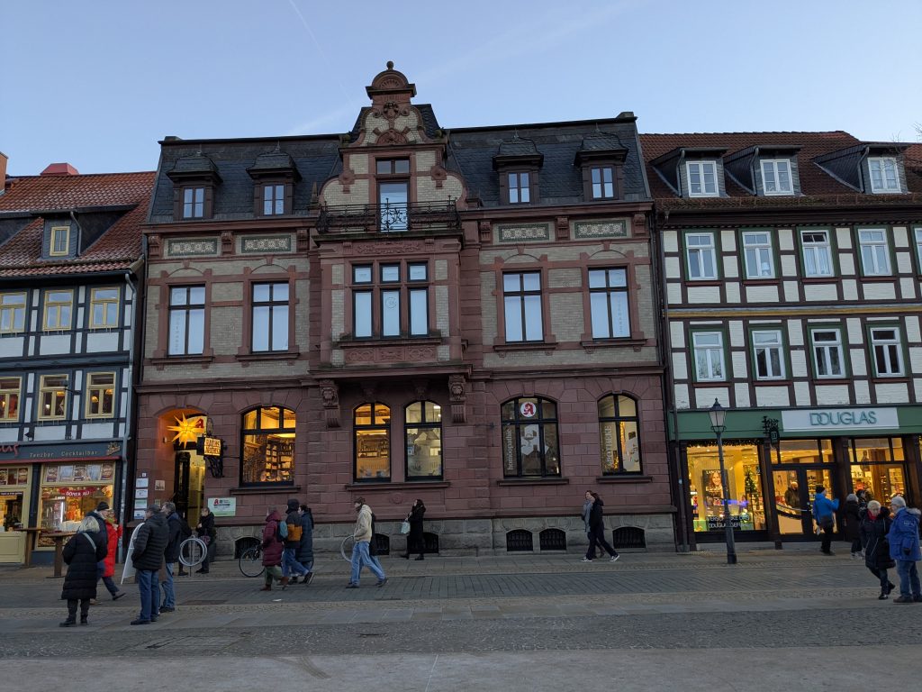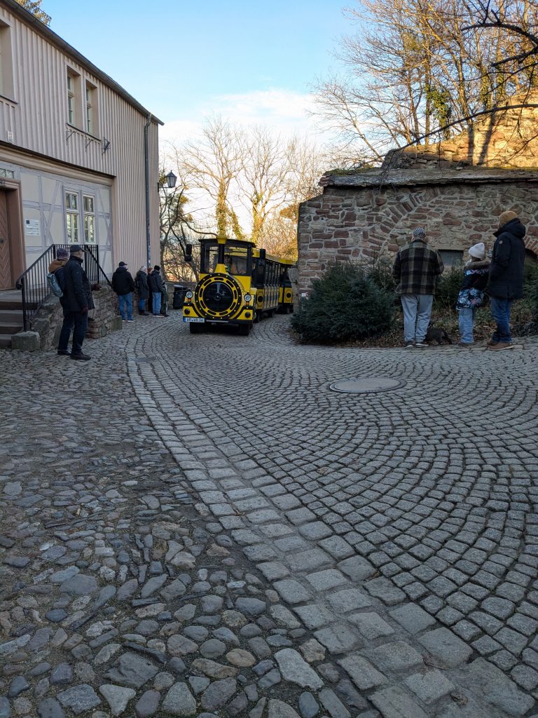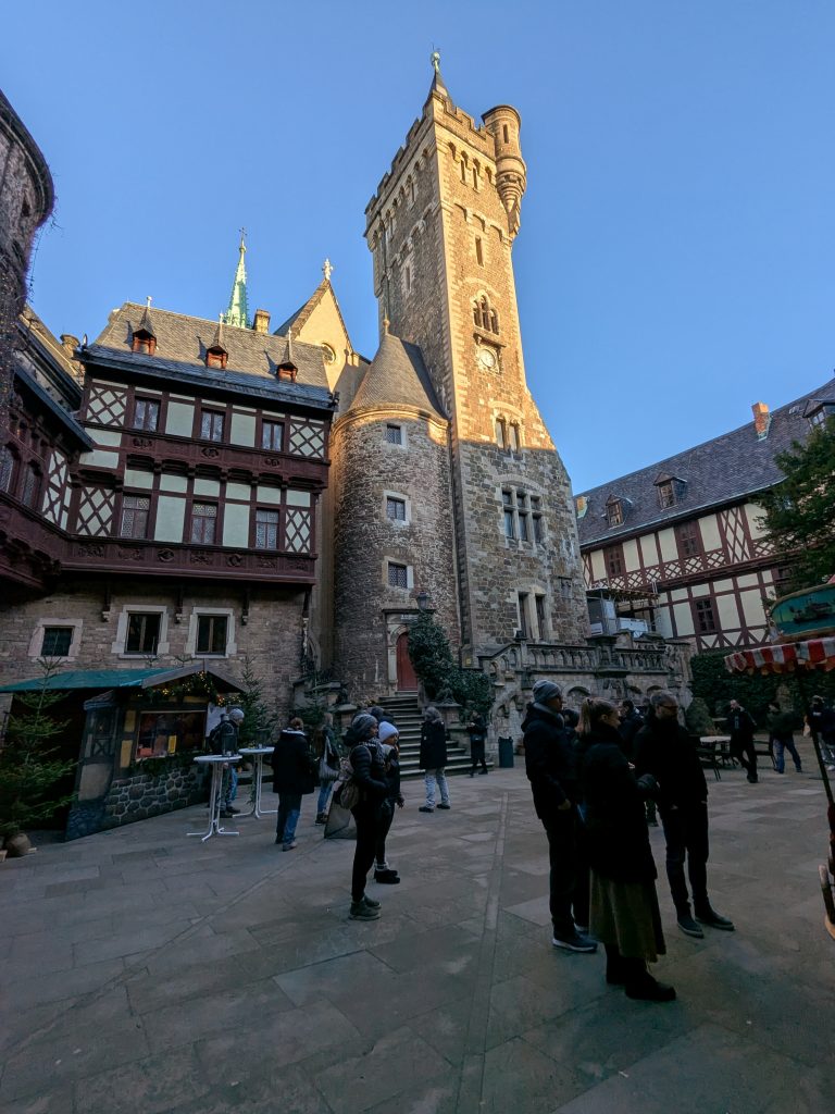 Nach dem gestrigen Tag steht heute Ausschlafen auf dem Plan. Ich liebe es, wenn ein Plan funktioniert. Aufstehen um 10:00, „Frühstück“ um 12:00. Dann starten wir mit dem Womo nach Wernigerode. Gas tanken, dann Parkplatz suchen. Es gibt extra Wohnmobil-Parkplätze! Natürlich zum Teil mit Pkw’s zugeparkt. Einer ist noch frei, abgesehen von dem Mann, der darin „parkt“. Da gibt es erstmal Diskussionsbedarf. Mutti, die da parken soll, sitzt nämlich in einem fetten Mercedes Kleinwagen ohne Bett und Klo! Also mache ich ihm klar, das weder er noch sein holdes Weib hier was verloren haben und gleich darauf parkt Ralf ein. Ist zwar eng, aber es geht. Parkgebühr 20€! Wir stapfen los zur Burg, natürlich wieder heftig bergauf. Kurz vor dem Ziel steht auf einer Tafel „Montags geschlossen“ Ralf freut sich schon, aber ein paar Touris versichern mir, dass das Schloss offen ist. Also weiter steil bergauf. Dann noch etliche Treppen und Bingo. Wir berappen 18 € und starten die Besichtigung. Im Inneren ist fotografieren verboten. Macht auch keiner 🙂 , ich auch natürlich auch nicht! Nach ausführlicher Betrachtung geht es weiter in die Altstadt. Hier gibt es eine Thüringerbratwurst und viele schöne Häuser. Dann ist es Zeit für den Rückweg. Wir sind auch gut durchgefroren. In Ilsenburg besuchen wir noch Edeka und nehmen auf dem Stellplatz Wasser. So gerüstet, kann Silvester und Neujahr kommen.
