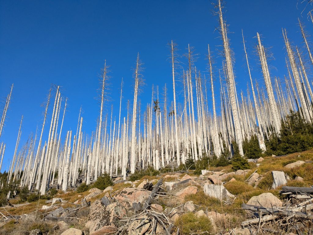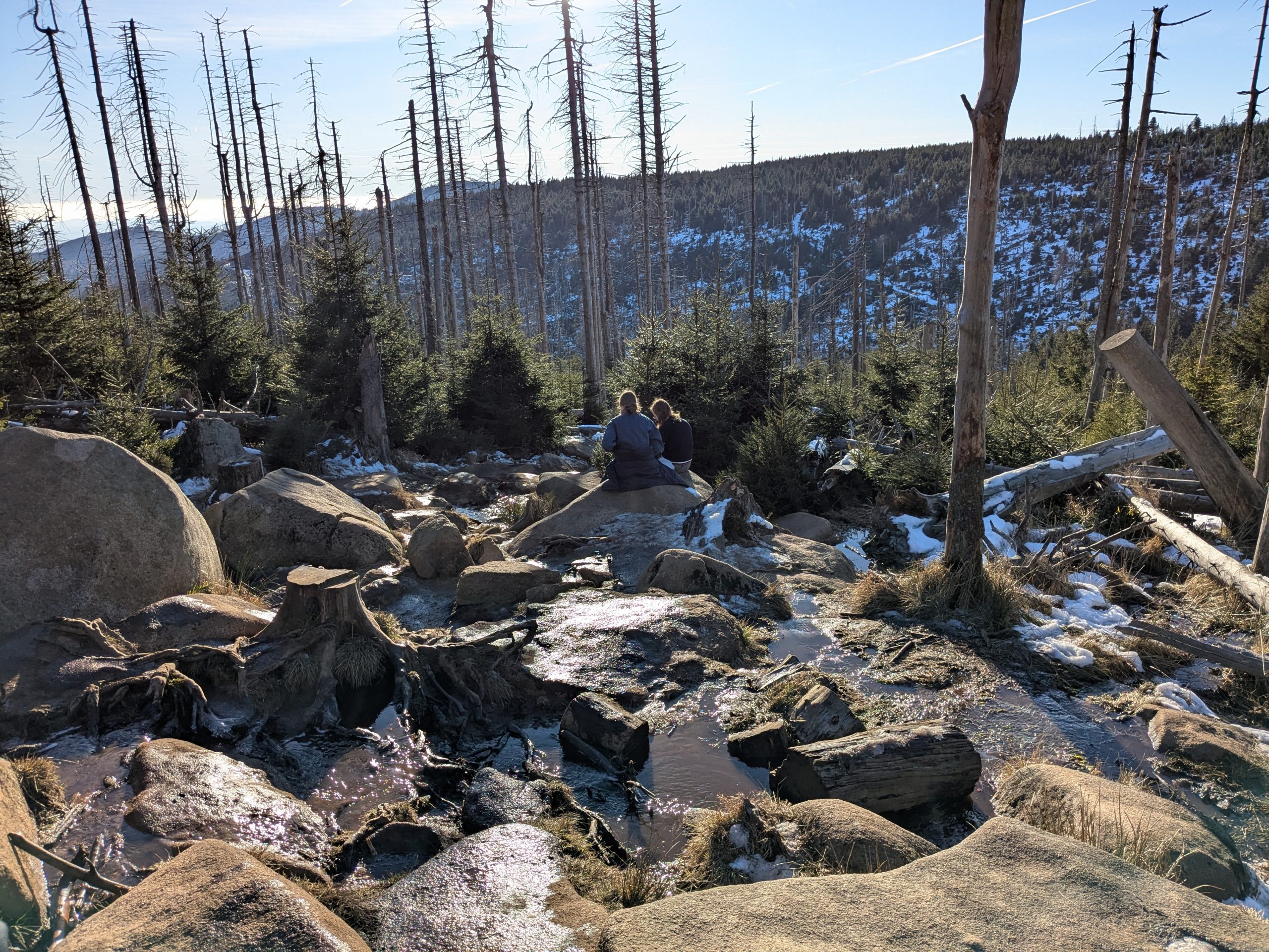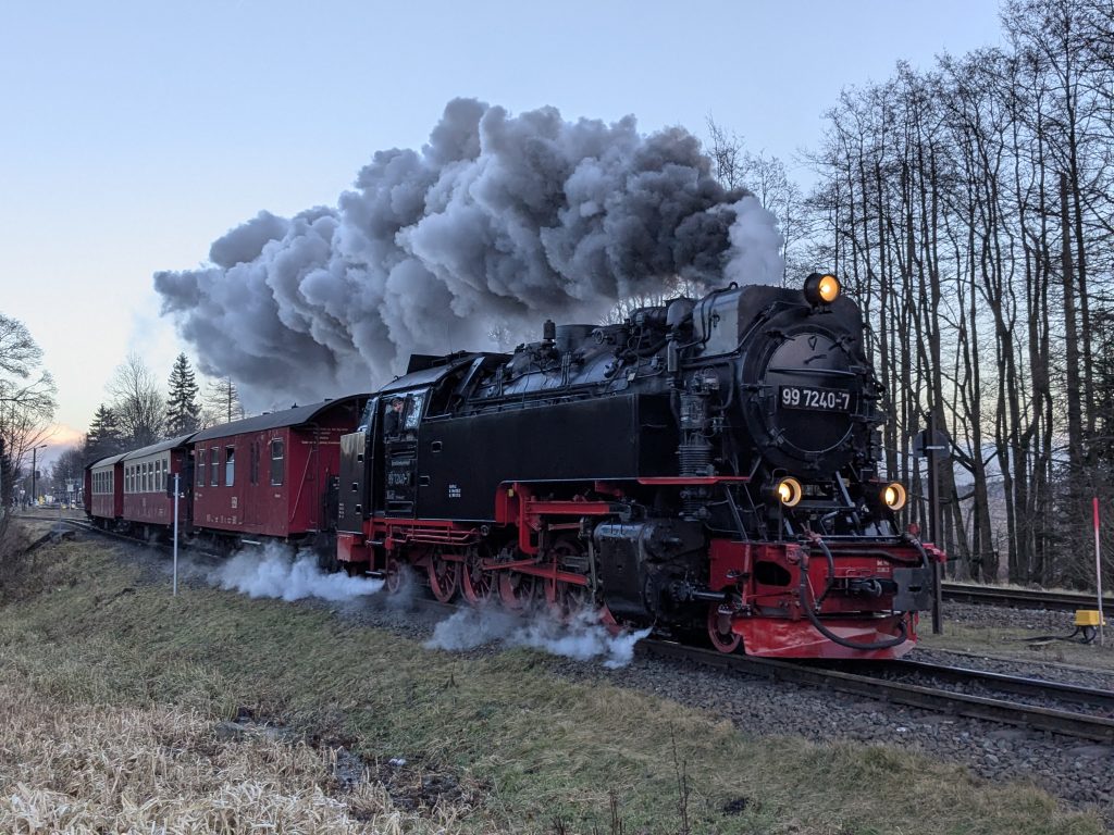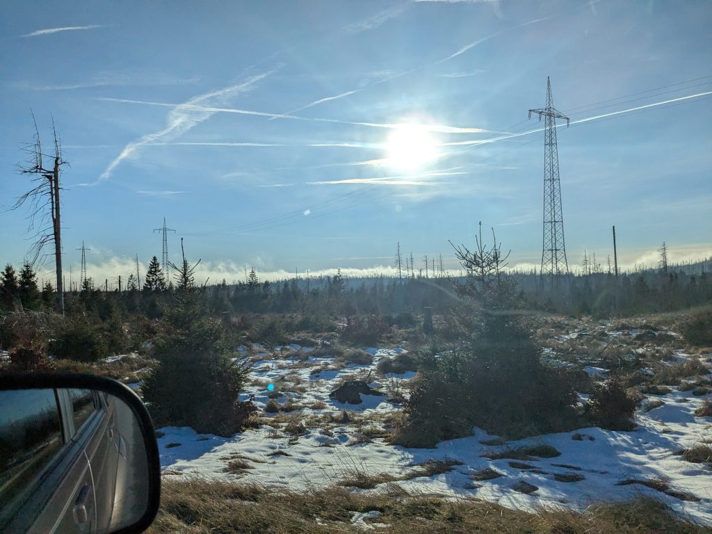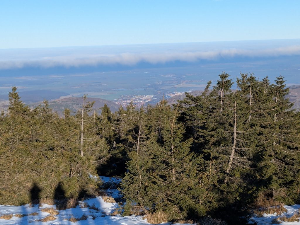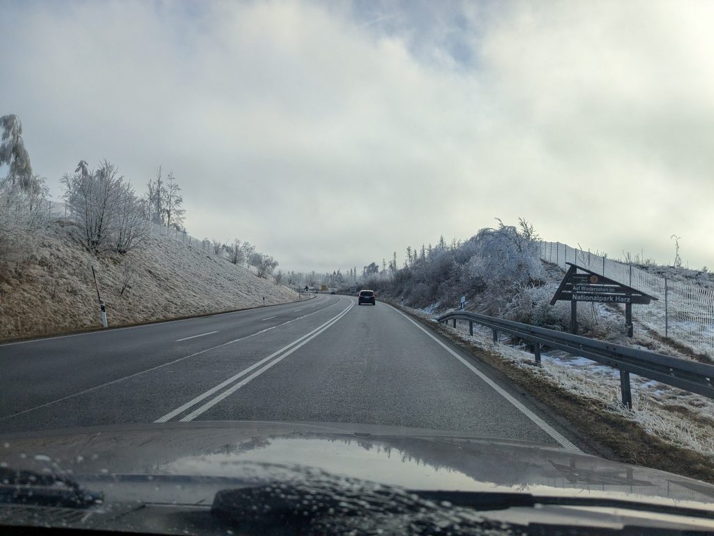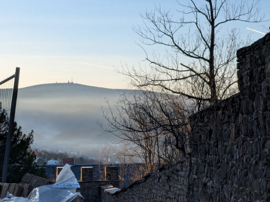 Gestern hatten wir die ganz tolle Idee, heute auf den Brocken zu gehen. Falsch, die Idee war auf den Brocken zu fahren und runter zu laufen. Also klingelt um 7:00 der Wecker. Duschen, Frühstücken, Stullen schmieren und um kurz nach 9:00 Abfahrt nach Wernigerode. Wir finden auch gleich einen Parkplatz am Bahnhof und stehen Minuten später in der rappelvollen Schalterhalle. 🙁 . Ein Blick ins Internet zeigt, bis 14:00 sind alle Züge ausgebucht. Das war gestern noch nicht, aber das Traumwetter hat wohl alle Brockentouris aus ihren Löchern gejagt. Aber wir haben uns heute den Brocken in den Kopf gesetzt. Also, neuer Plan. Wir fahren nach Schierke und laufen hoch und wieder runter. Einen Parkplatz finden wir hier gegen 10:00 problemlos an der Sommerrodelbahn, den Rucksack gesattelt und auf geht’s. Der erste km ist noch lustig. Dann wird es steil und nass. Später wird es steil und steinig, und irgendwann steil, steinig, vereist und very muddy. Ganz toll, statt der von Google veranschlagten 2 Stunden, erreichen wir nach 3 Stunden die letzten 1,4 km zum Brocken auf einer breiten geschotterten „Straße“. Hier schiebt sich die Touristenkarawane zum Gipfel. Endlich oben entlohnt der Blick allerdings für die Strapazen. Hier oben ist alles vereist. Hier braucht man Schlittschuhe und keine Wanderstiefel. Ganz vorsichtig ein paar Fotos gemacht und ab zum Rückweg. Aber, wir haben 10 km und über 16000 Schritte steil bergauf auf dem Tacho und wenn wir zurück laufen sind wir erst in der Dunkelheit zurück. Also berappen wir stolze 72,-€ für die Rückfahrt mit der Brockenbahn. Wir sind früh am Bahnsteig. Und das ist auch gut so. Wir bekommen noch einen Sitzplatz. Mit 10 Minuten Verspätung startet die Heimfahrt mit rappelvollen Waggons. 50 Minuten und 2 medizinische Notfälle später sind wir dann in Schierke am Bahnhof und dürfen miterleben, dass ein sch… geparkter Pkw den Rettungseinsatz verhindert. Super! Wir machen uns auf den Weg noch mal 1,5km zu unserem Dicken. Wenig später und mit einem leckeren Döner im Gepäck landen wir wieder auf dem Stellplatz und sinken endlich auf unser Sofa. Fazit: Überlege dir gut, was du dir in den Kopf setzt und ob deine ach so tolle Idee die Strapazen lohnt. 🙂 . Aber alles in allem war es ein toller Tag.