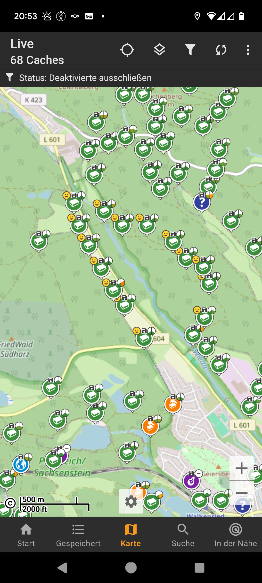 Heute gibt es nicht viel zu schreiben. Wir haben wieder lange geschlafen, gegen 13:00 sind wir dann Richtung Walkenried aufgebrochen. Bei strahlender Sonne ging es über Torfhaus durchs Winterwunderland mit blauem Himmel und reifbedeckten Bäumen. 3 km vor Walkenried stellen wir um 14:10 den Explorer ab und starten zu einer 6,5 km Cachetour. Unterwegs treffen wir Biene Maja und Willi und andere lustige Gesellen. 15 Caches und 10.000 Schritte später treffen wir pünktlich zum Dunkelwerden wieder an unserem Auto ein und starten den Heimweg, um den Silvesterabend gemütlich ausklingen zu lassen.